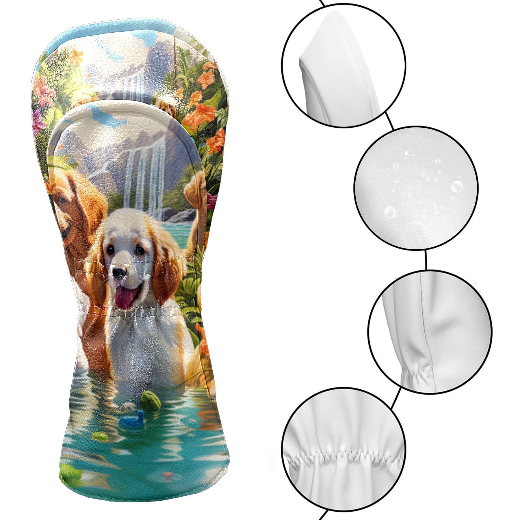 Golf Club Covers Cute Dogs Golf Club Head Covers for Driver Fairway Woods Clubs Premium Leather, Waterproof Golf Headcovers with Anti-Scratch Lining for Men Women