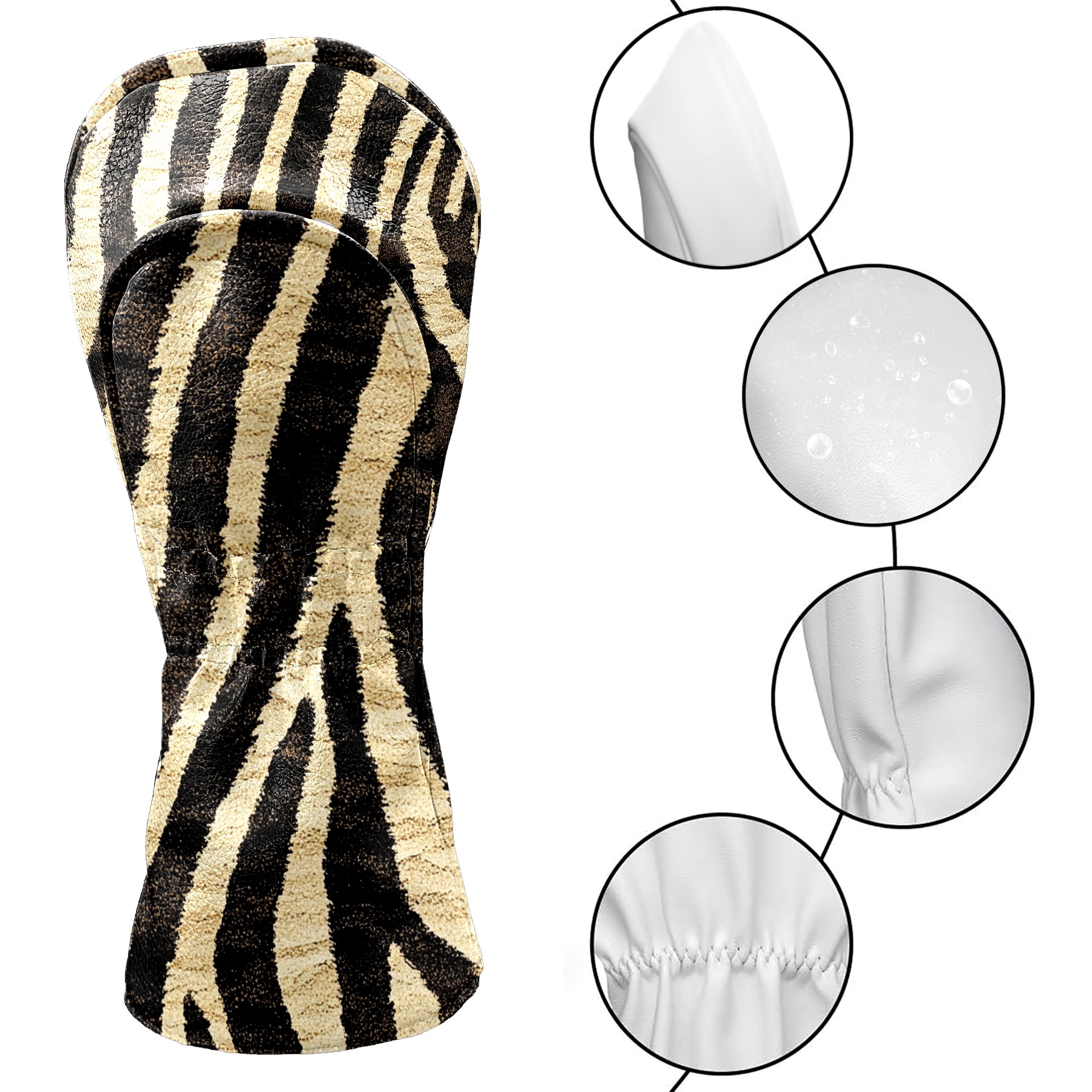 Golf Club Covers Zebra Skin Print Golf Club Head Covers for Driver Fairway Woods Clubs Premium Leather, Waterproof Golf Headcovers with Anti-Scratch Lining for Men Women