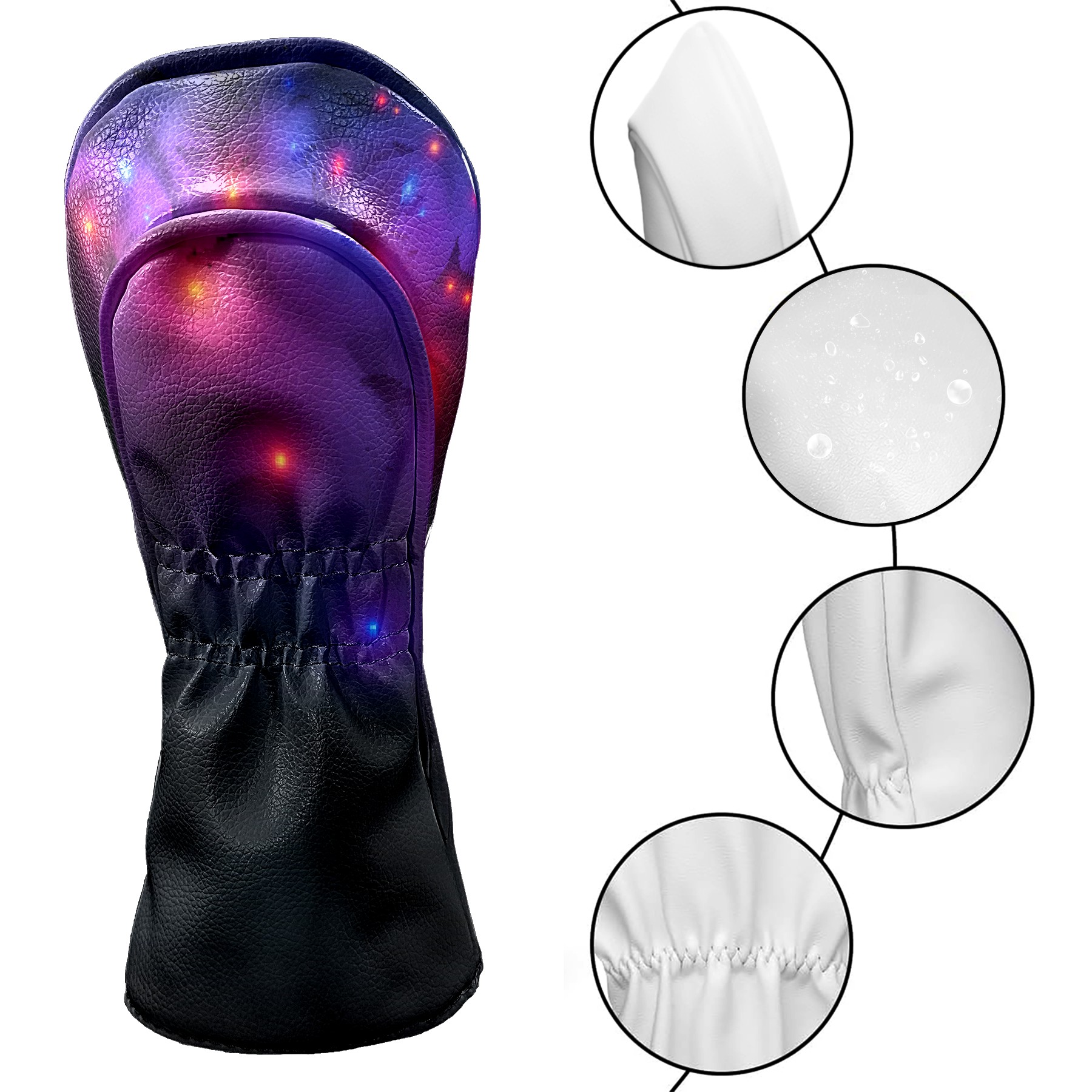 Golf Club Covers Halloween Spooky Bat Ghost Golf Club Head Covers for Driver Fairway Woods Clubs Premium Leather, Waterproof Golf Headcovers with Anti-Scratch Lining for Men Women