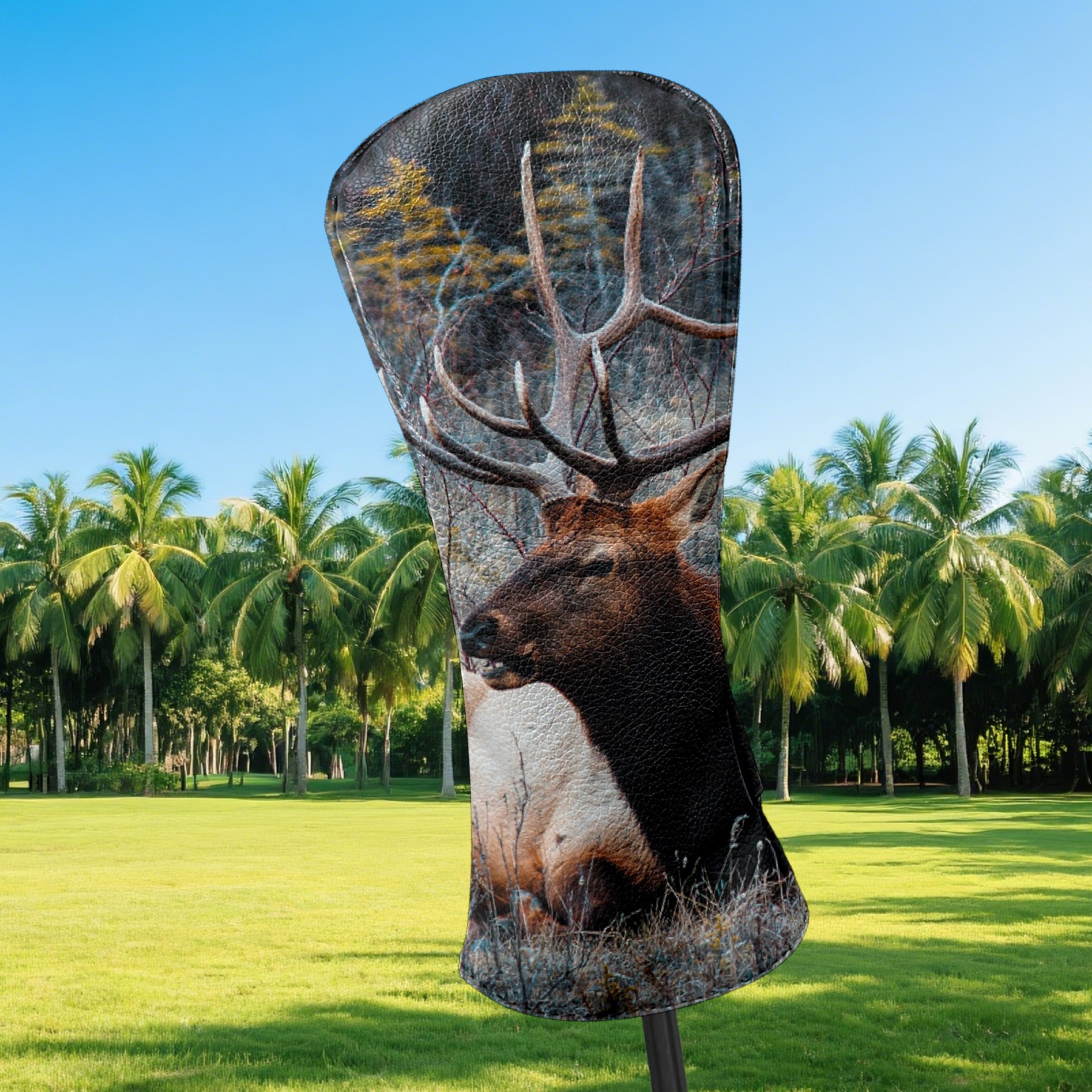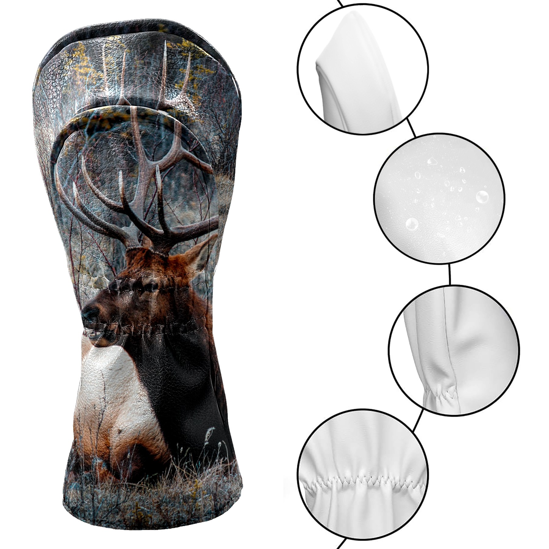 Golf Club Covers Nature Elk Deer Wildlife Golf Club Head Covers for Driver Fairway Woods Clubs Premium Leather, Waterproof Golf Headcovers with Anti-Scratch Lining for Men Women