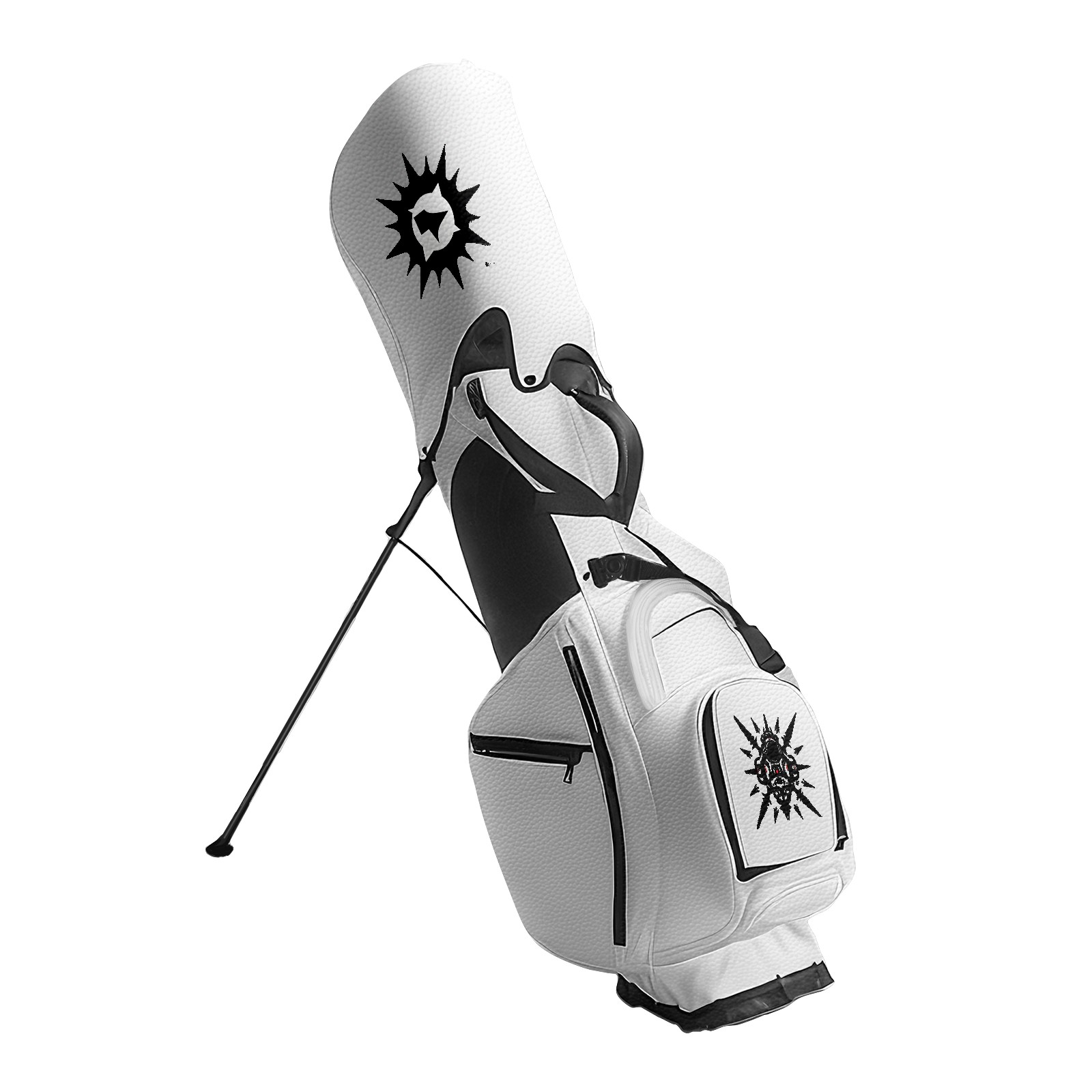 Golf Stand Bag - 14/5 Way Top Dividers, 8 Pockets, Waterproof golf bags for men,women, PU Leather, Customizable , Black/White, Includes Rain Cover & Dust Bag