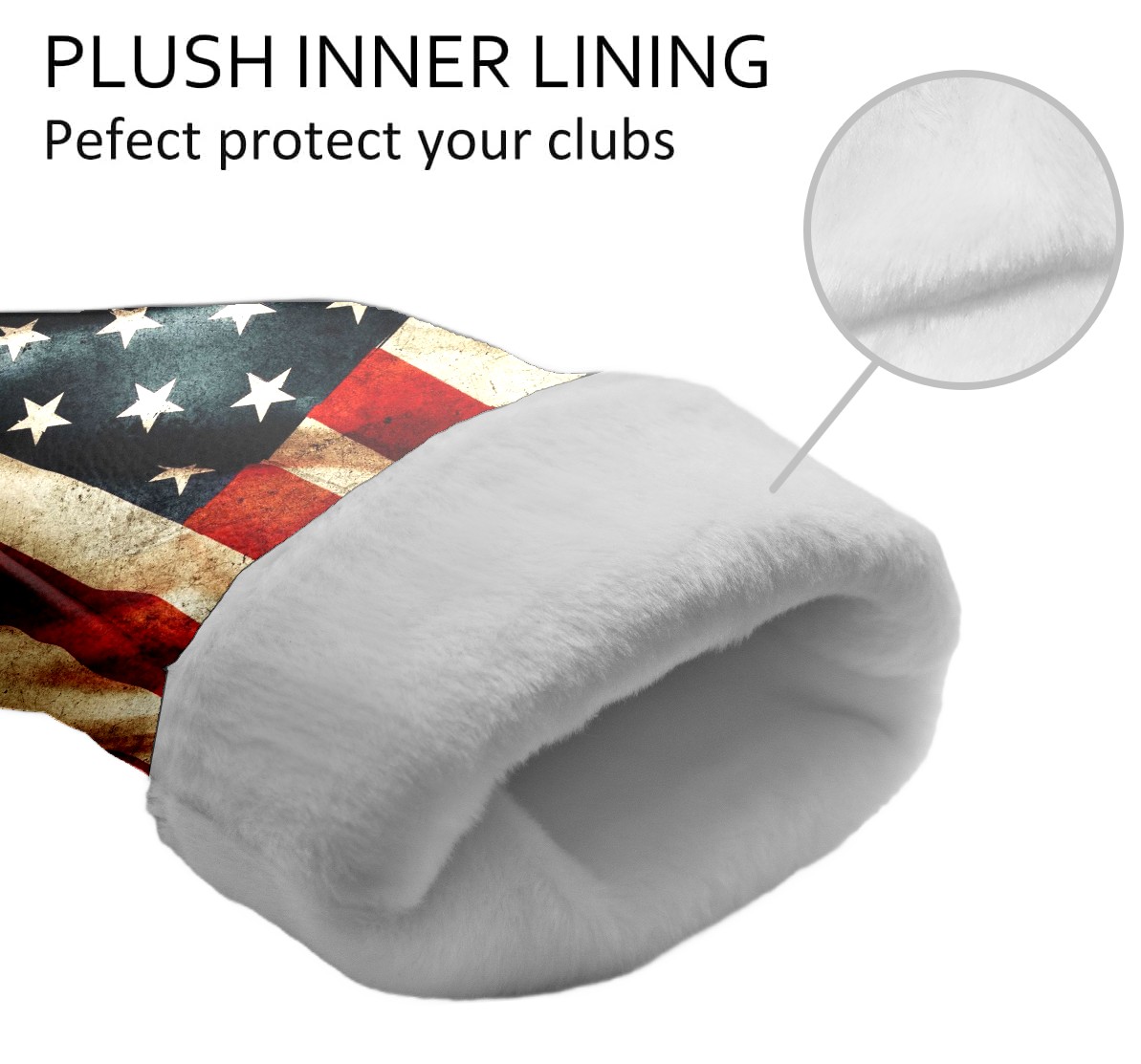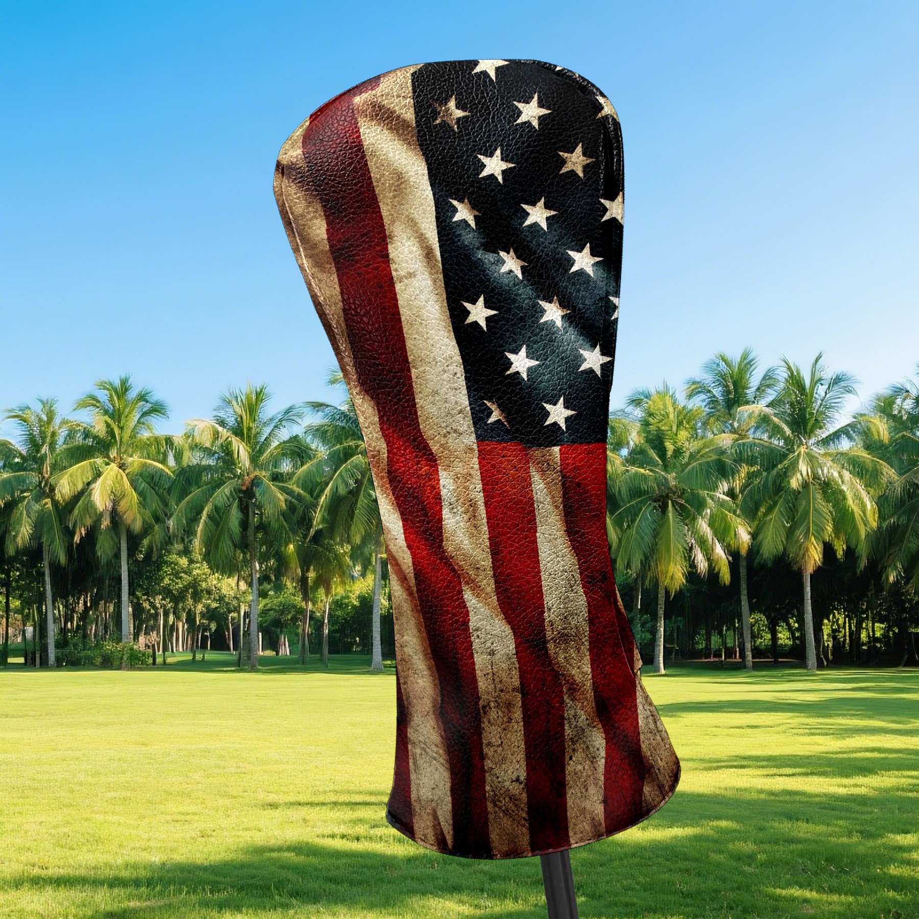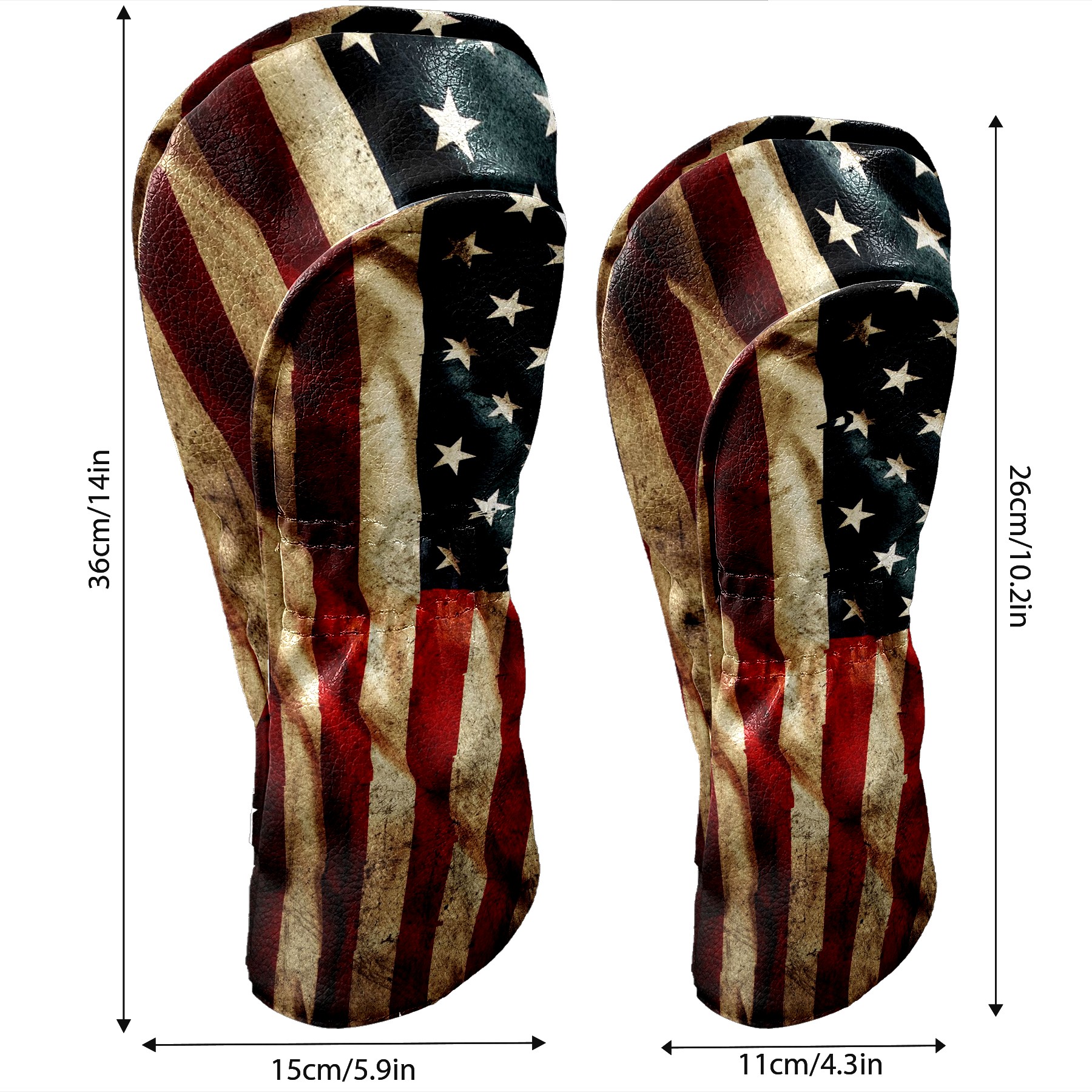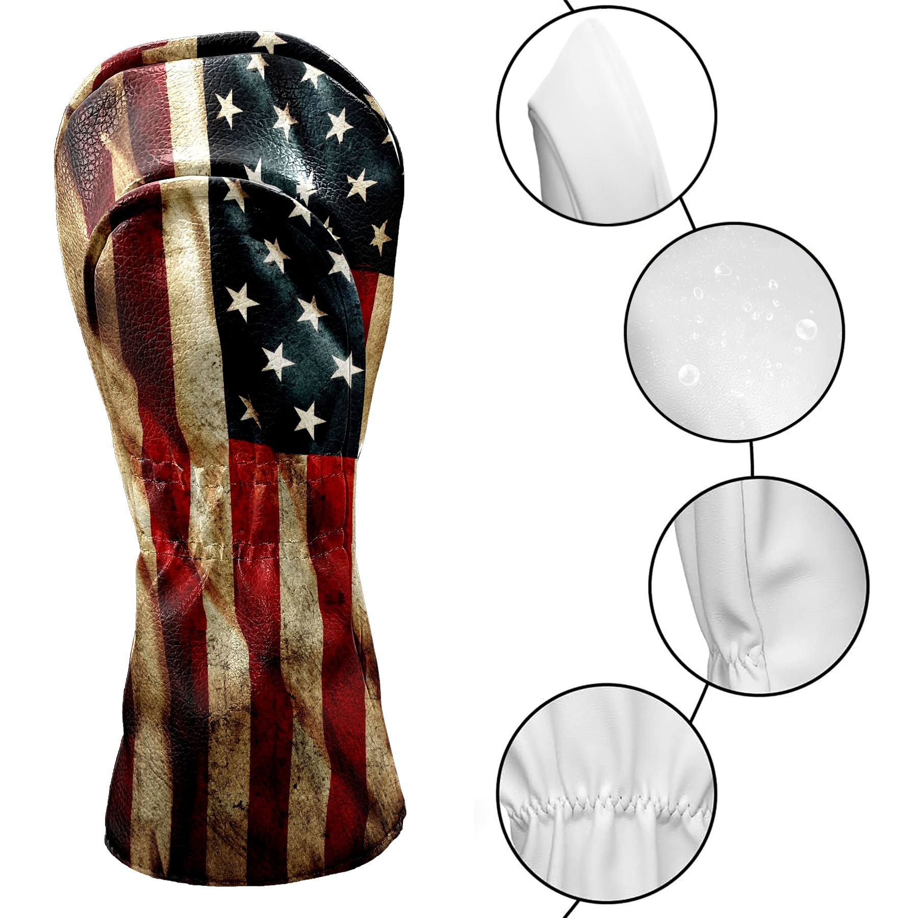 Golf Club Covers American Flag1 Driver Headcover, Leather Golf Club Head Covers for Driver Fairway Woods Waterproof Golf Headcovers with Anti-Scratch Lining for Men Women