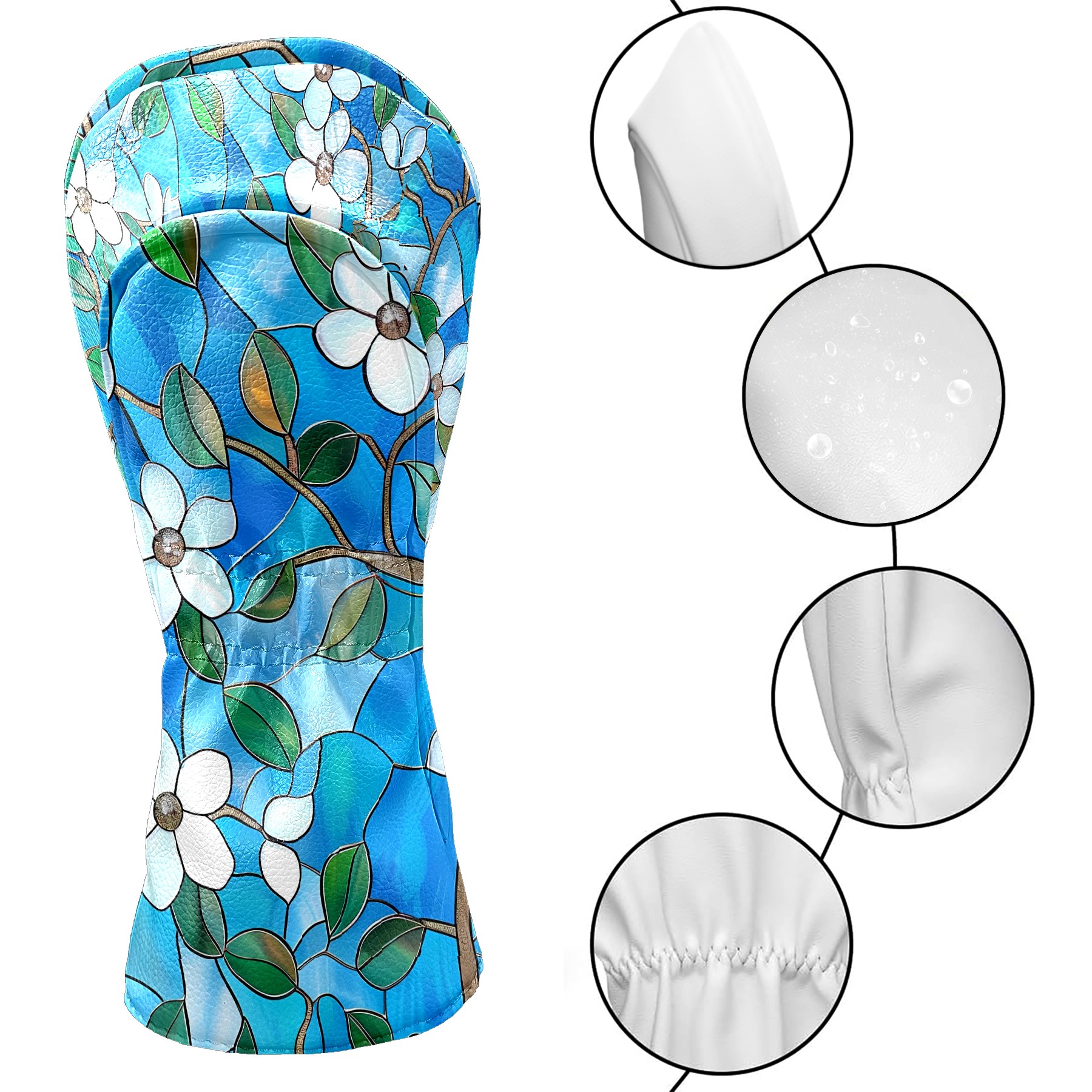 Golf Club Covers Blue Lily Driver Headcover, Leather Golf Club Head Covers for Driver Fairway Woods Waterproof Golf Headcovers with Anti-Scratch Lining for Men Women