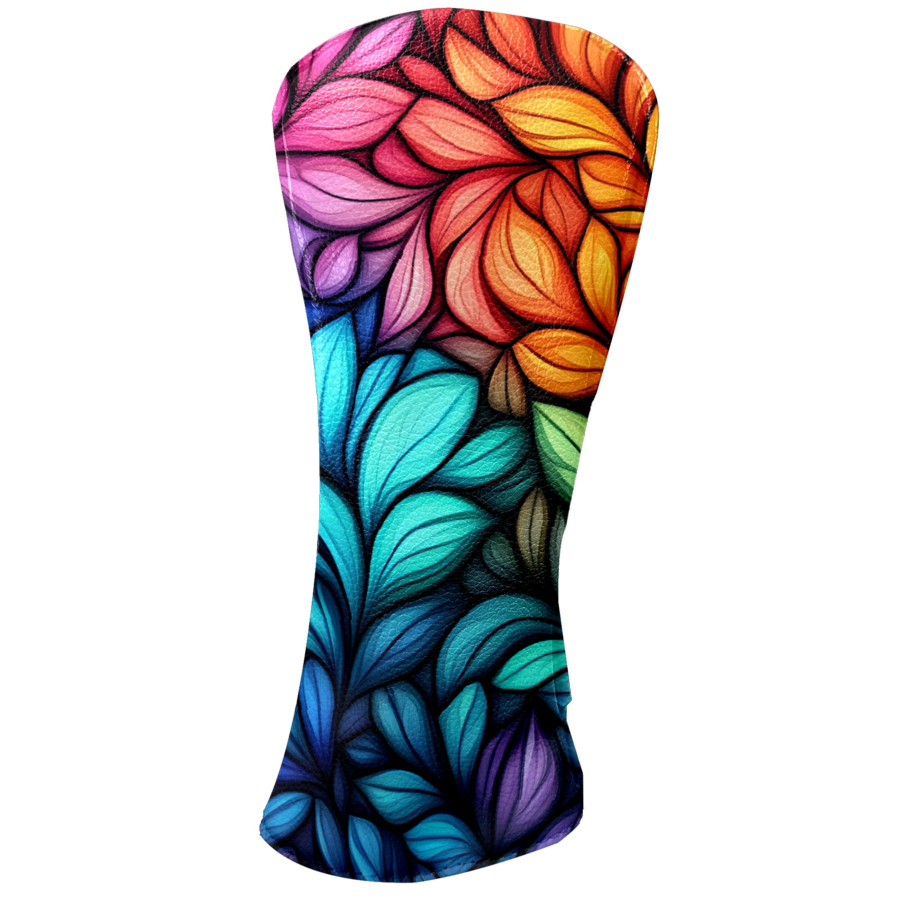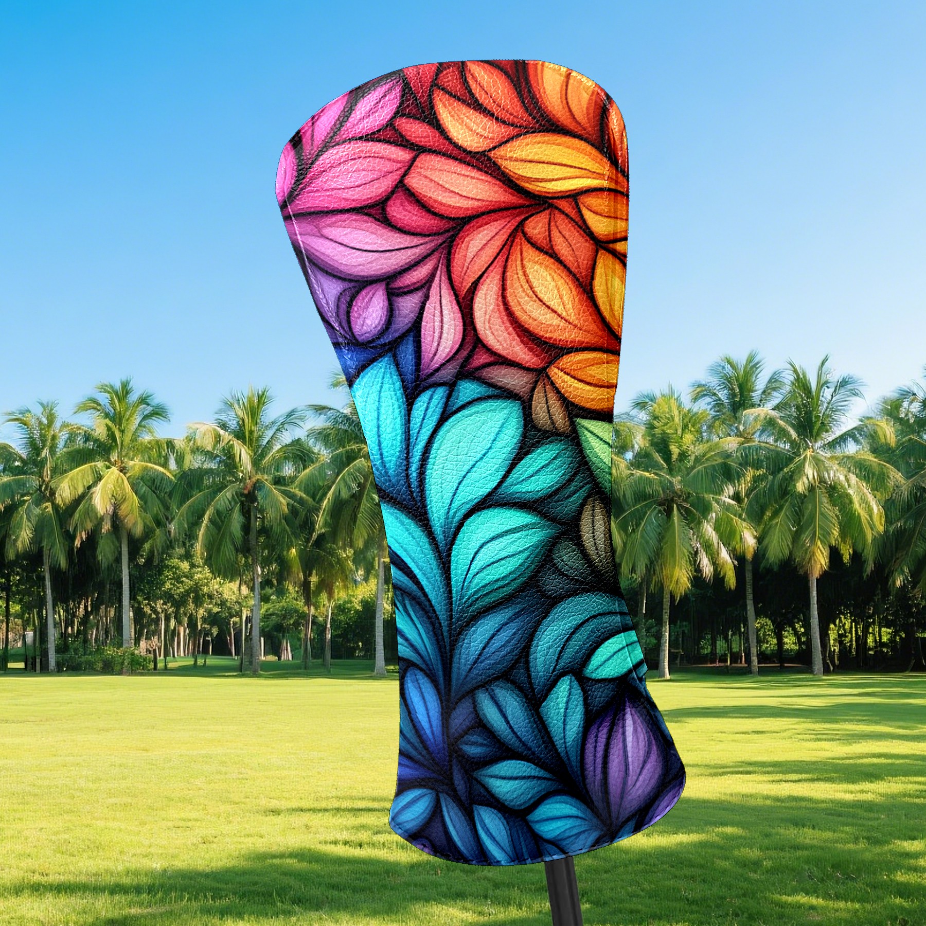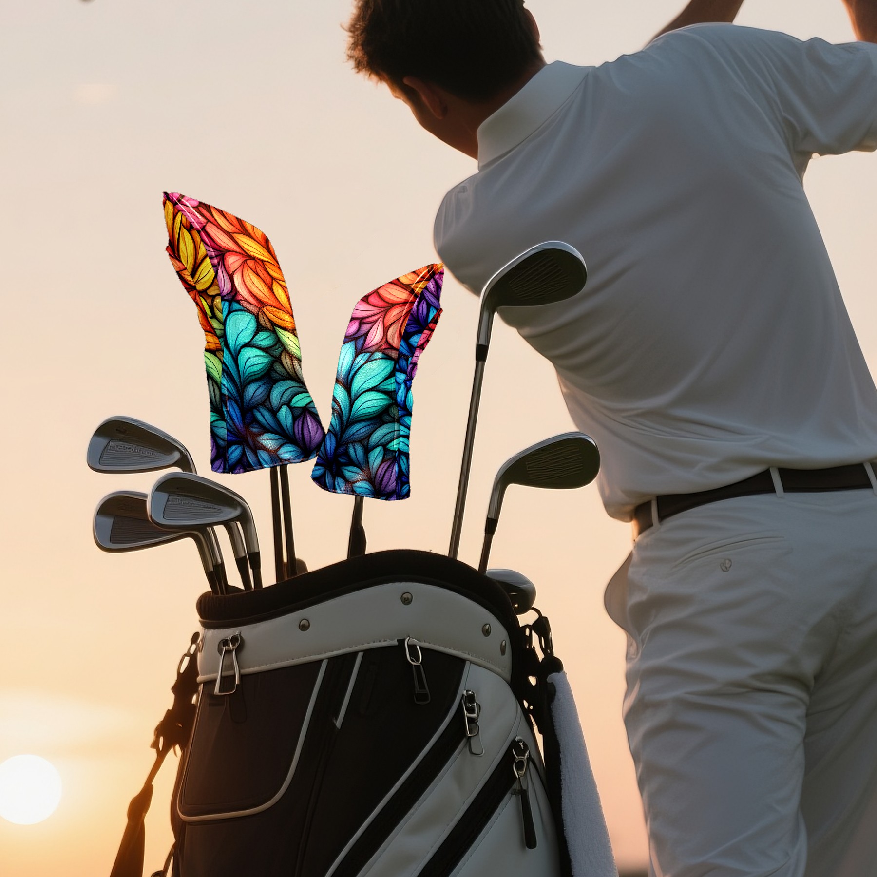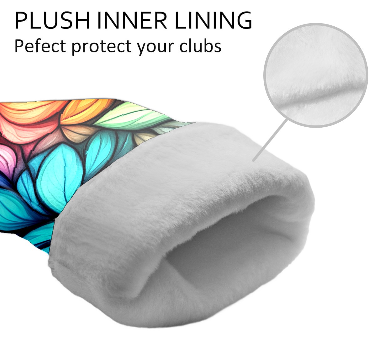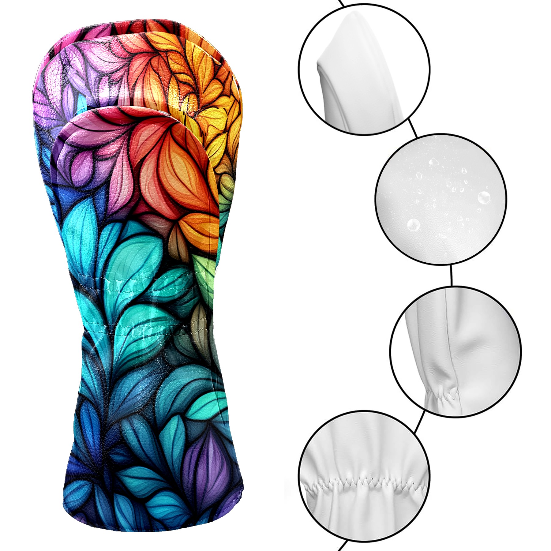 Golf Club Covers Colorful Leaves Driver Headcover, Leather Golf Club Head Covers for Driver Fairway Woods Waterproof Golf Headcovers with Anti-Scratch Lining for Men Women