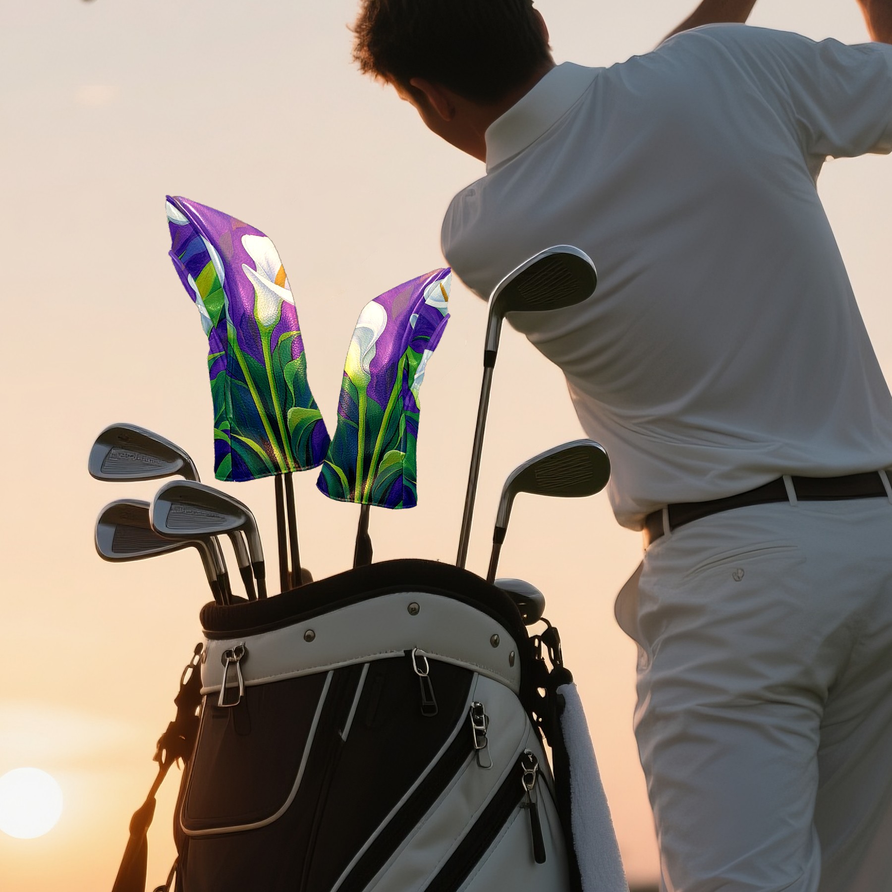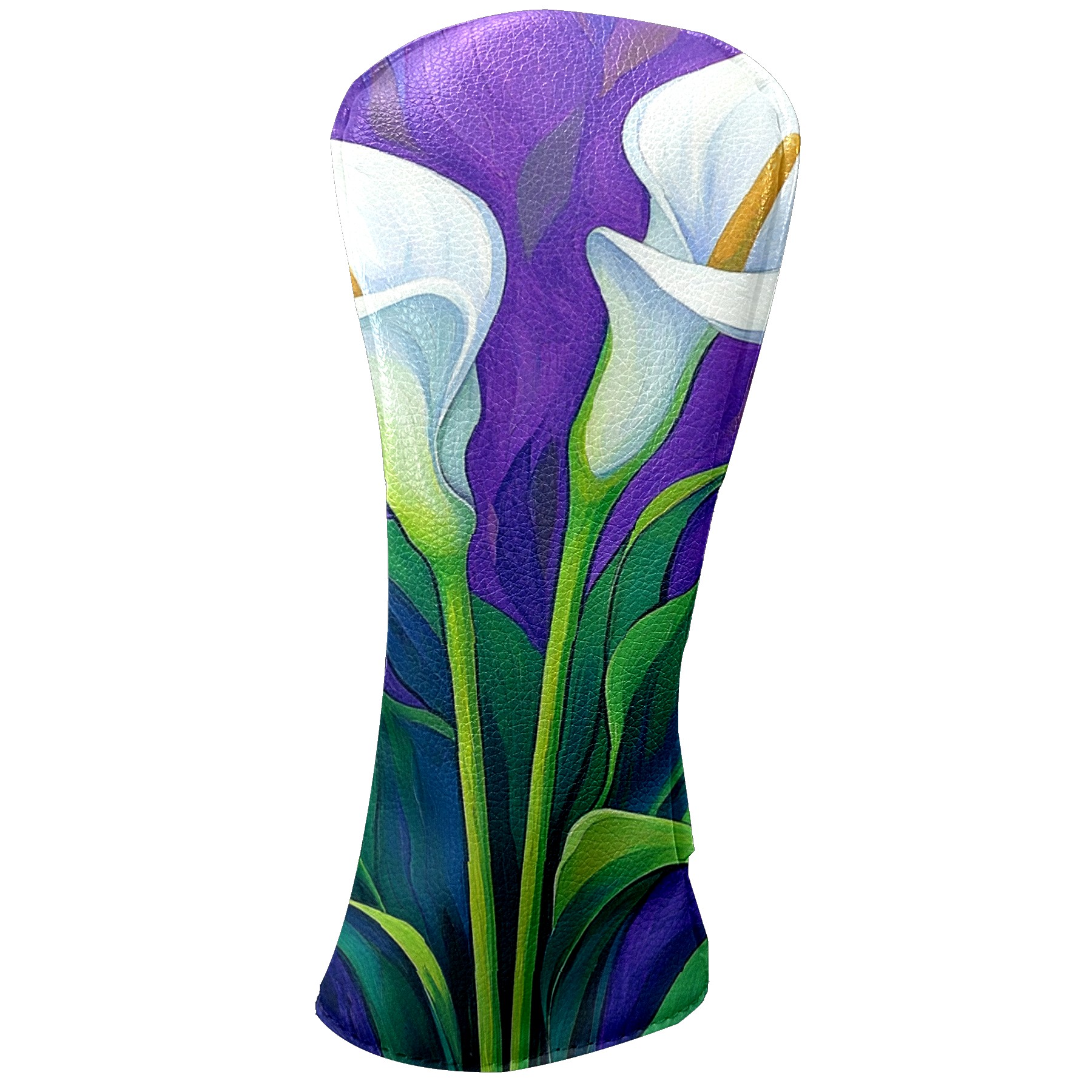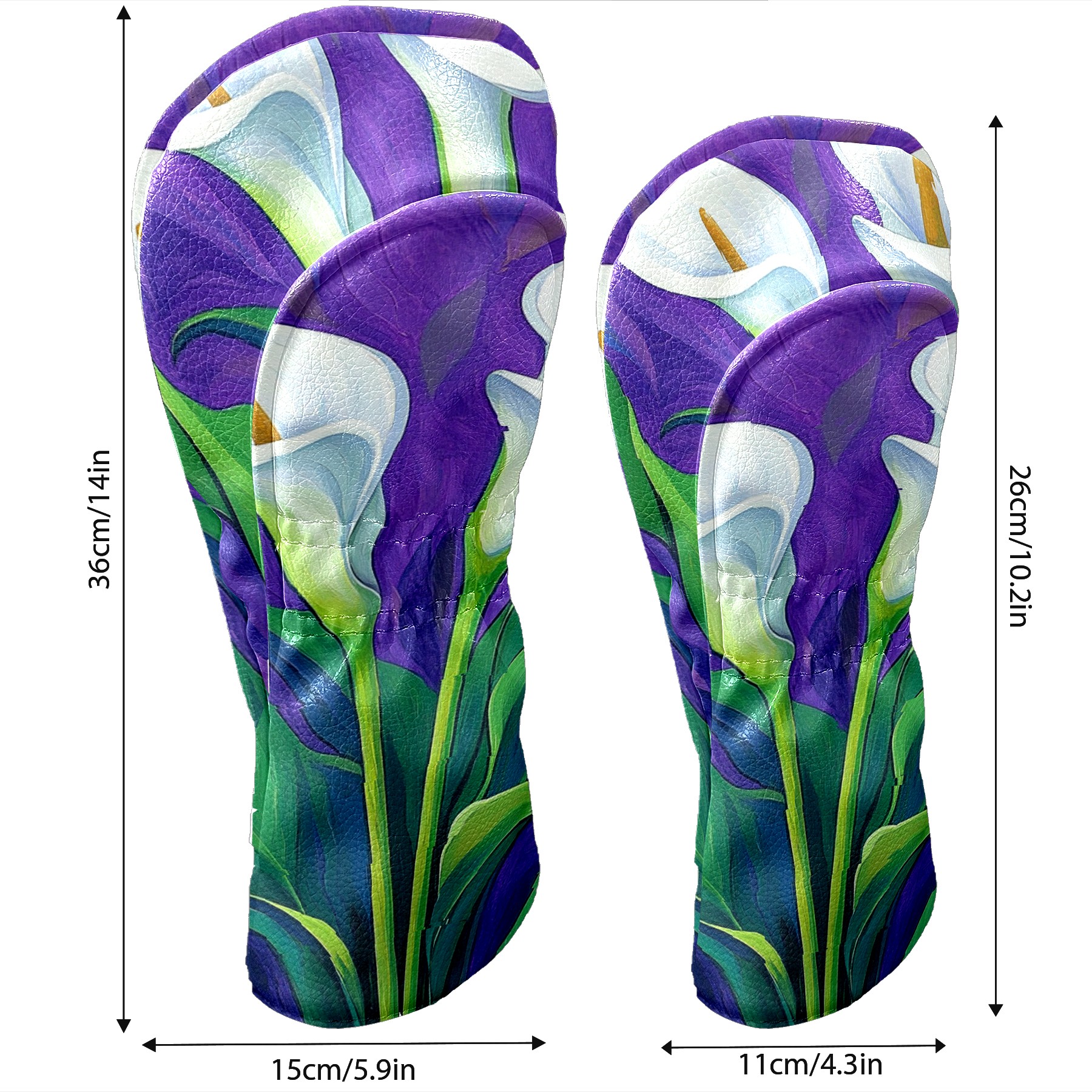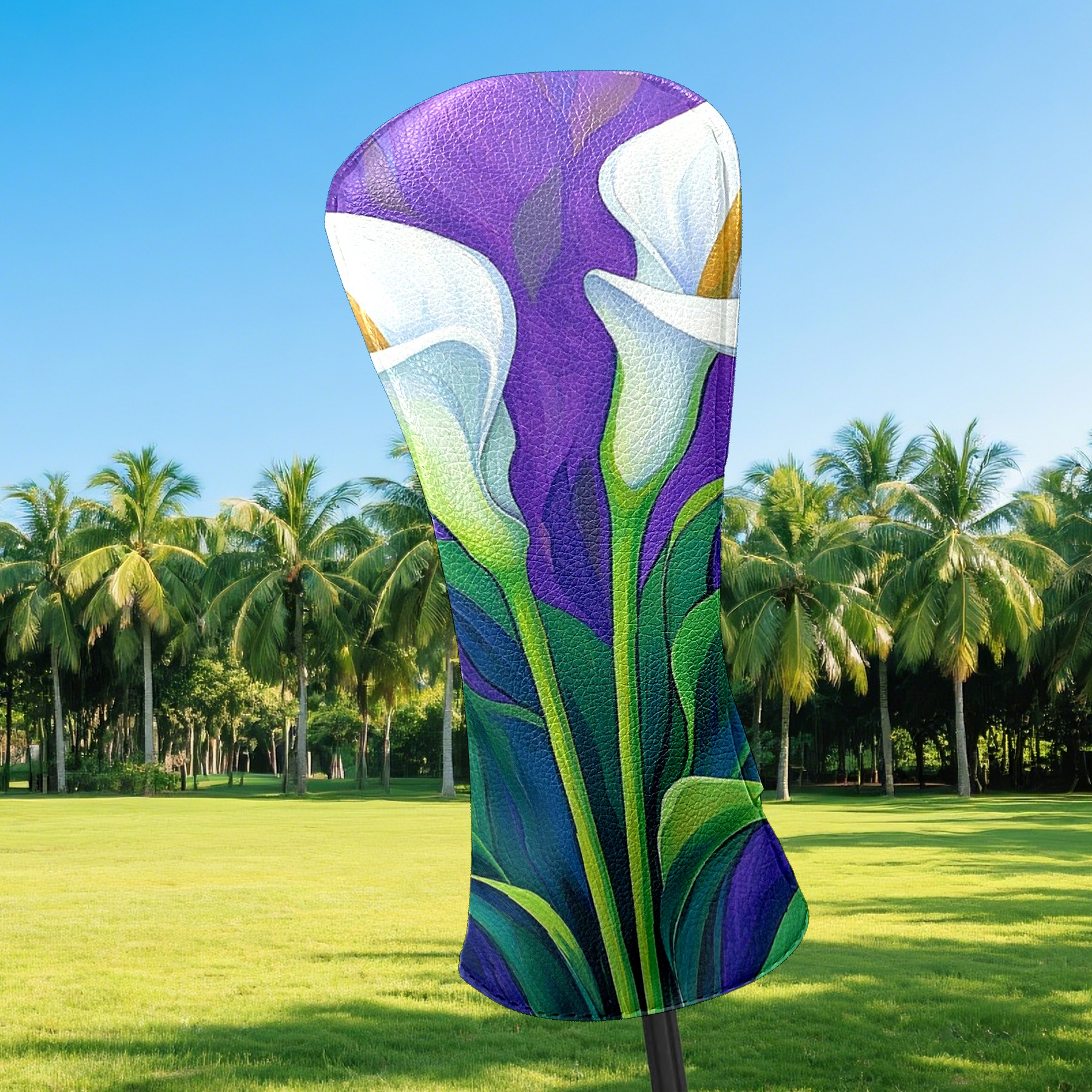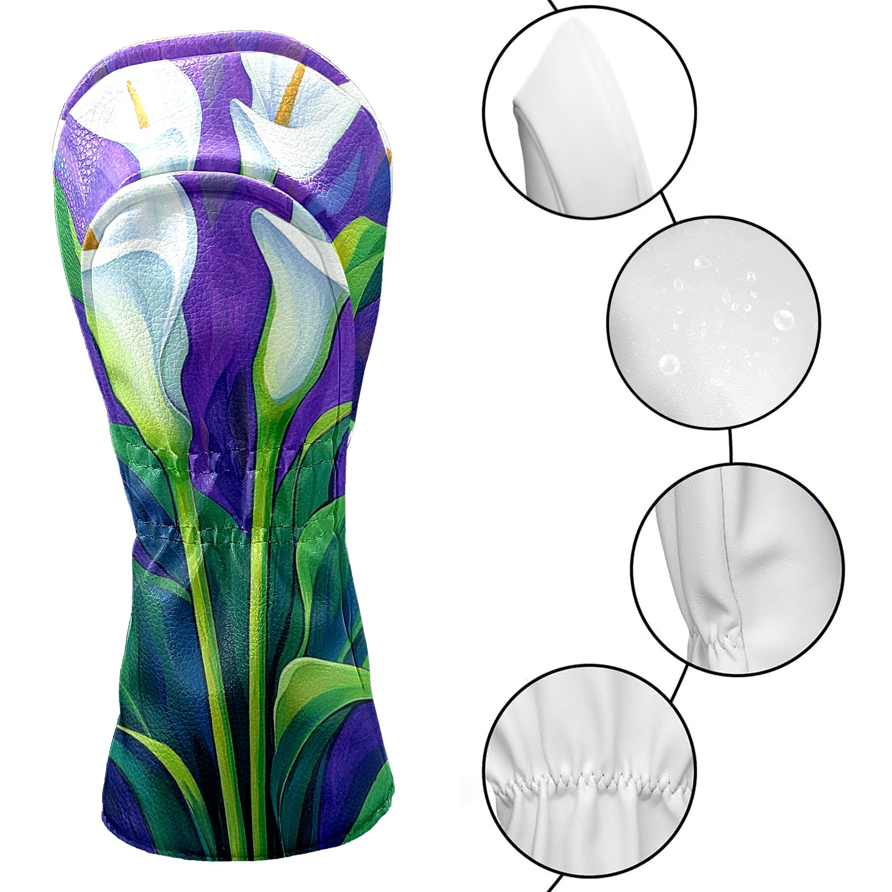 Golf Club Covers White Calla Lilies Driver Headcover, Leather Golf Club Head Covers for Driver Fairway Woods Waterproof Golf Headcovers with Anti-Scratch Lining for Men Women