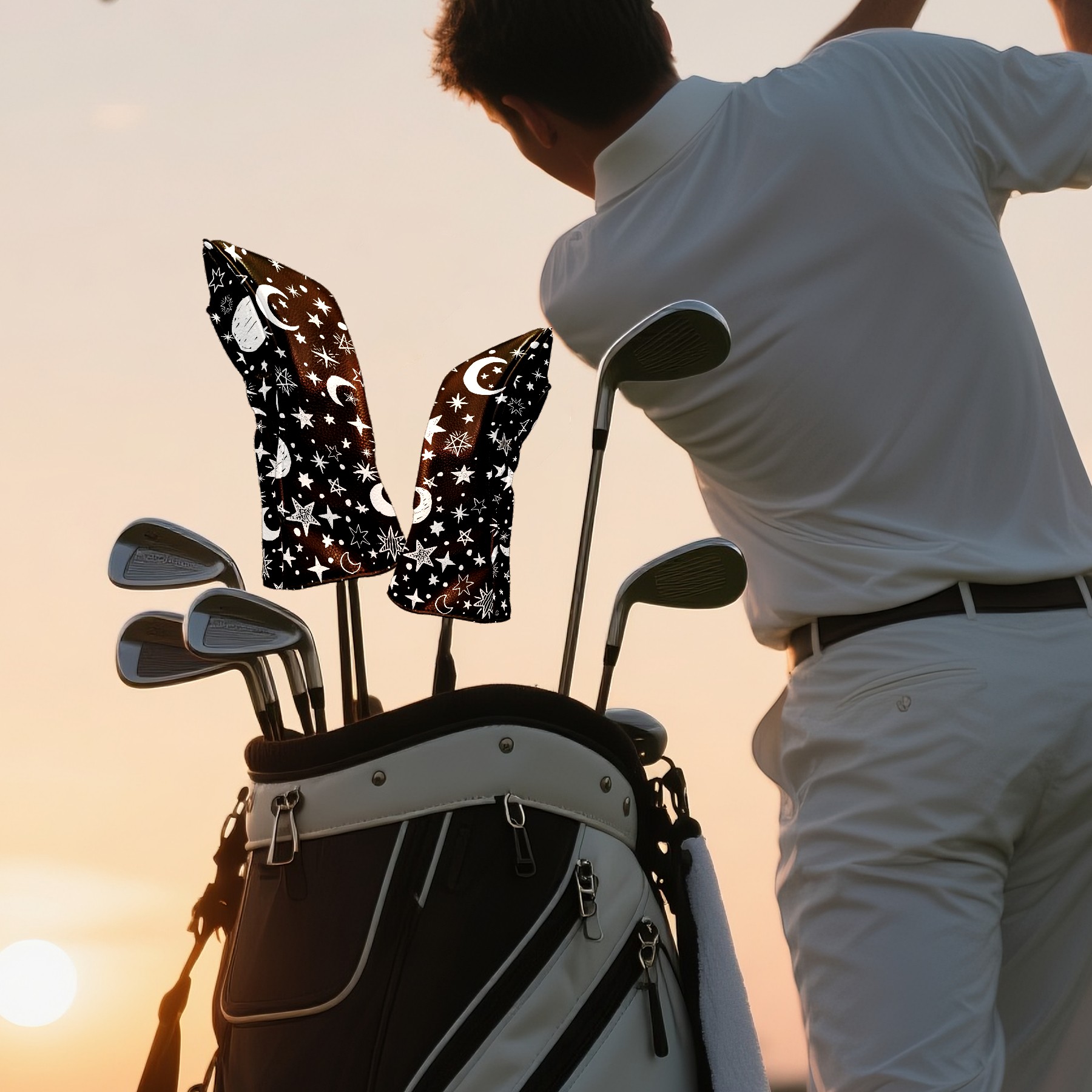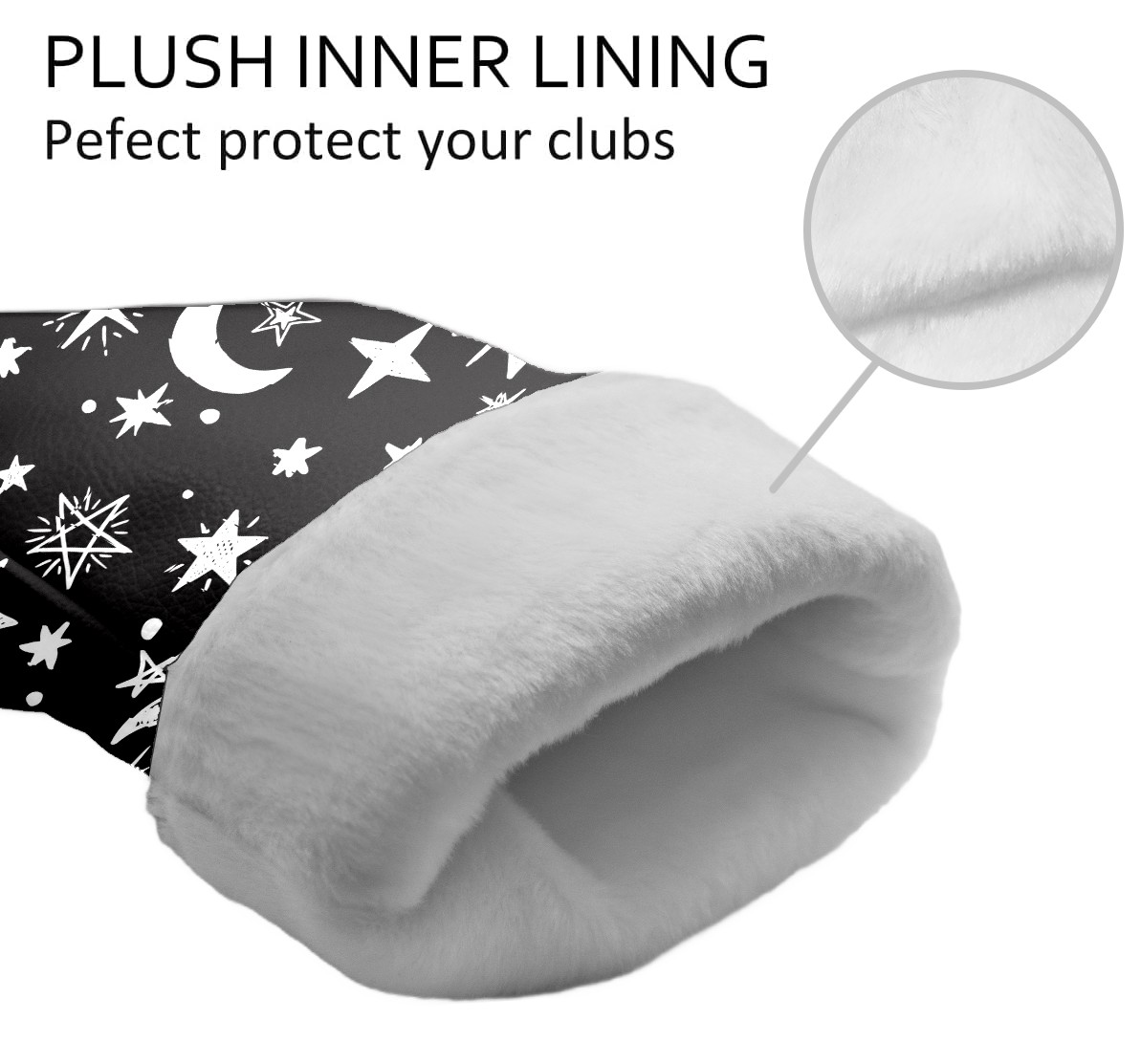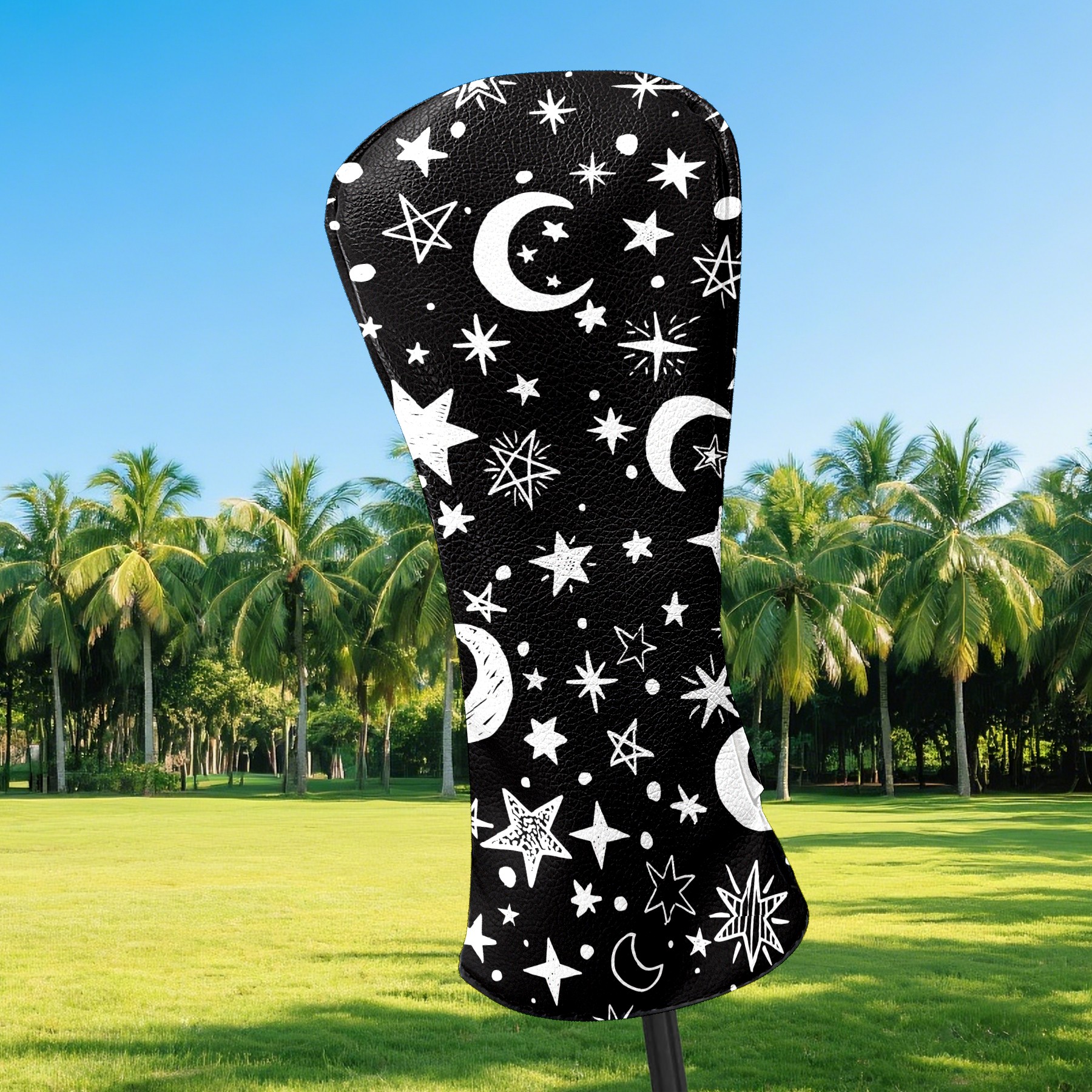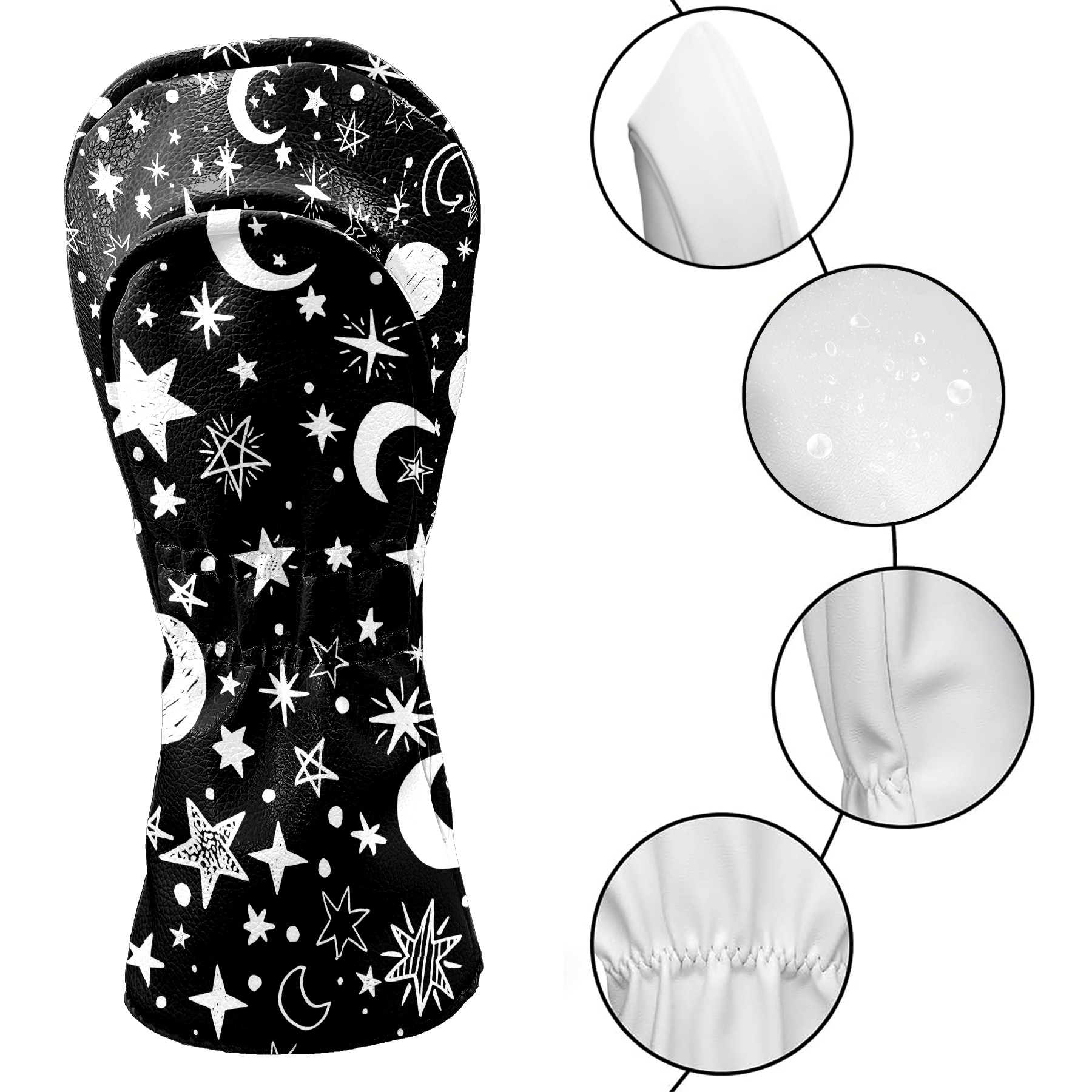 Golf Club Covers Gothic Moons Stars Black White Driver Headcover, Leather Golf Club Head Covers for Driver Fairway Woods Waterproof Golf Headcovers with Anti-Scratch Lining for Men Women