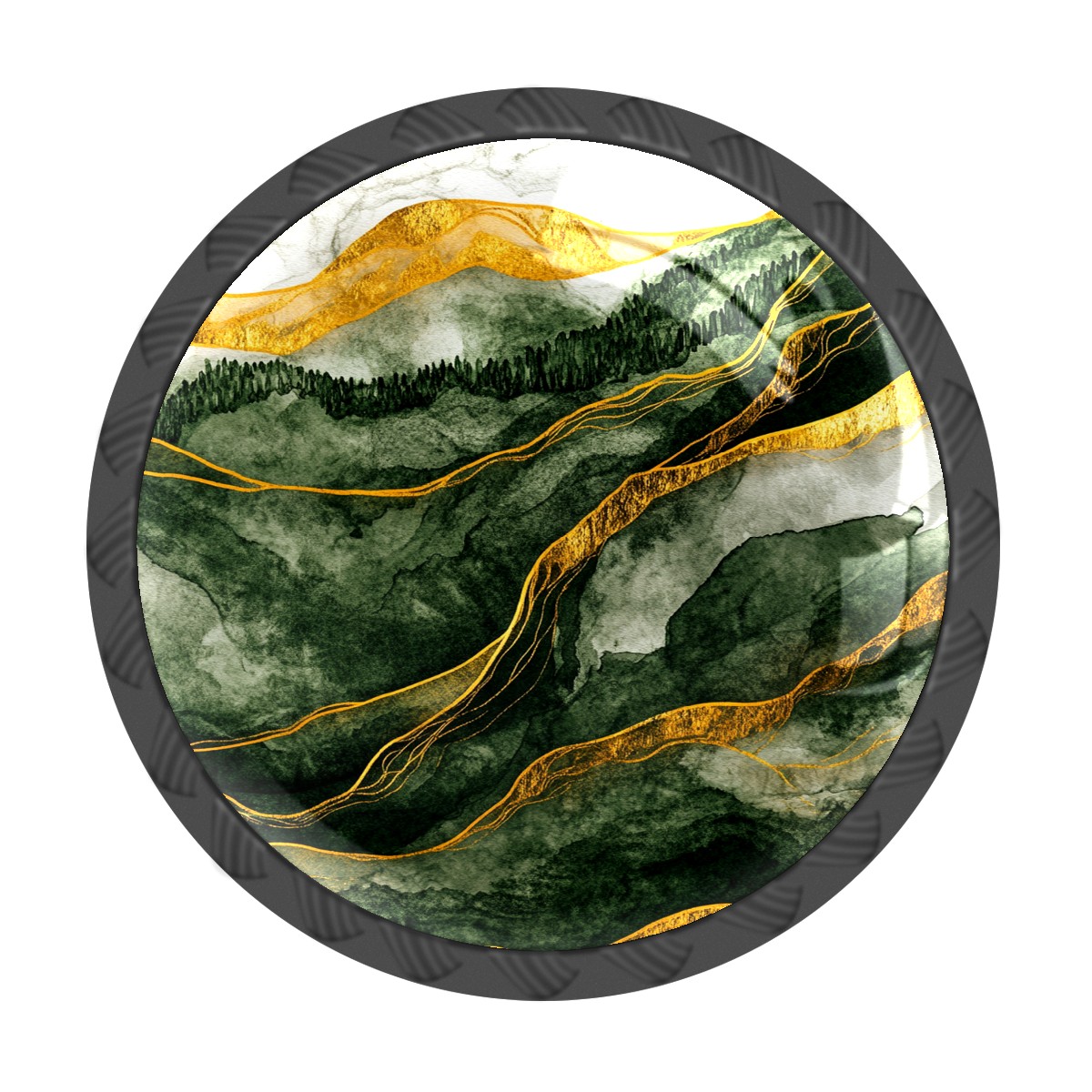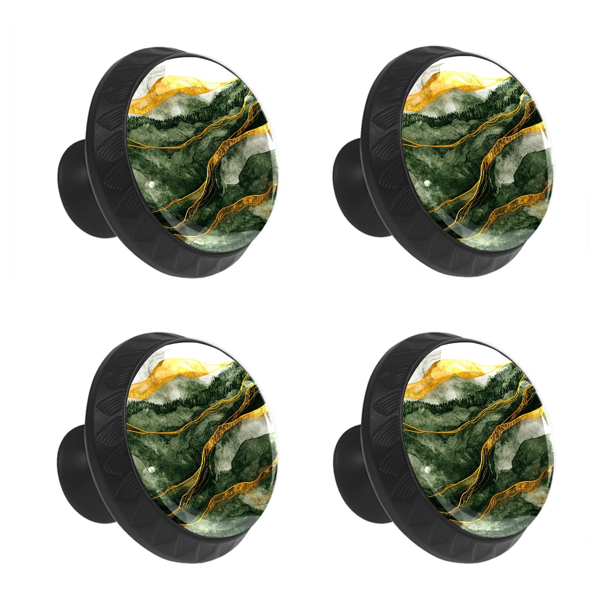 4 Pack Cabinet Knobs Green Golden Mountains Drawer Pulls Crystal Glass Round Knobs Handles for Dressers Drawer Bathroom Kitchen Cupboards Wardrobes Hardware Furniture Knobs
