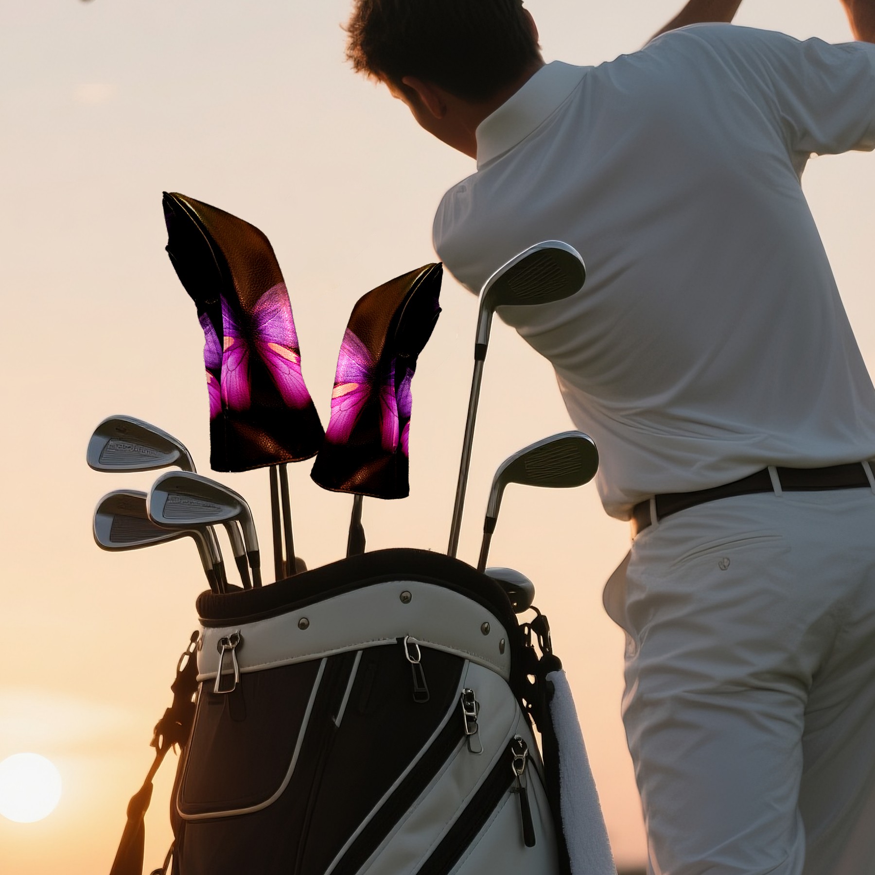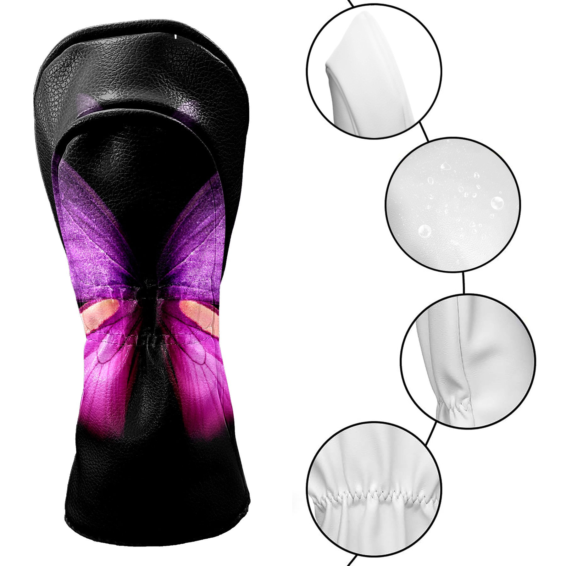 Golf Club Covers Purple-butterfly-wings-black-background-samsung-galaxy-fold-5400x3500-2361 Driver Headcover, Leather Golf Club Head Covers for Driver Fairway Woods Waterproof Golf Headcovers with Anti-Scratch Lining for Men Women