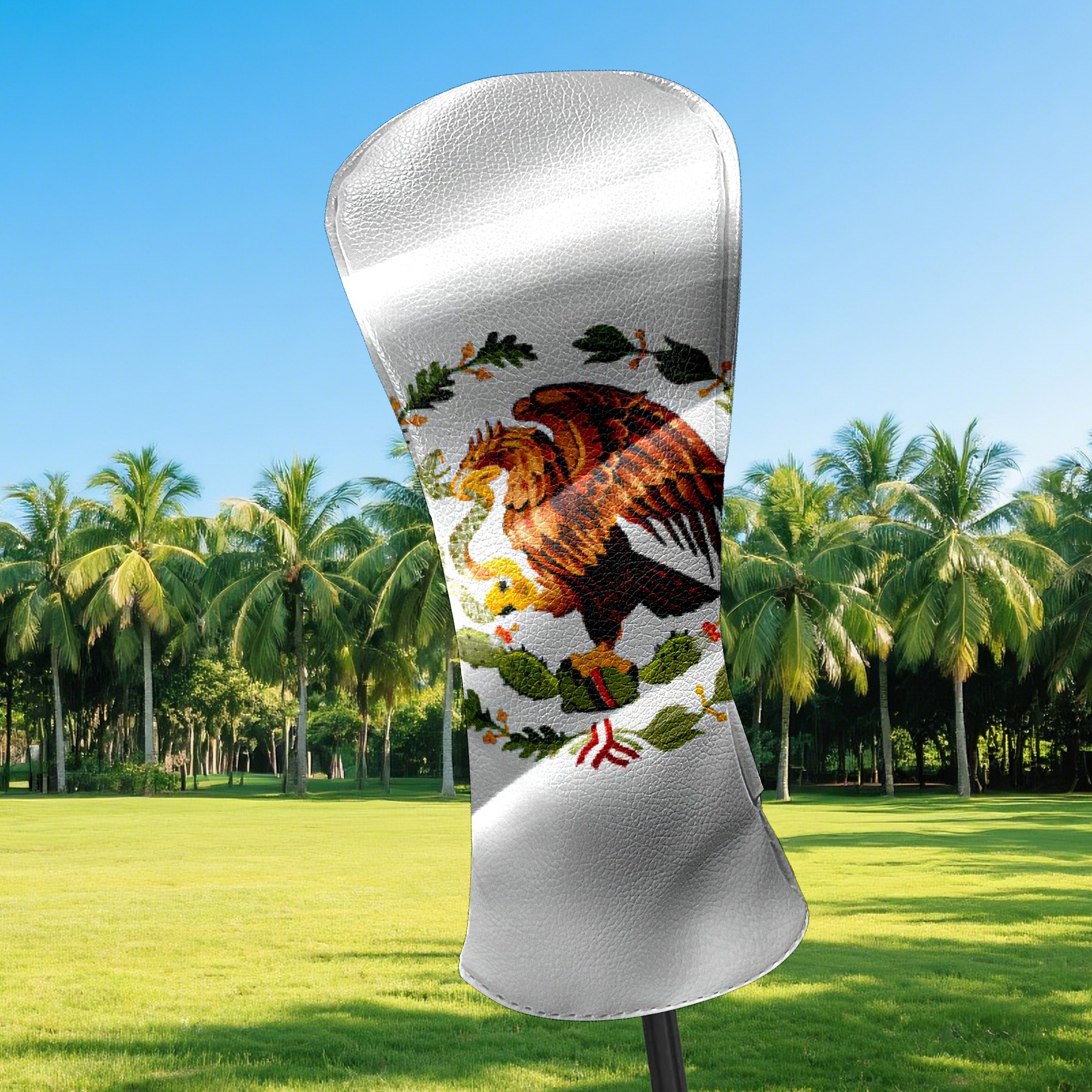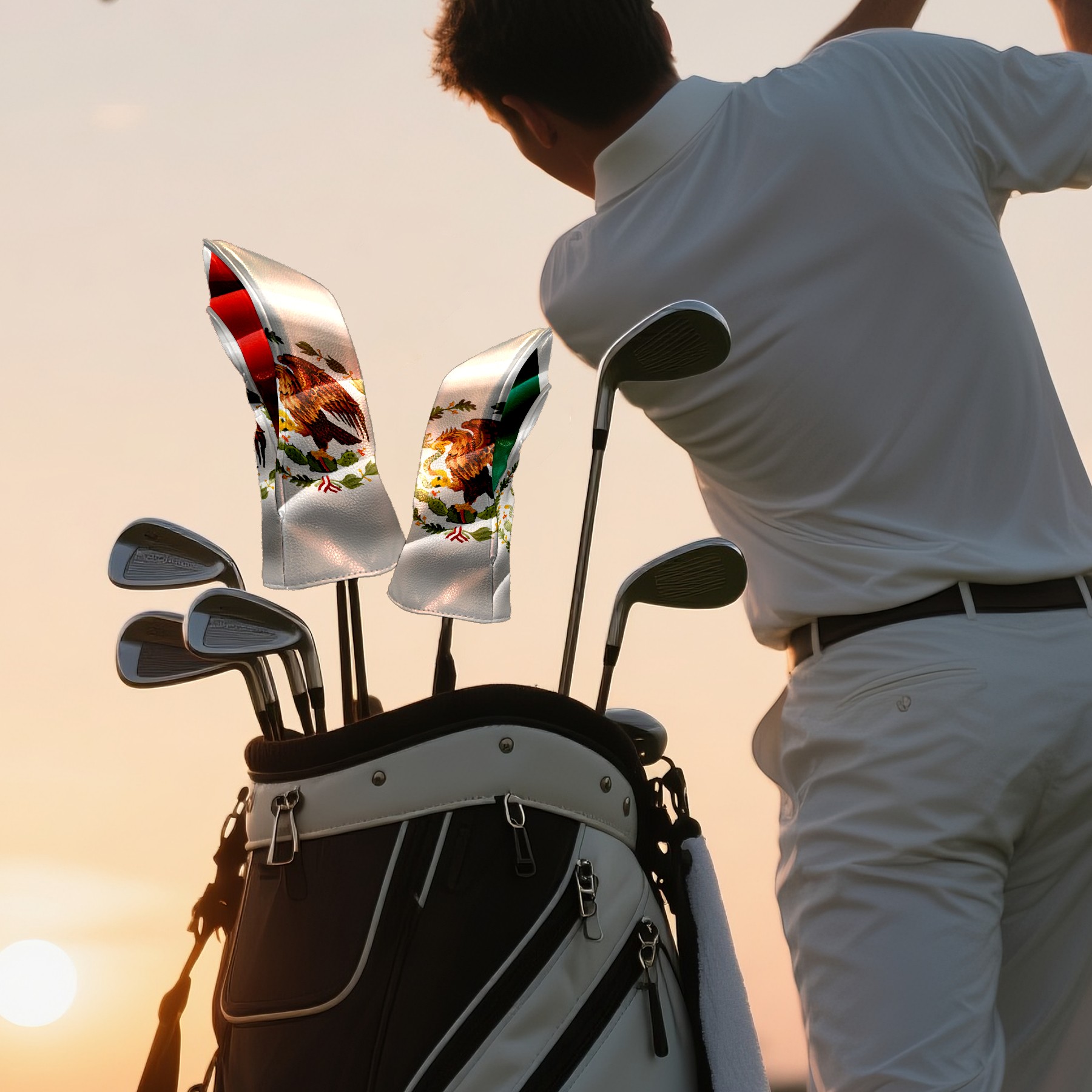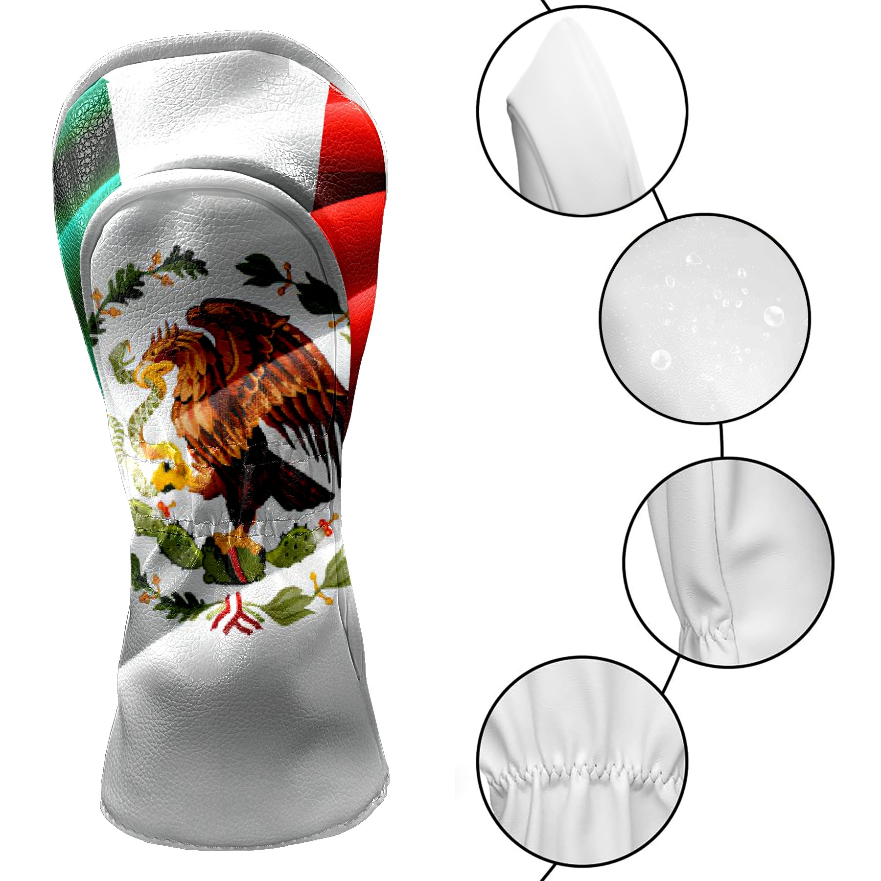 Golf Club Covers Mexican Flag Driver Headcover, Leather Golf Club Head Covers for Driver Fairway Woods Waterproof Golf Headcovers with Anti-Scratch Lining for Men Women
