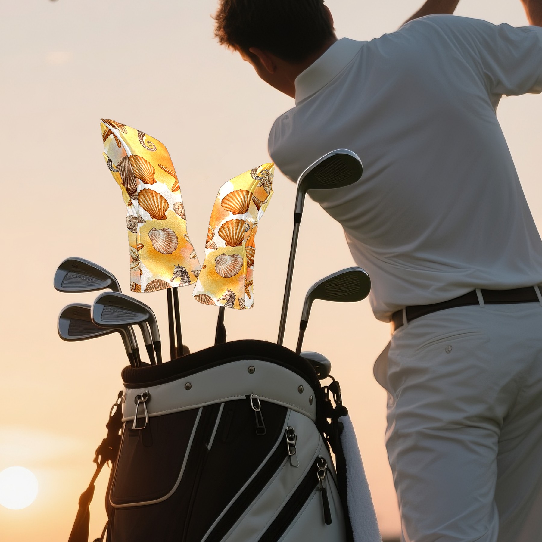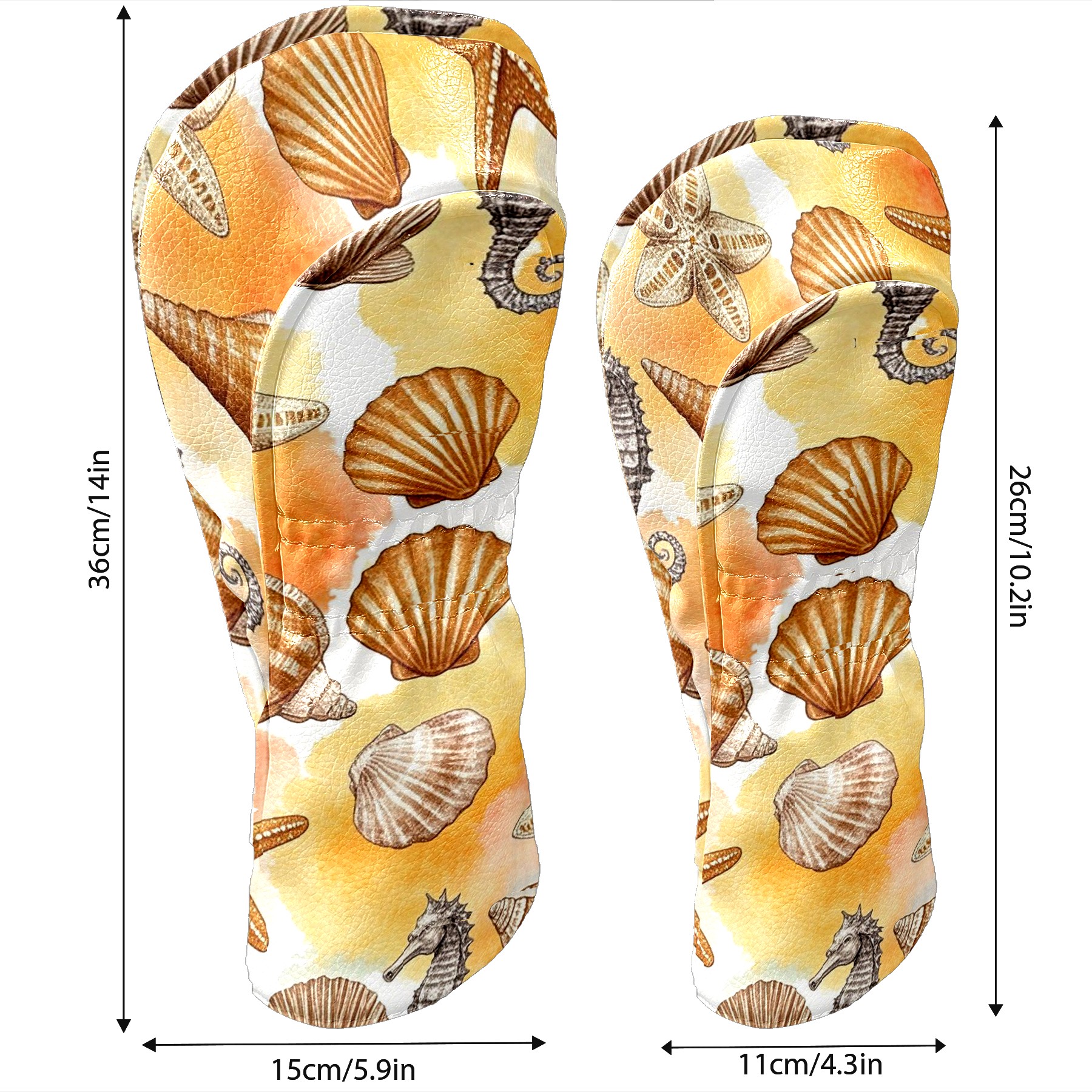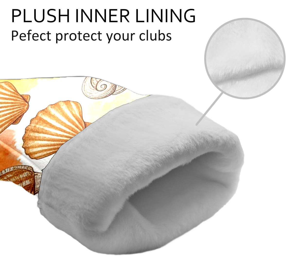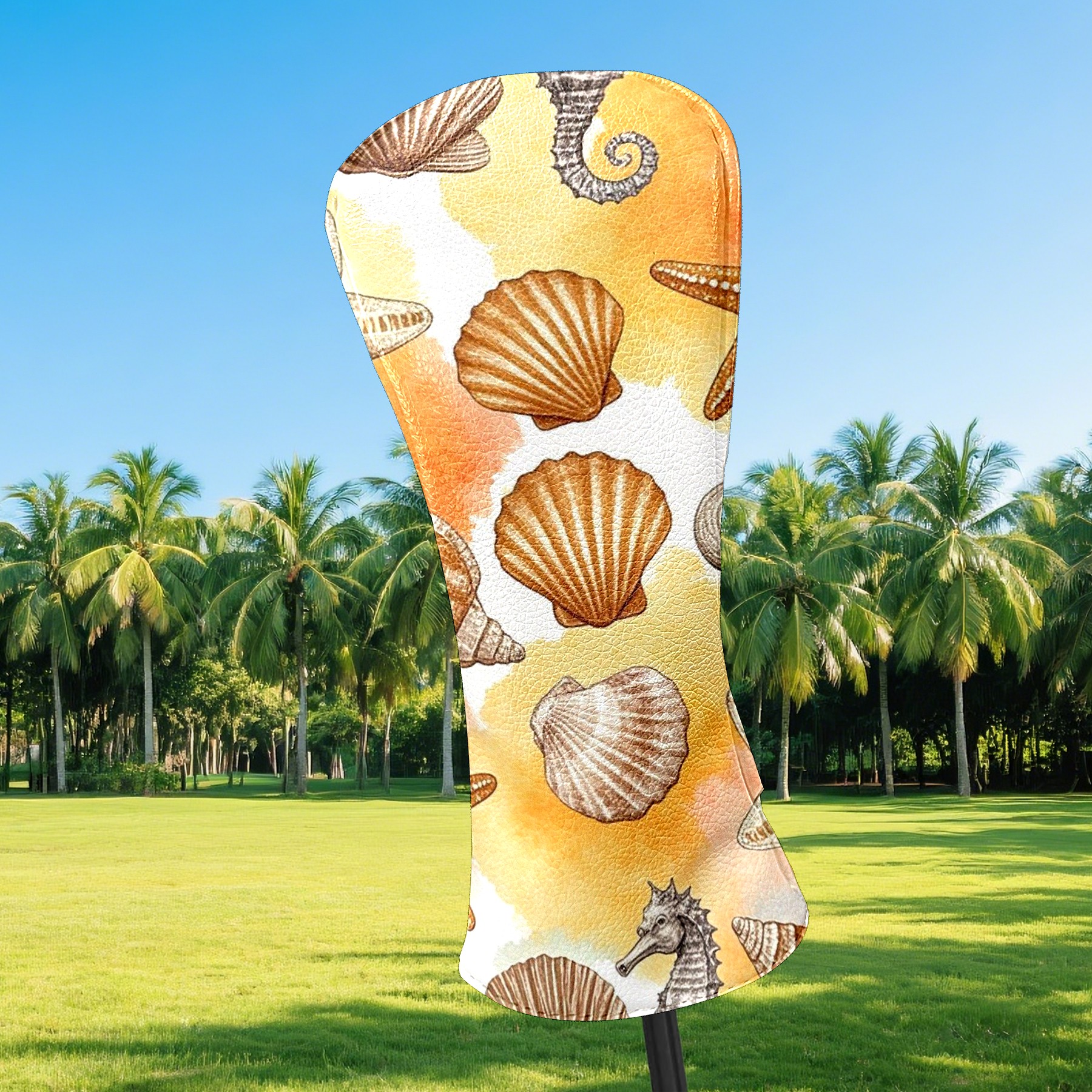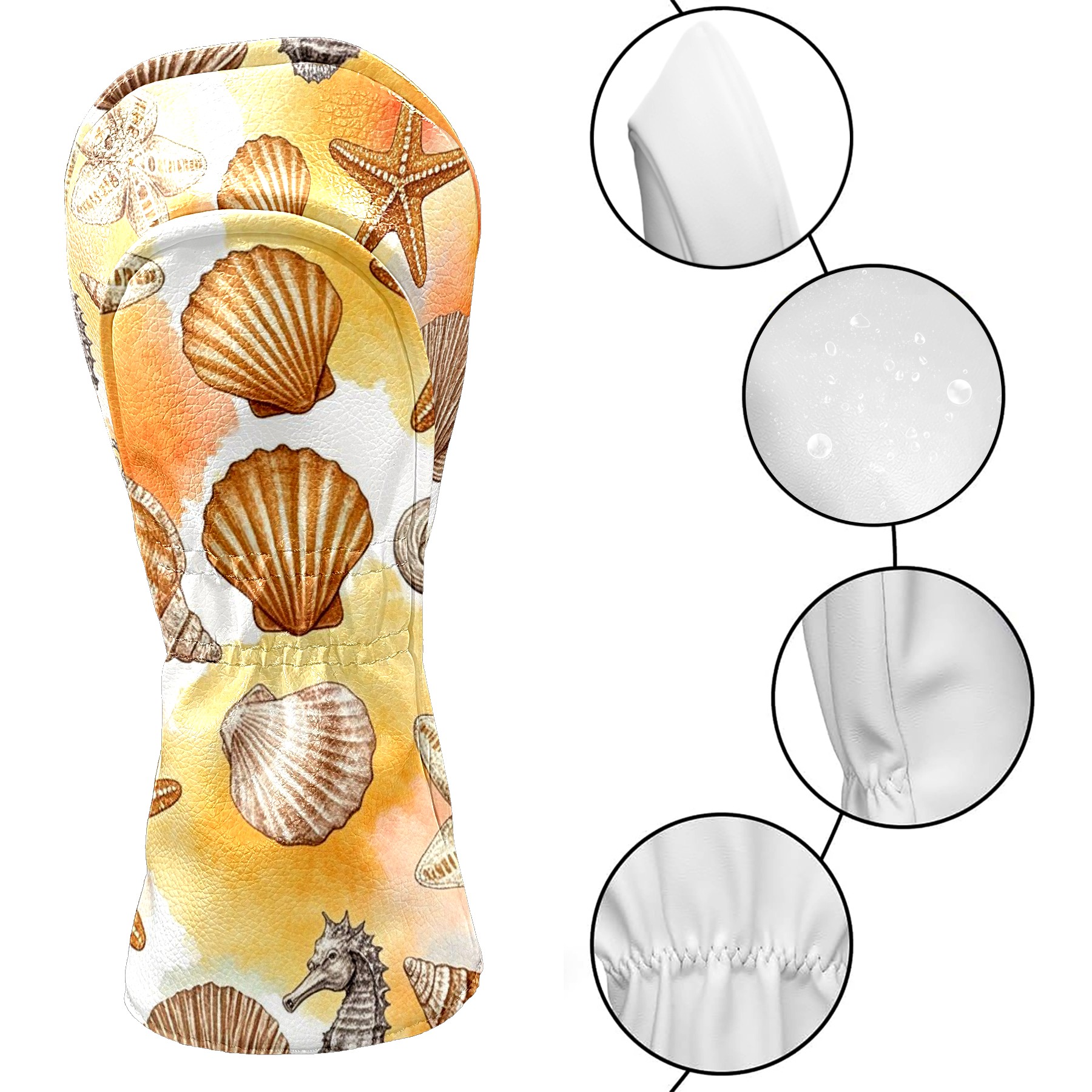 Golf Club Covers Retro Beach Shells Driver Headcover, Leather Golf Club Head Covers for Driver Fairway Woods Waterproof Golf Headcovers with Anti-Scratch Lining for Men Women