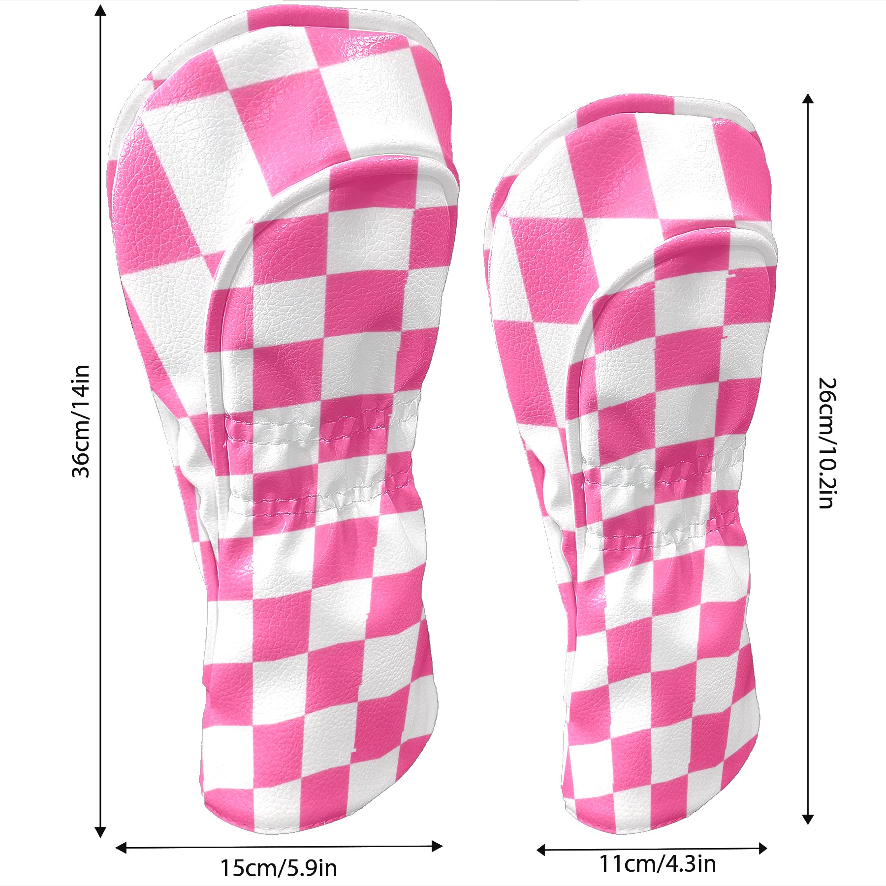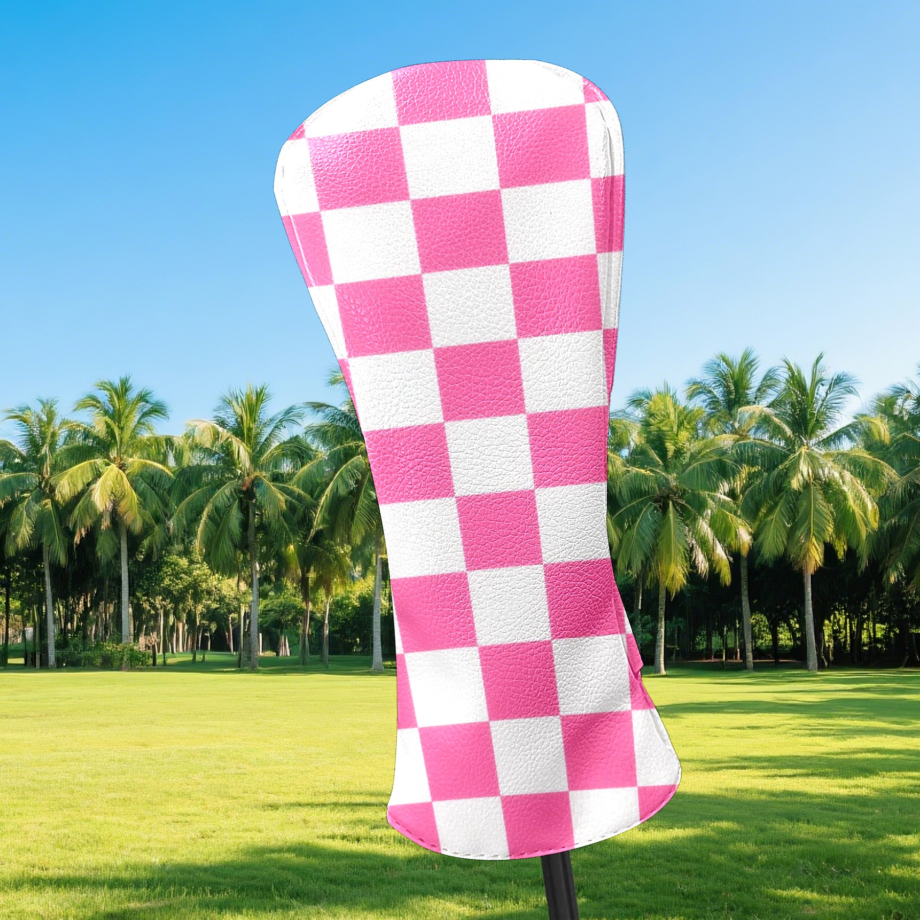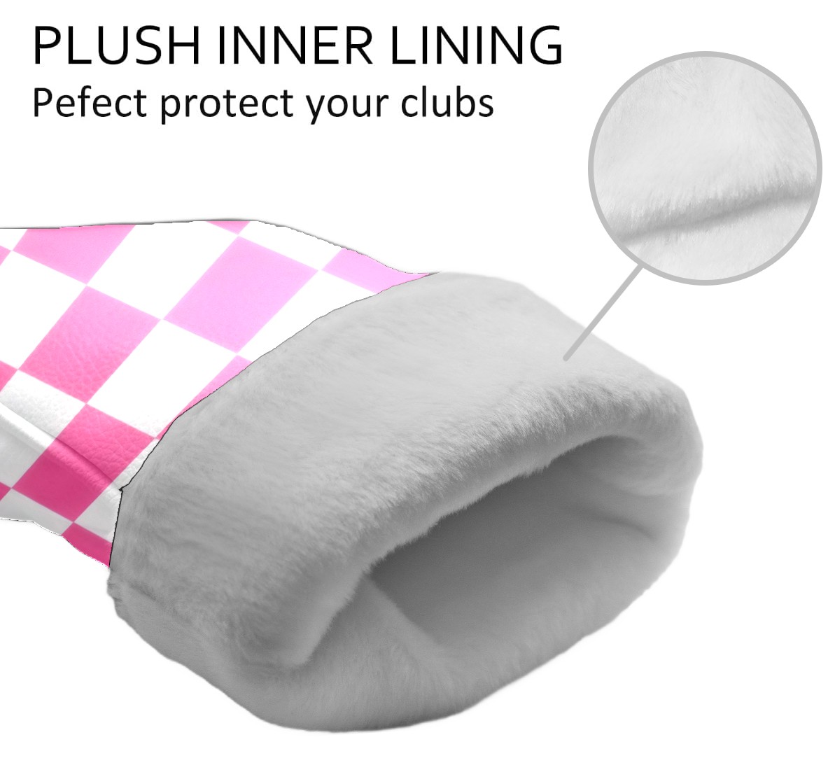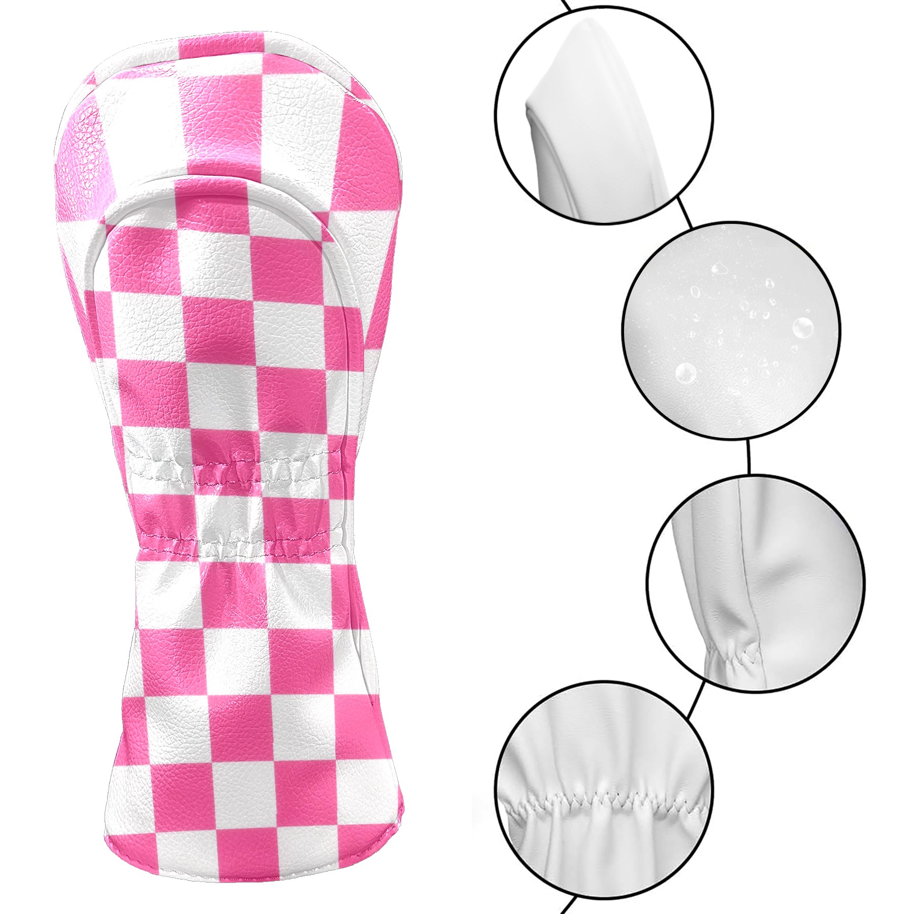 Golf Club Covers Pink Checker Driver Headcover, Leather Golf Club Head Covers for Driver Fairway Woods Waterproof Golf Headcovers with Anti-Scratch Lining for Men Women