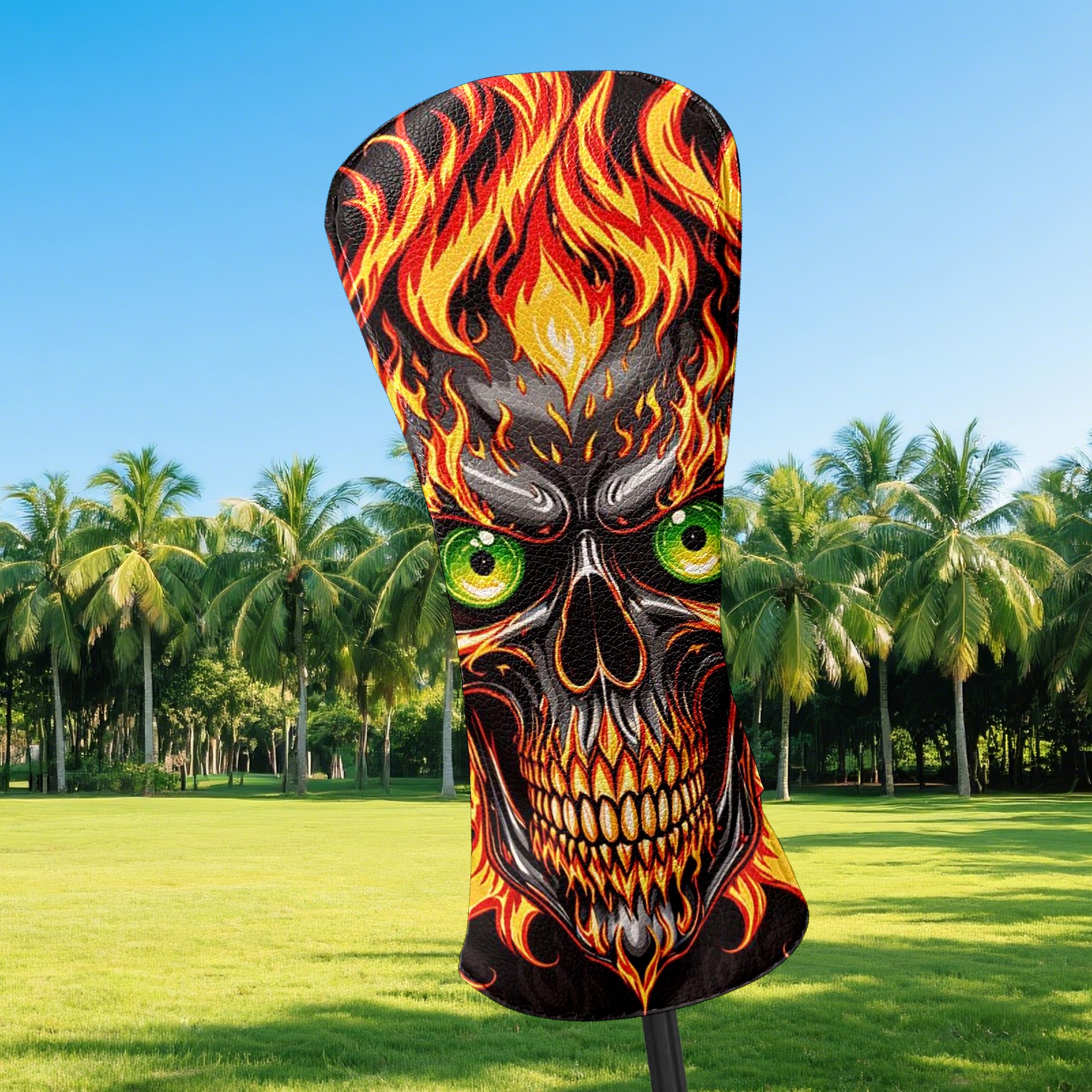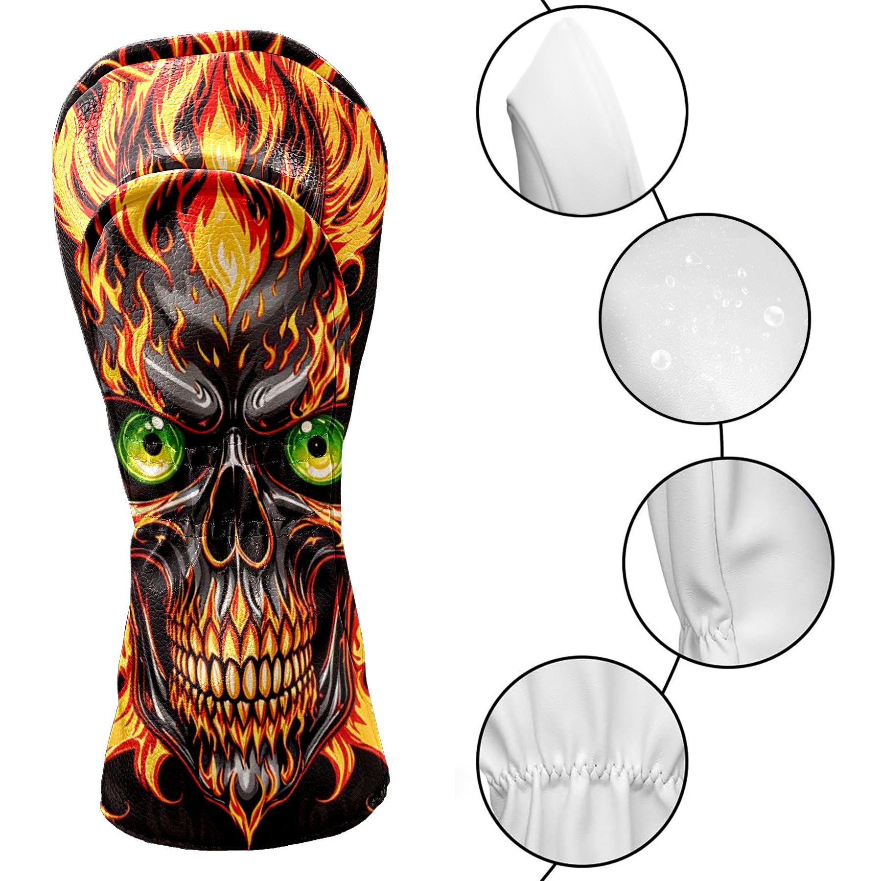 Golf Club Covers Gothic Flame Skull Driver Headcover, Leather Golf Club Head Covers for Driver Fairway Woods Waterproof Golf Headcovers with Anti-Scratch Lining for Men Women