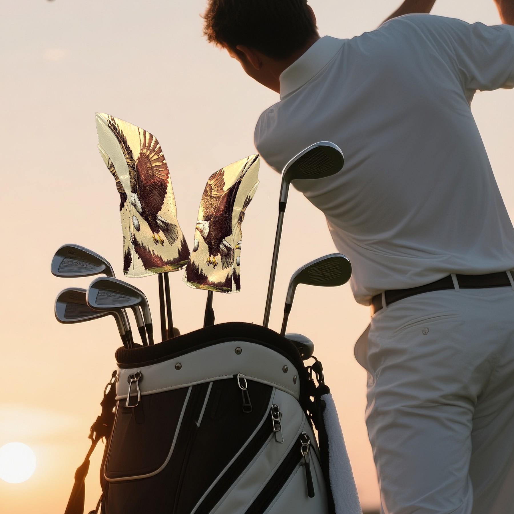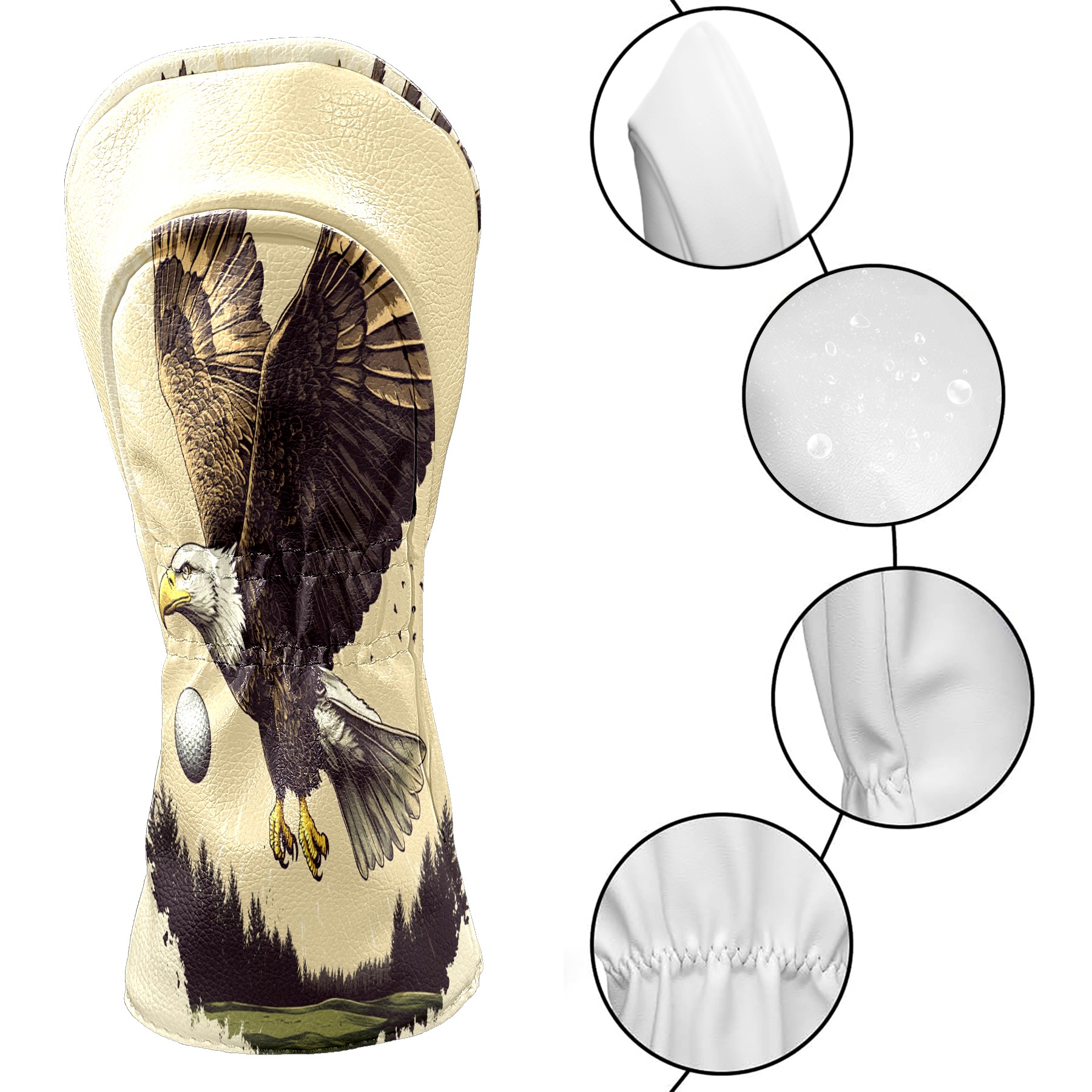 Golf Club Covers Eagle Driver Headcover, Leather Golf Club Head Covers for Driver Fairway Woods Waterproof Golf Headcovers with Anti-Scratch Lining for Men Women