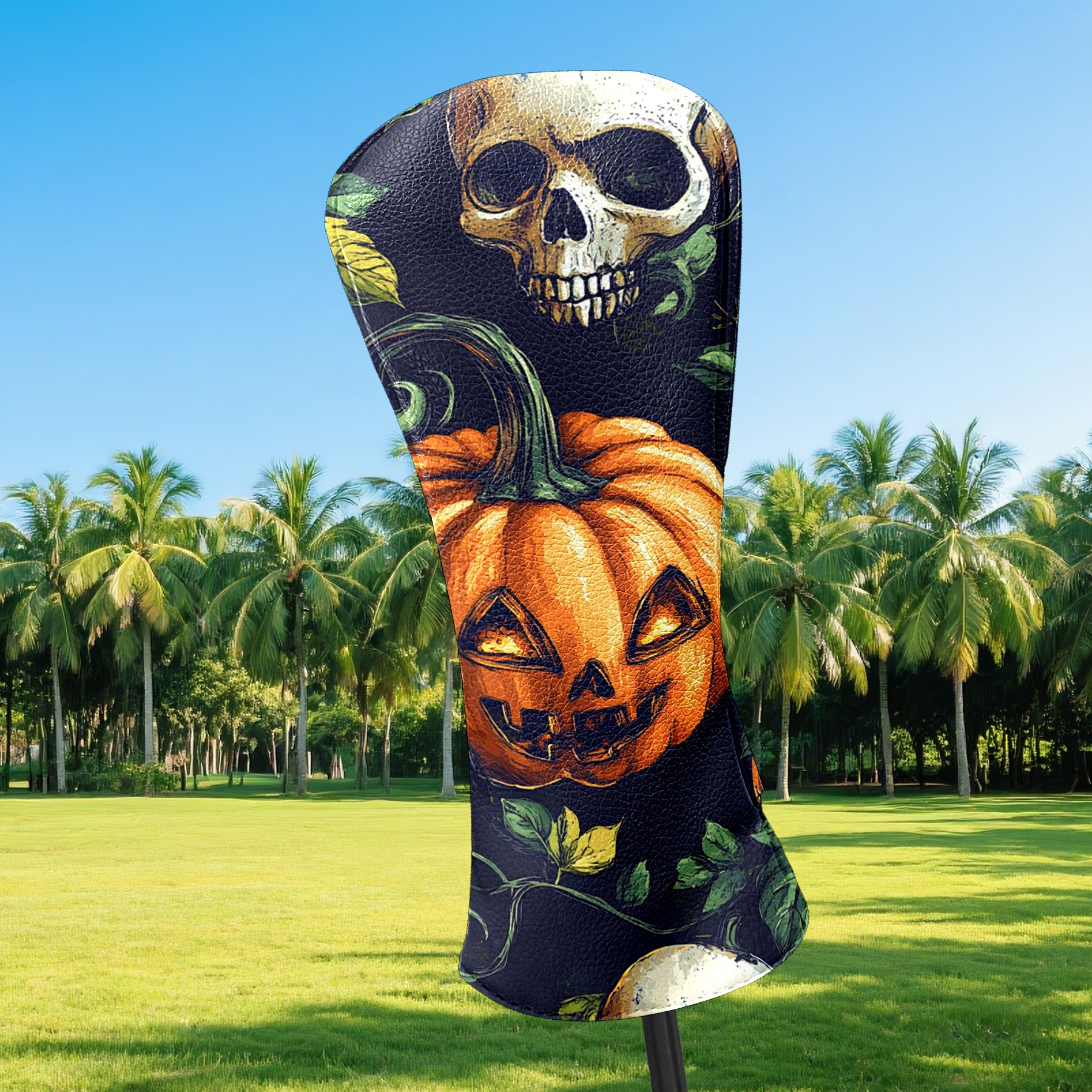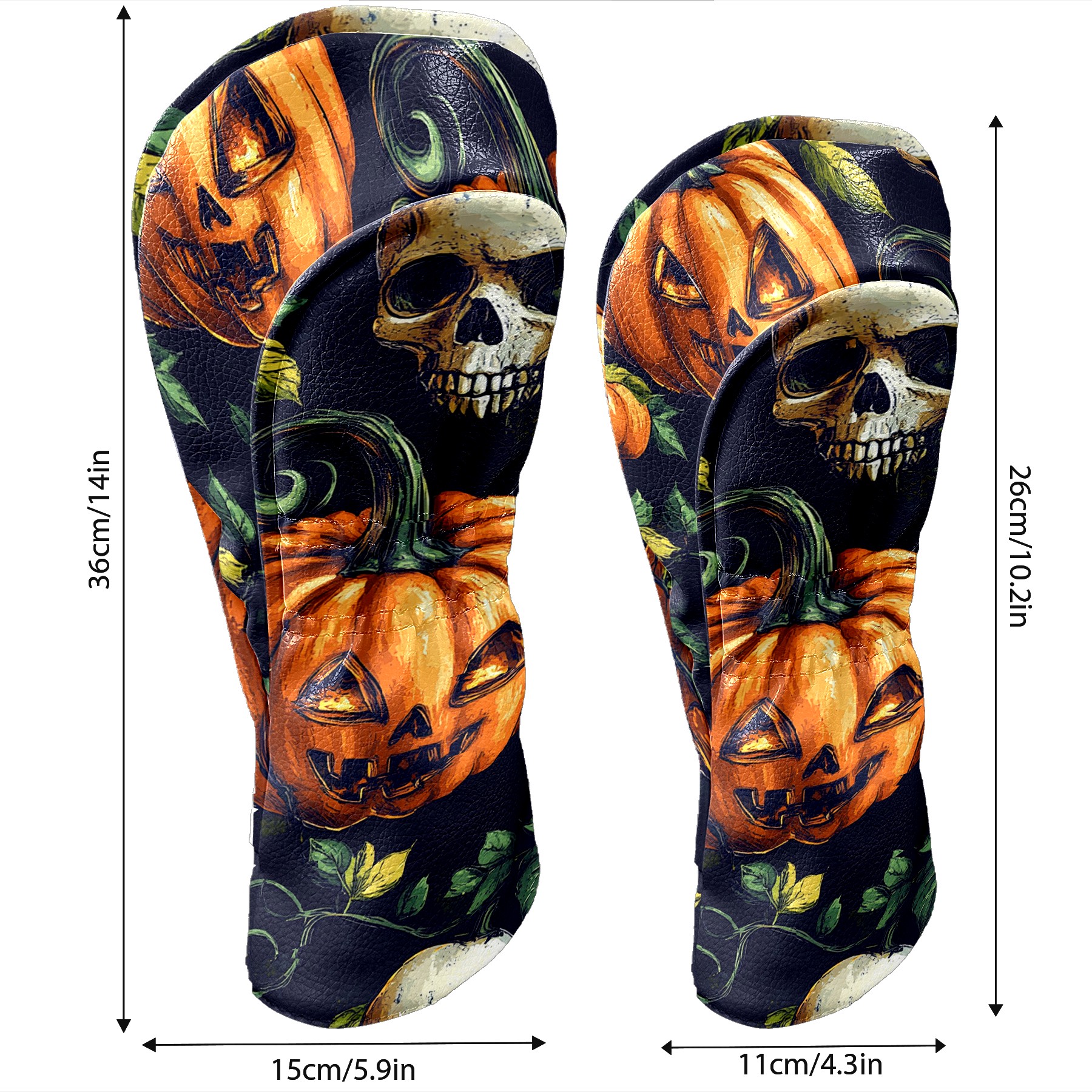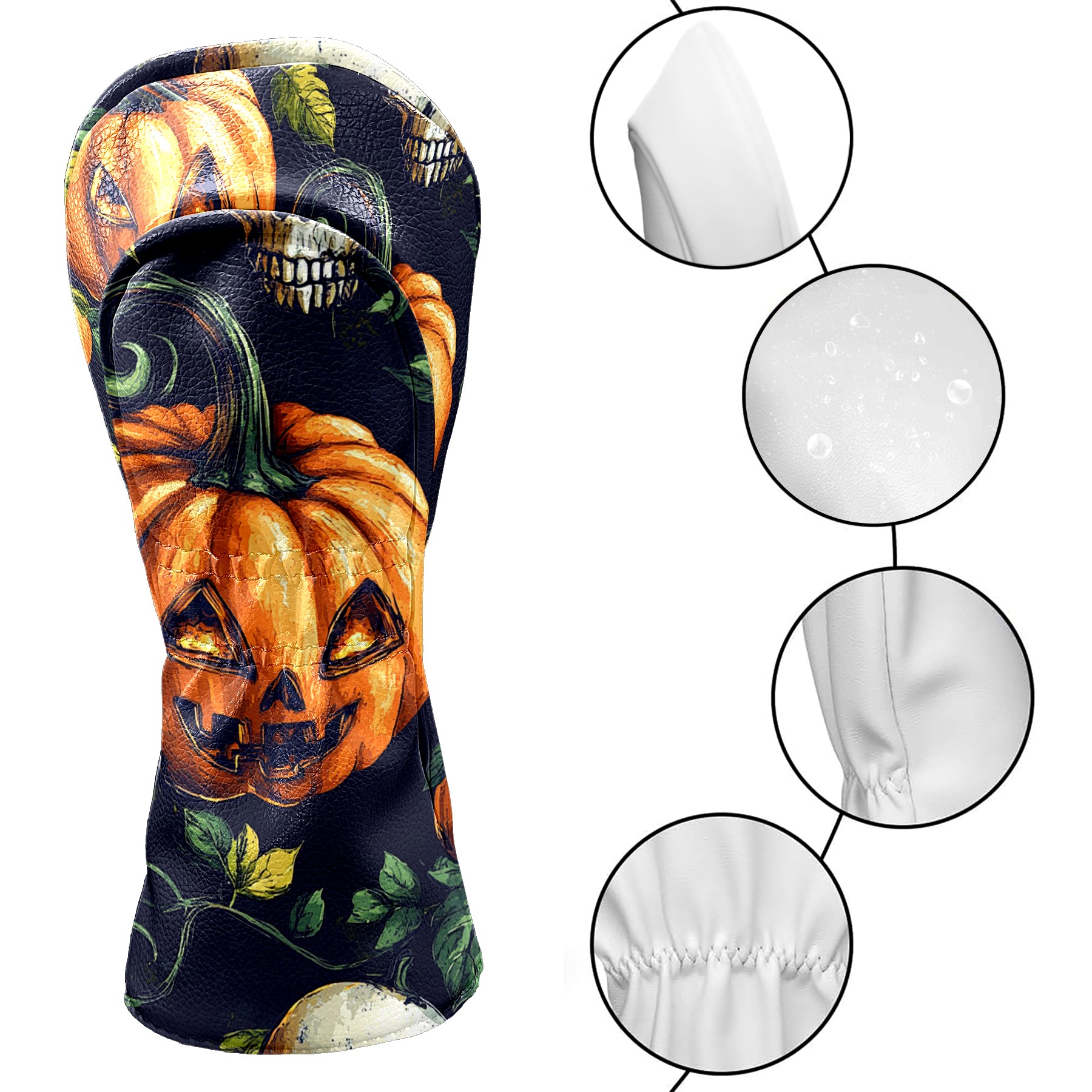Golf Club Covers Orange Pumpkin Skull Driver Headcover, Leather Golf Club Head Covers for Driver Fairway Woods Waterproof Golf Headcovers with Anti-Scratch Lining for Men Women
