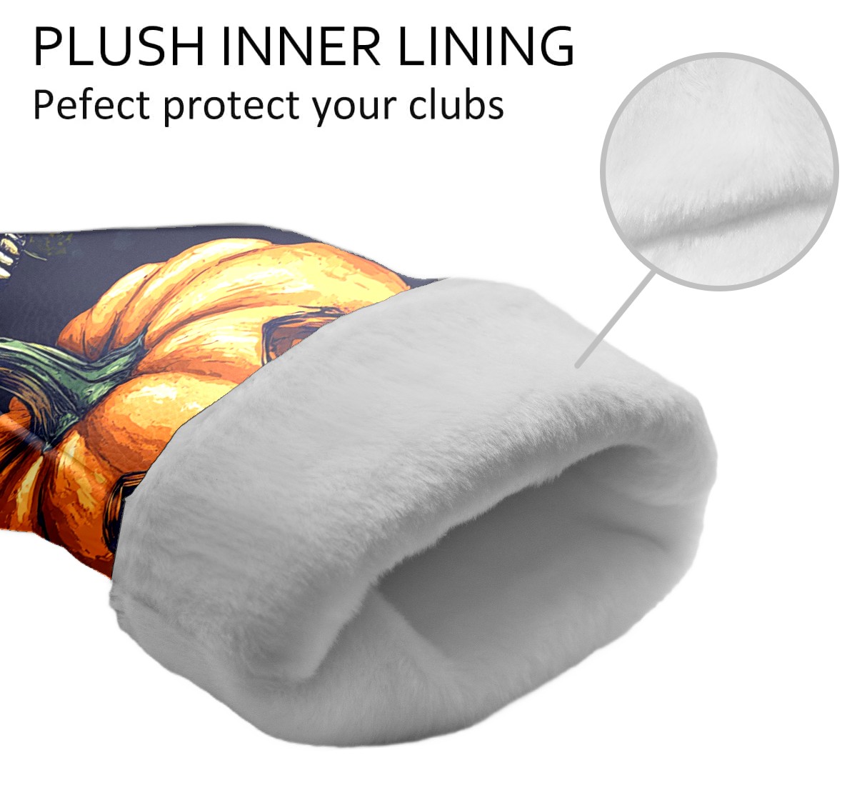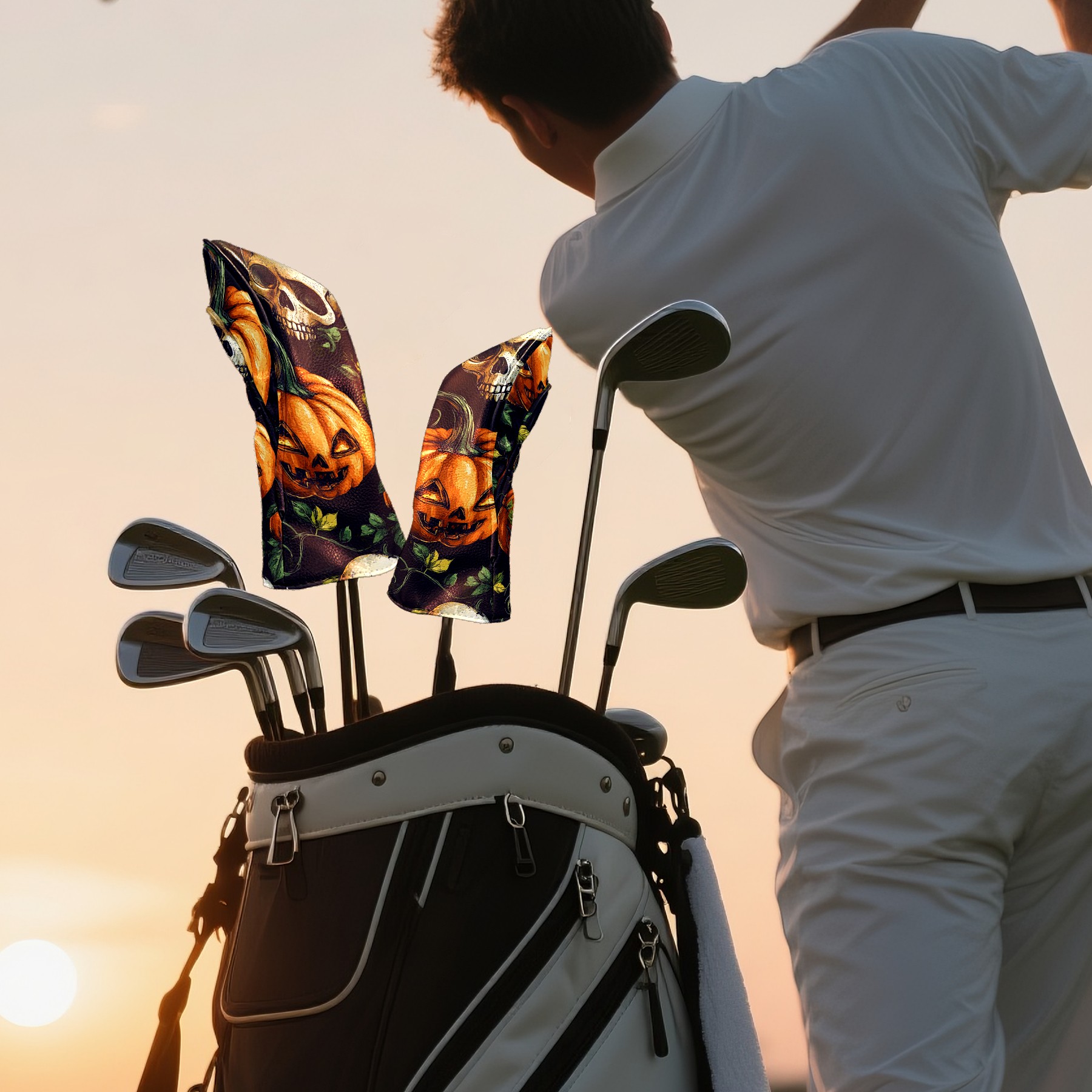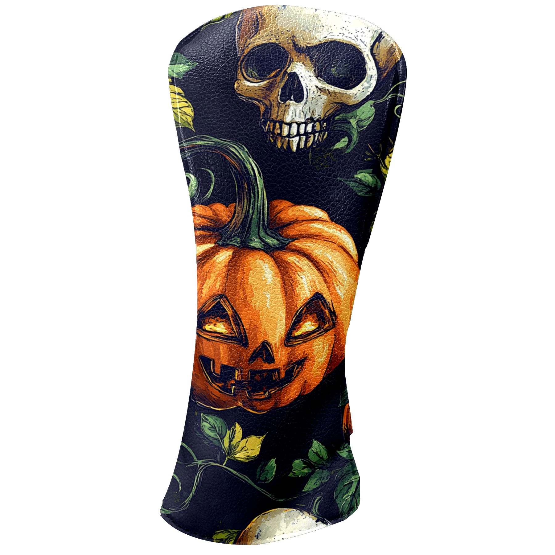 Golf Club Covers Orange Pumpkin Skull Driver Headcover, Leather Golf Club Head Covers for Driver Fairway Woods Waterproof Golf Headcovers with Anti-Scratch Lining for Men Women