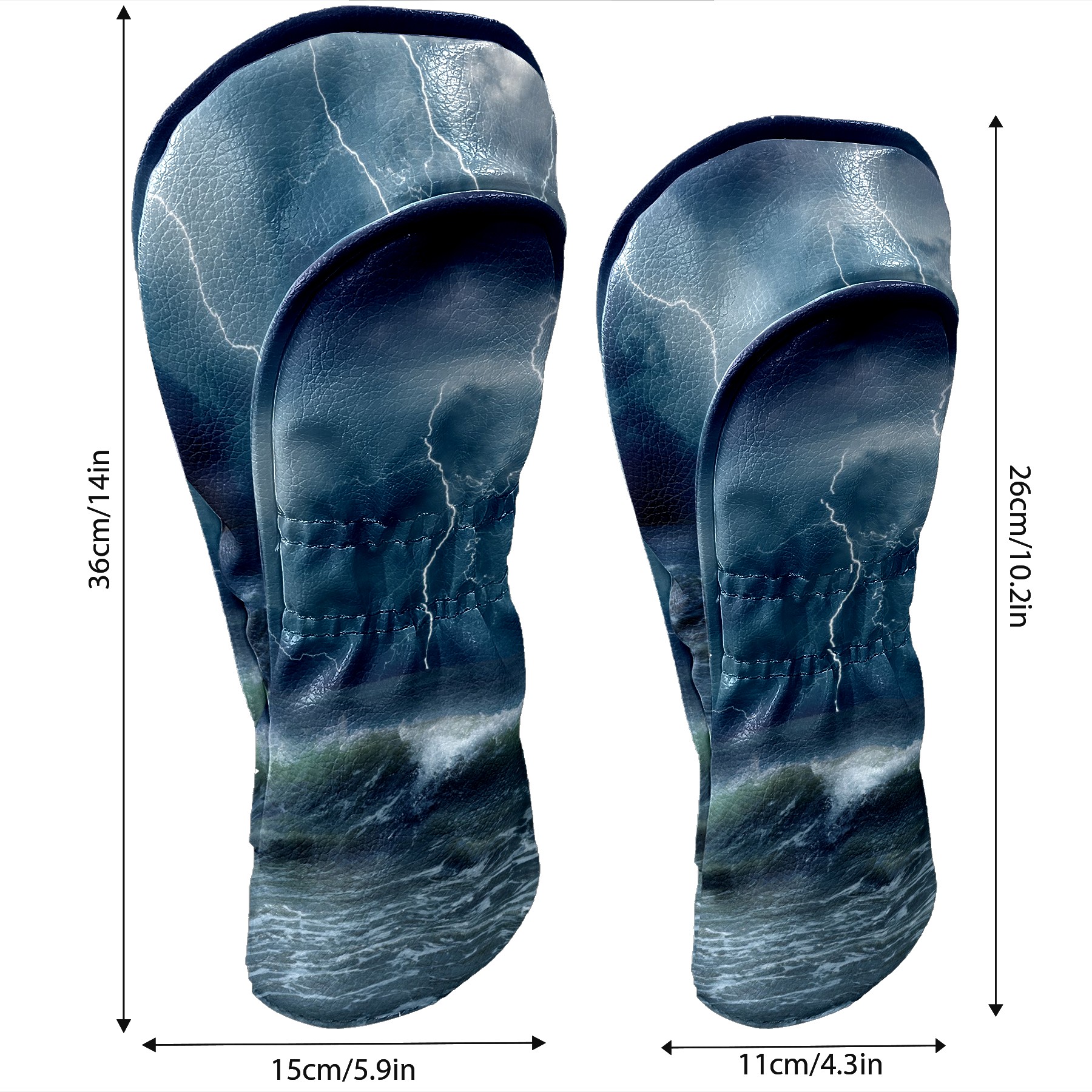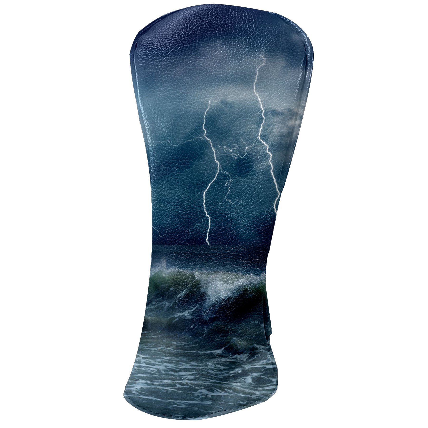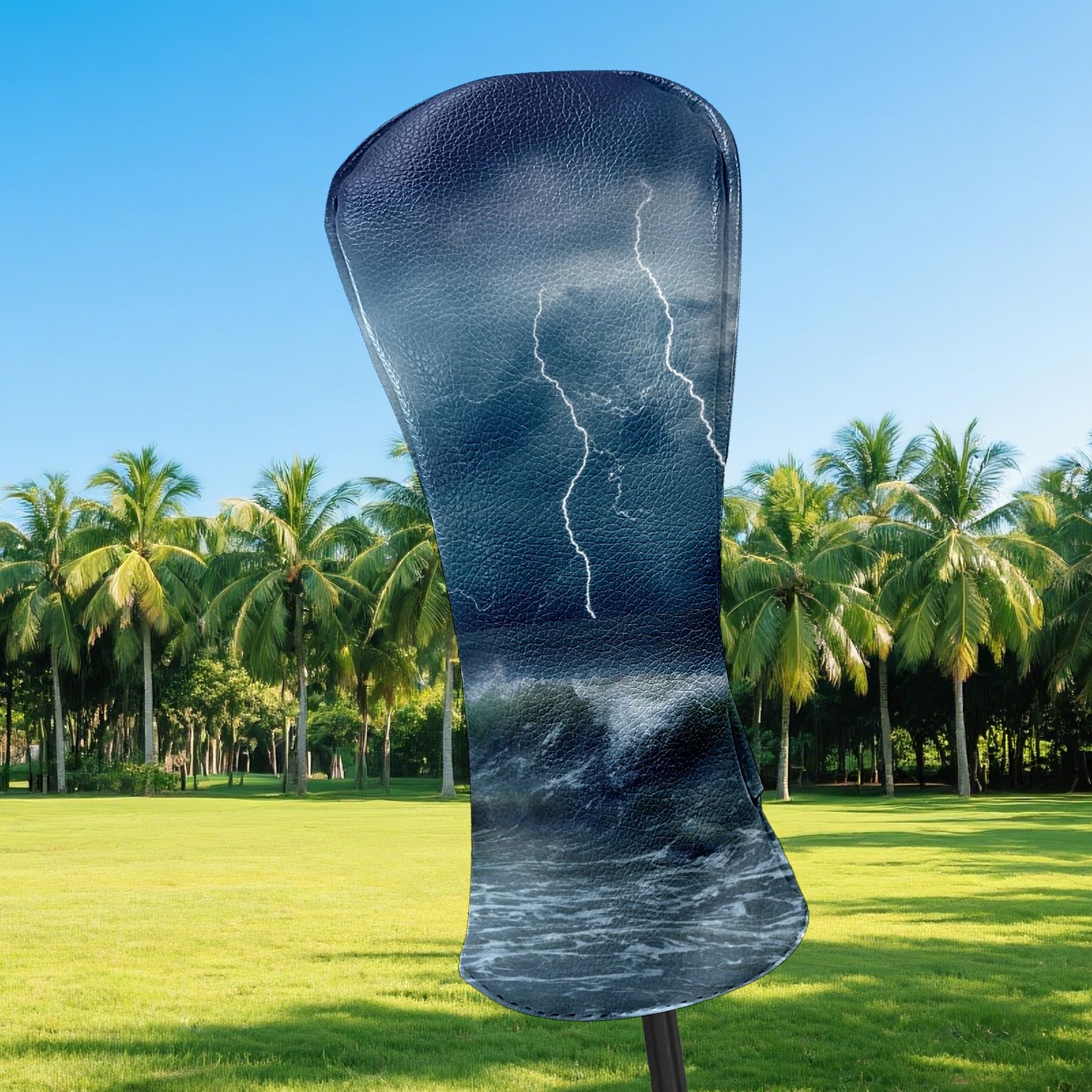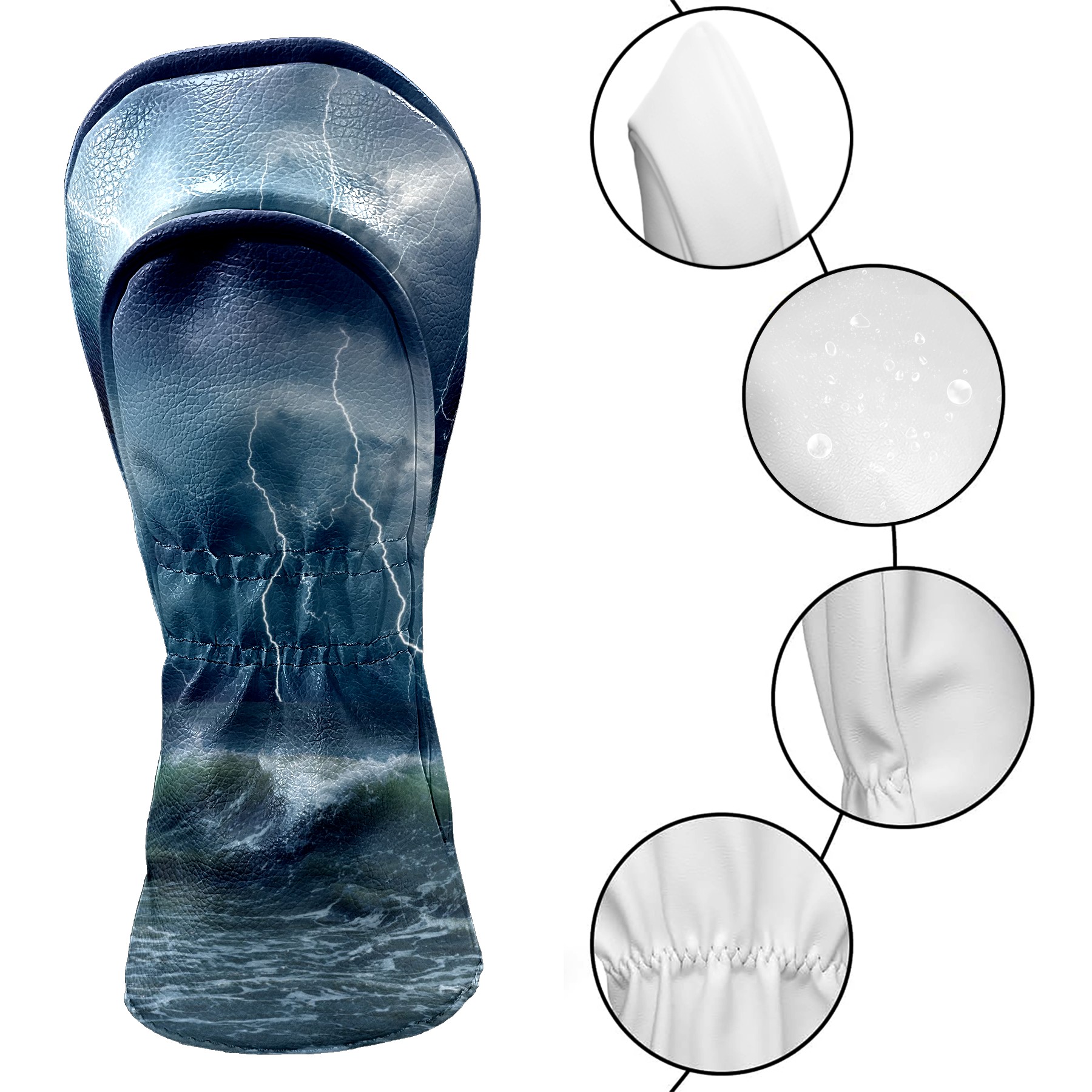Golf Club Covers Lightning Moody Sky Over The Ocean Driver Headcover, Leather Golf Club Head Covers for Driver Fairway Woods Waterproof Golf Headcovers with Anti-Scratch Lining for Men Women
