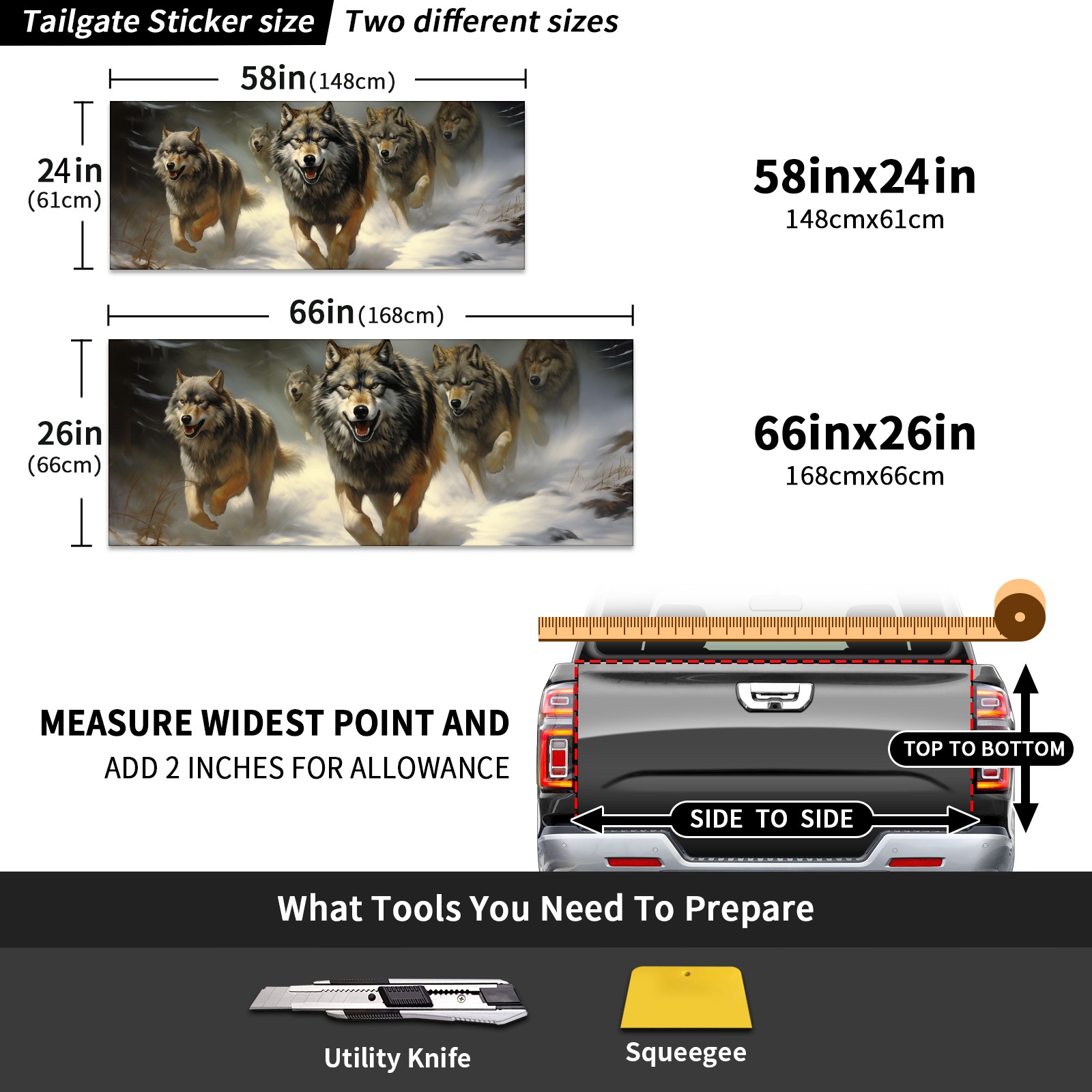 Truck Tailgate Graphics Wraps Decals 58″ x 24″ Grey Wolves Tailgates Stickers for Pickup Trucks Car Rear Gate