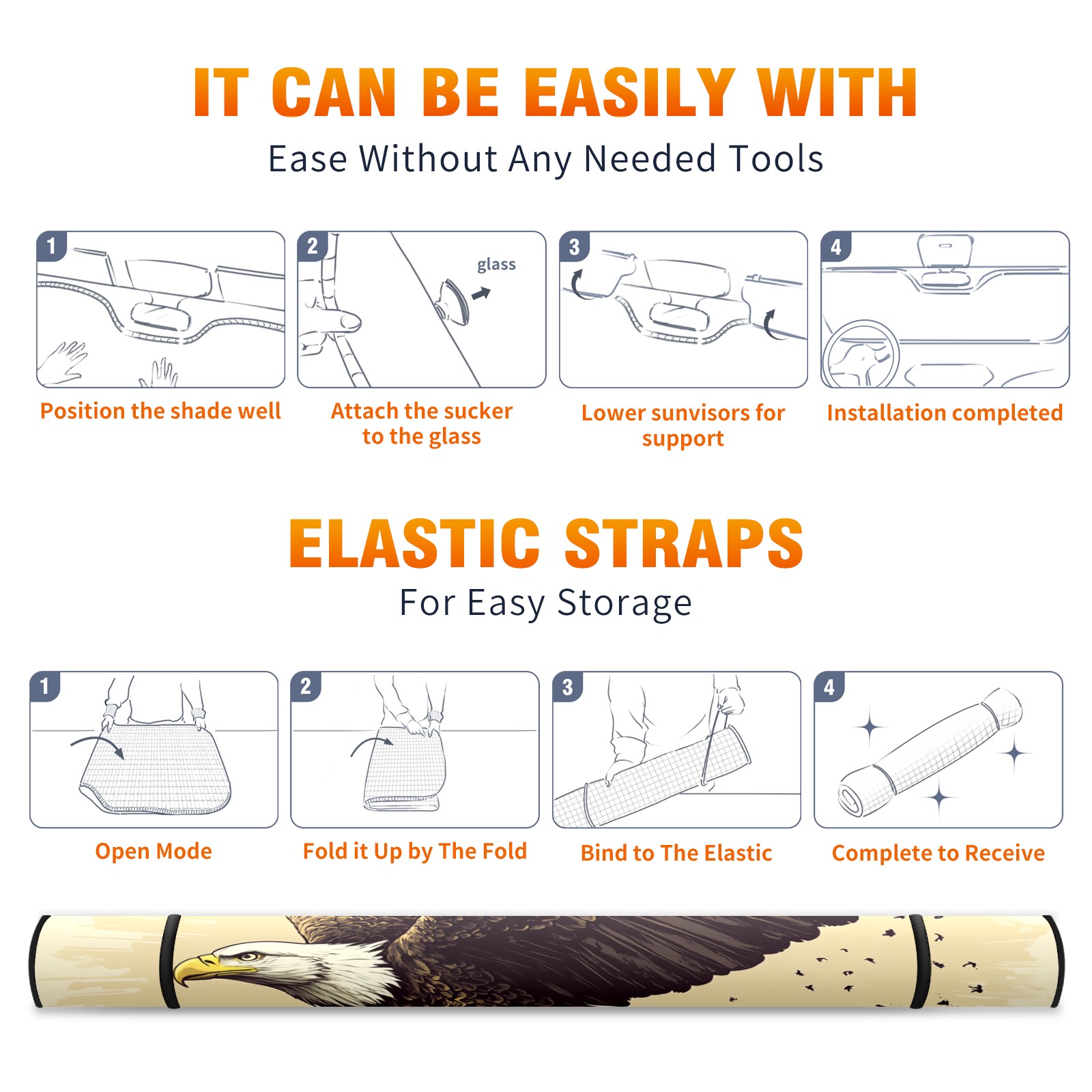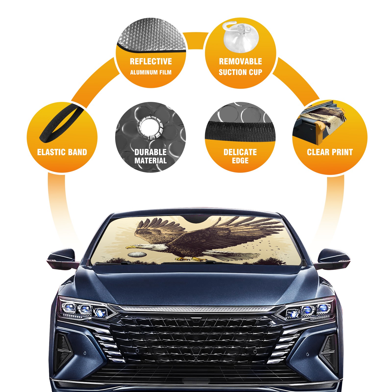 SAVHOQIR Car Sun Shade Foldable Eagle Windshield Sun Shade 55''x30'' Vehicle Front Window Shade Protector for SUV Truck Car Sun Visor Blocks UV Rays