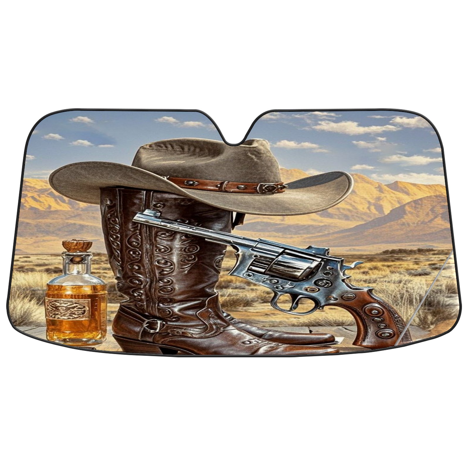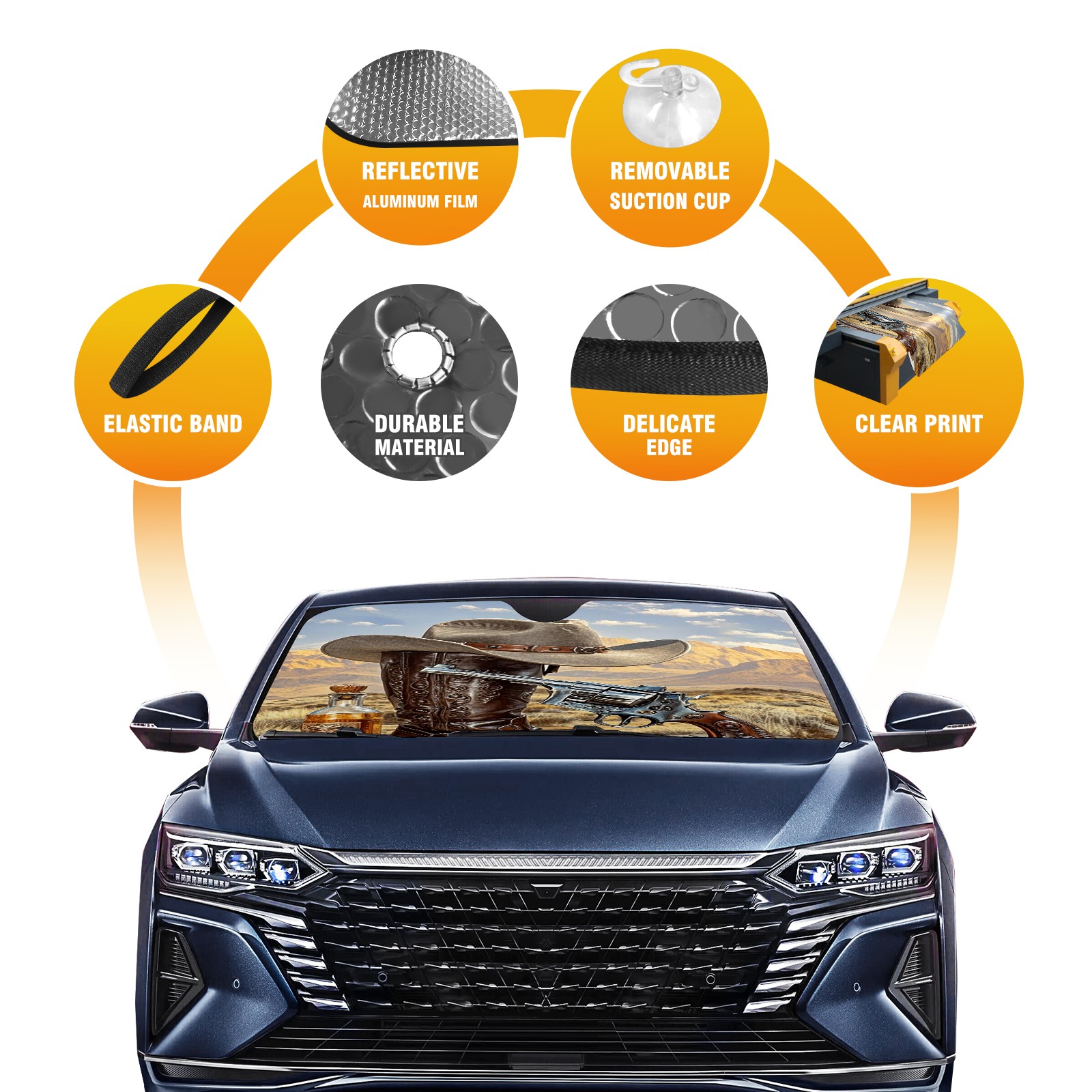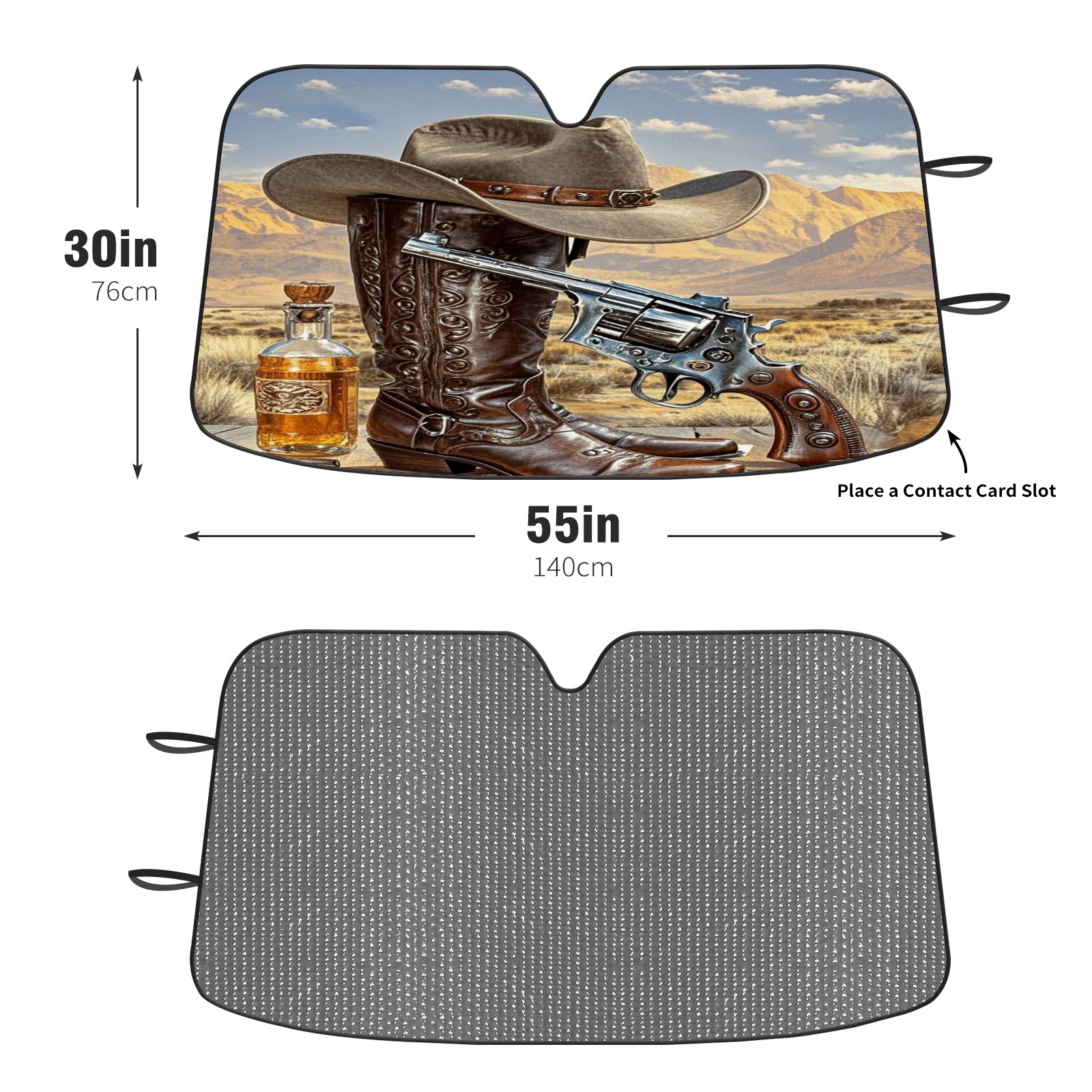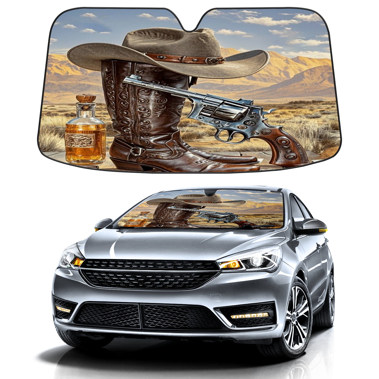 SAVHOQIR Car Sun Shade Foldable Western Cowboy Windshield Sun Shade 55''x30'' Vehicle Front Window Shade Protector for SUV Truck Car Sun Visor Blocks UV Rays