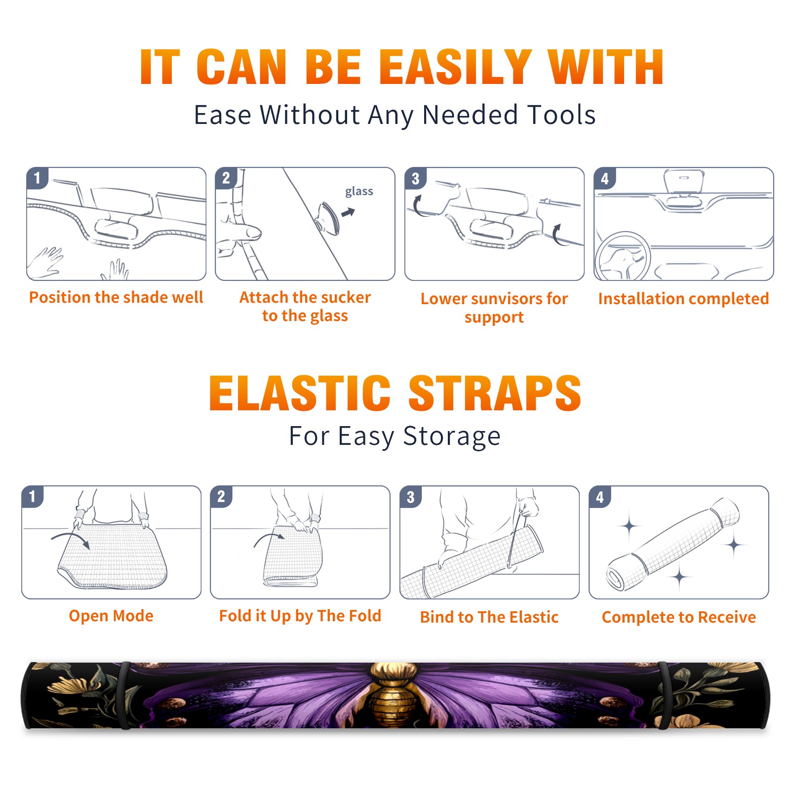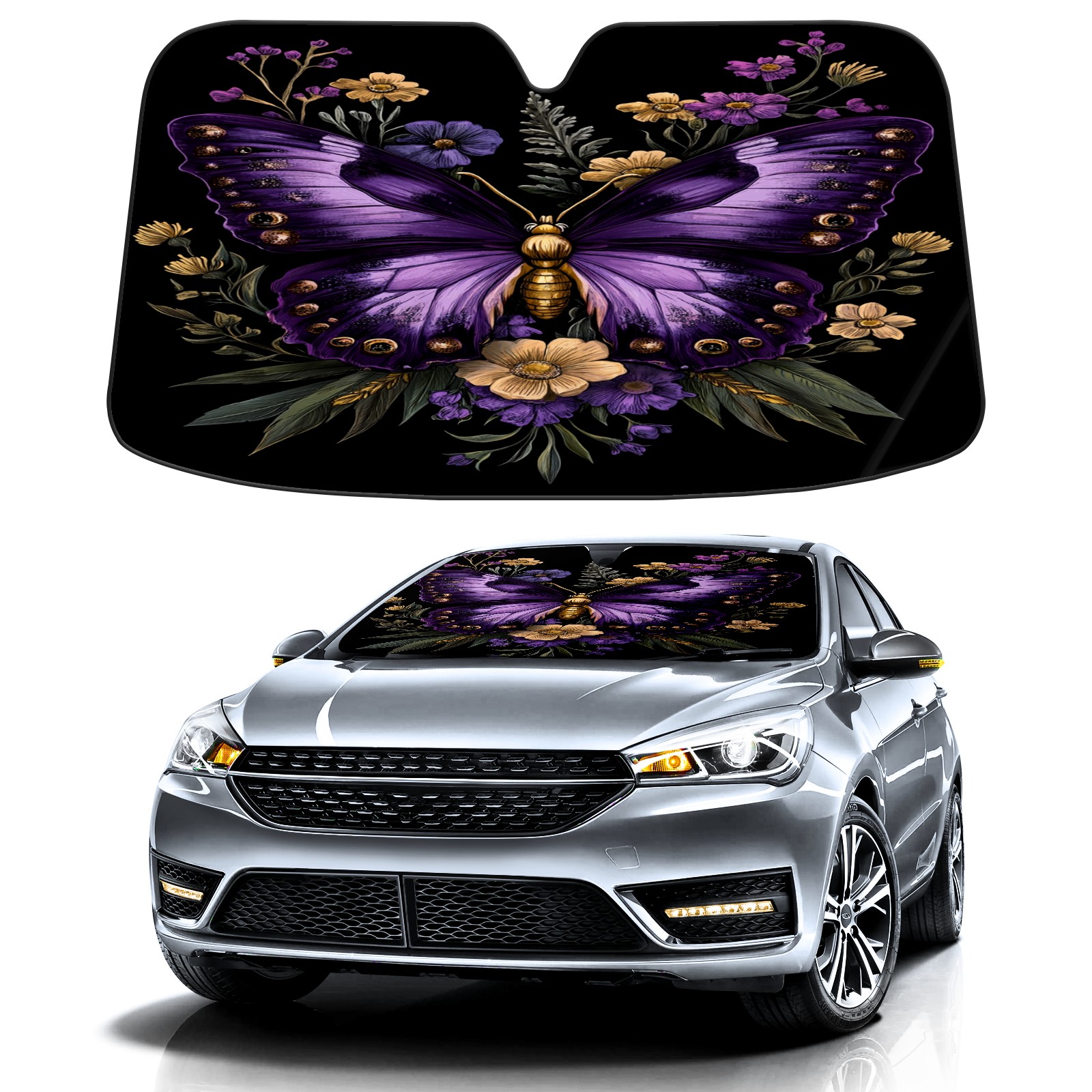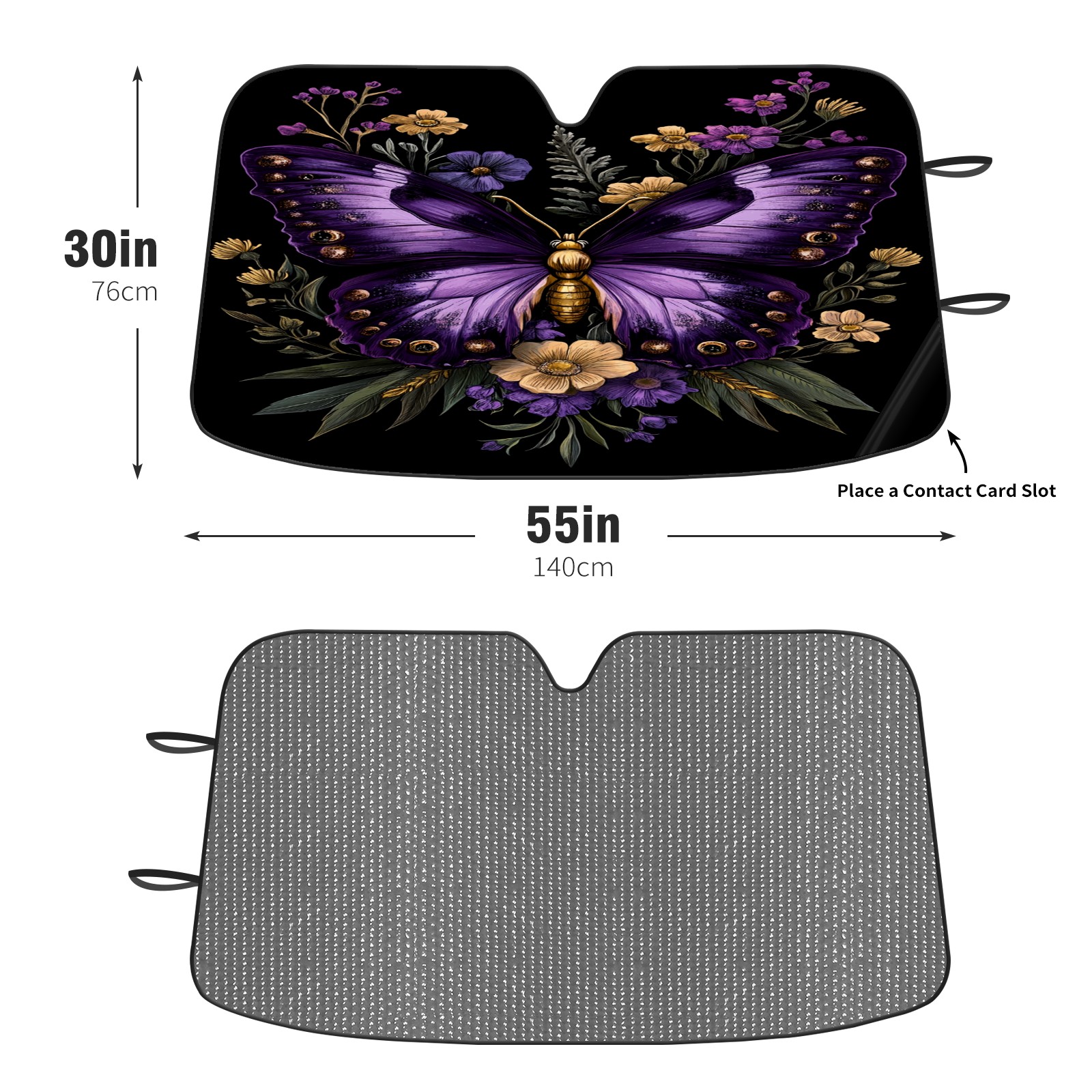 SAVHOQIR Car Sun Shade Foldable Purple Butterfly Windshield Sun Shade 55''x30'' Vehicle Front Window Shade Protector for SUV Truck Car Sun Visor Blocks UV Rays