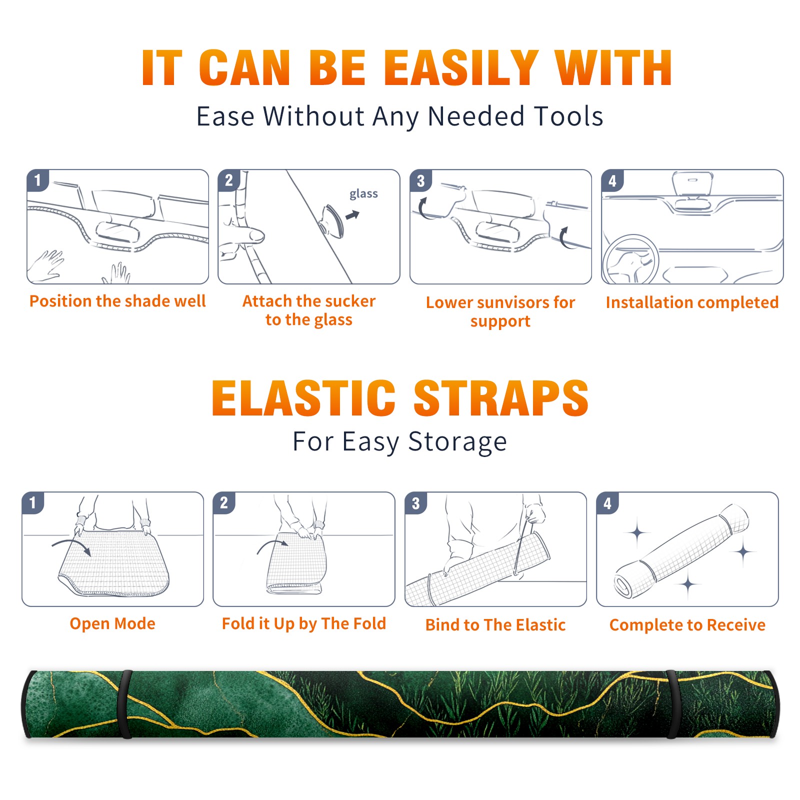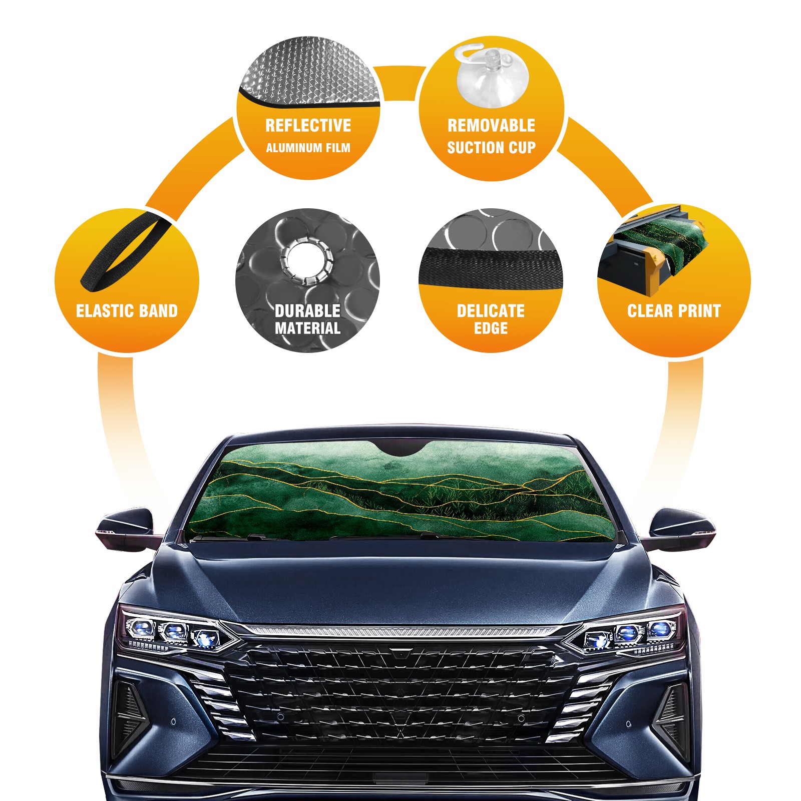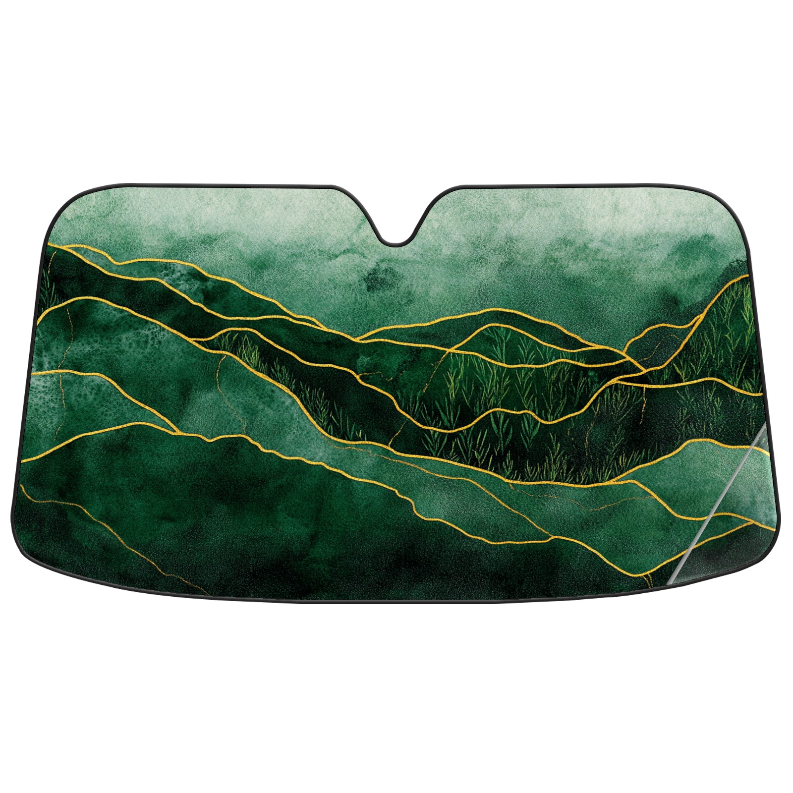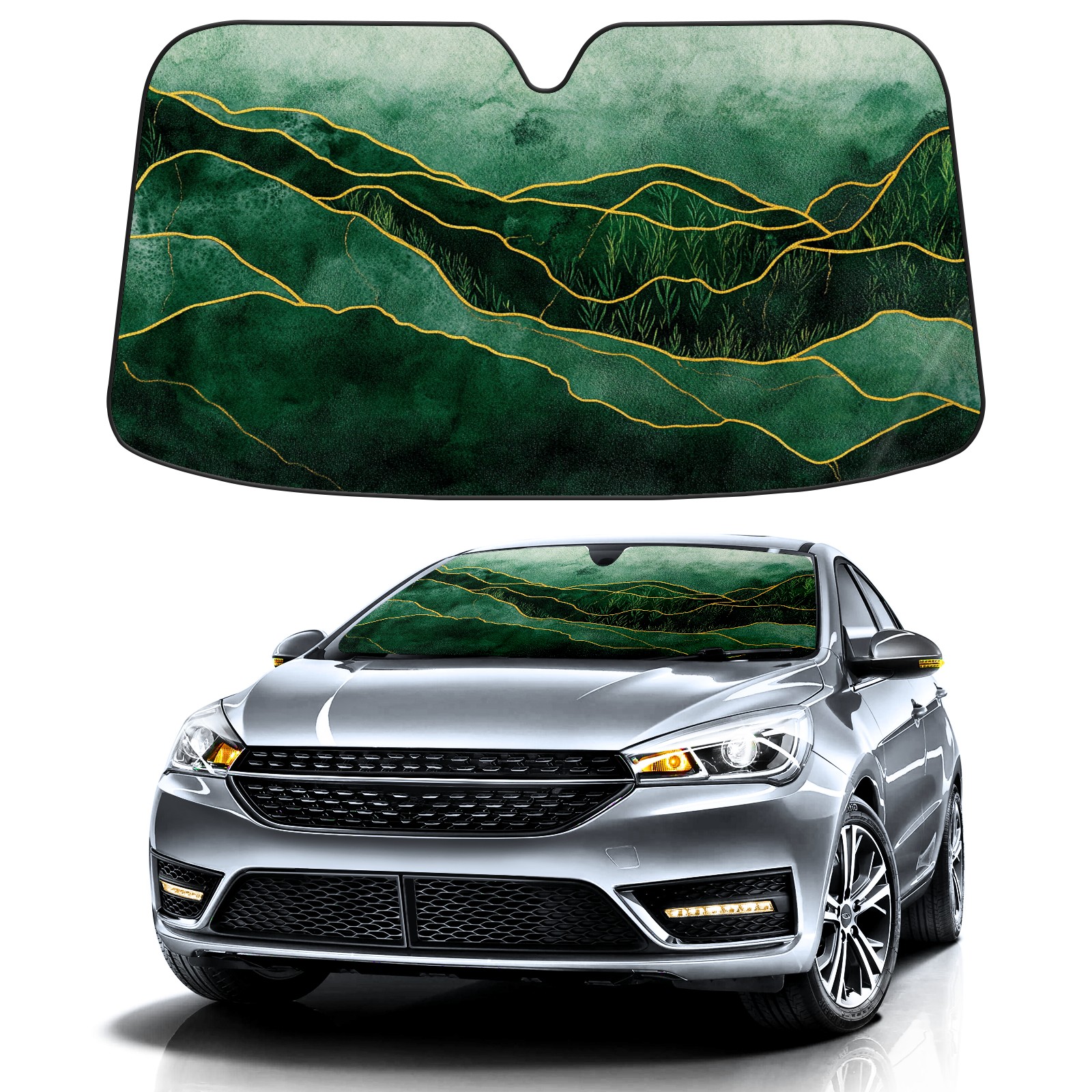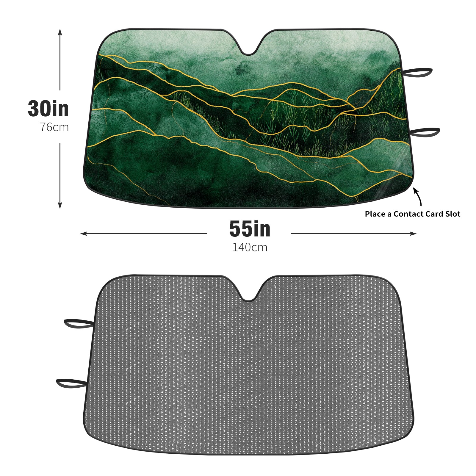 SAVHOQIR Car Sun Shade Foldable Emerald Green Marble Windshield Sun Shade 55''x30'' Vehicle Front Window Shade Protector for SUV Truck Car Sun Visor Blocks UV Rays
