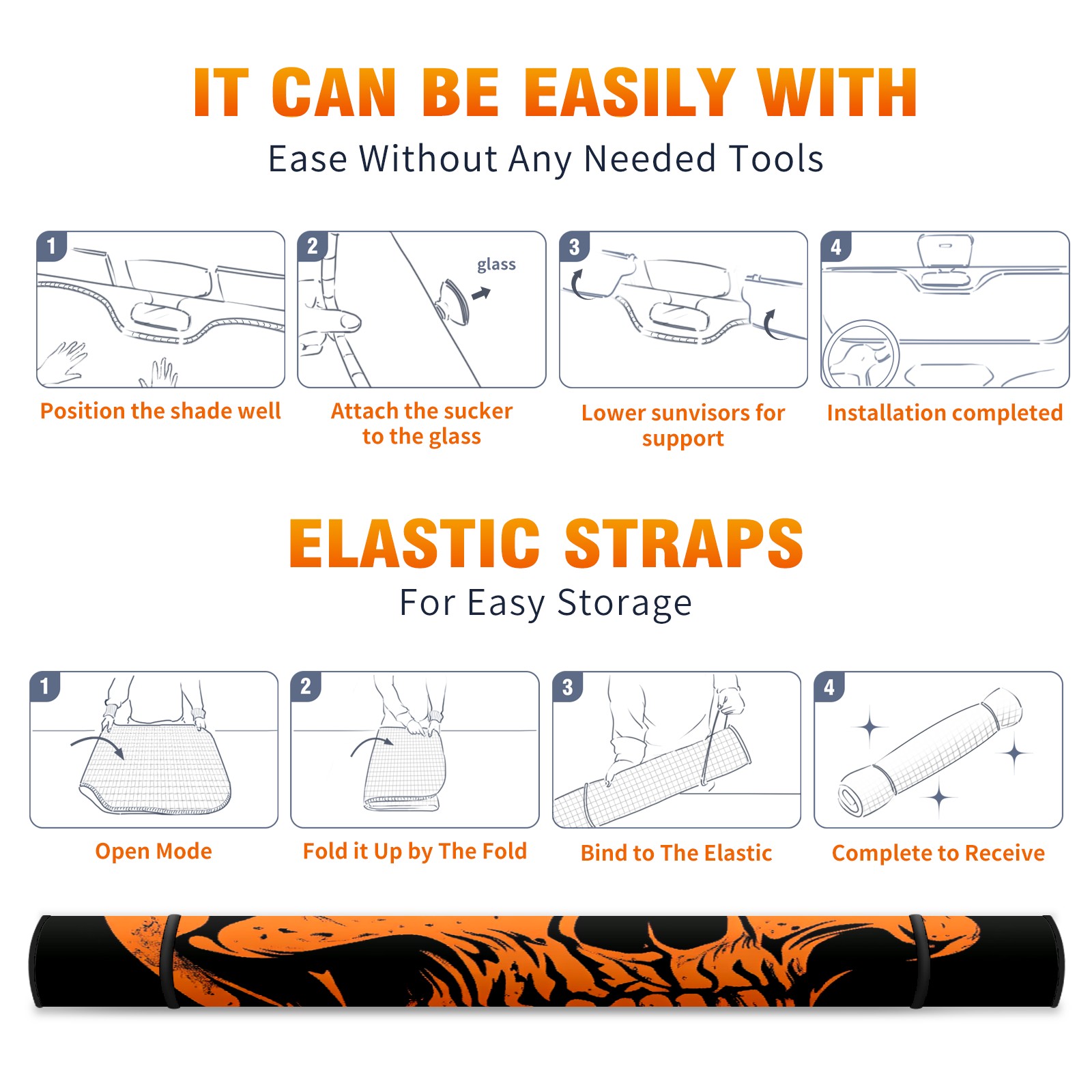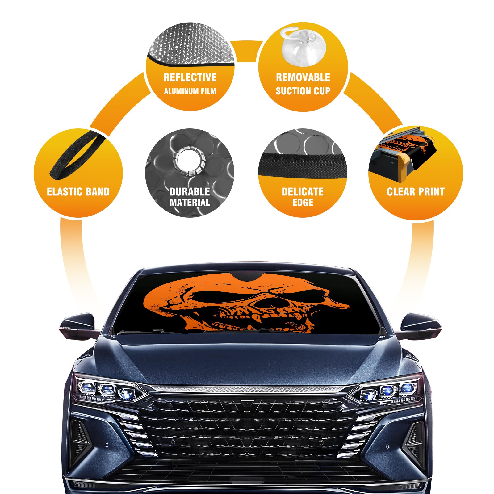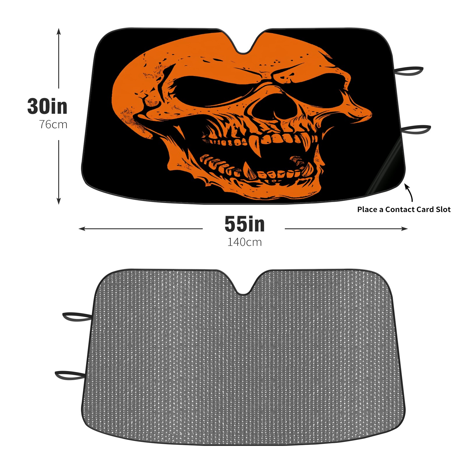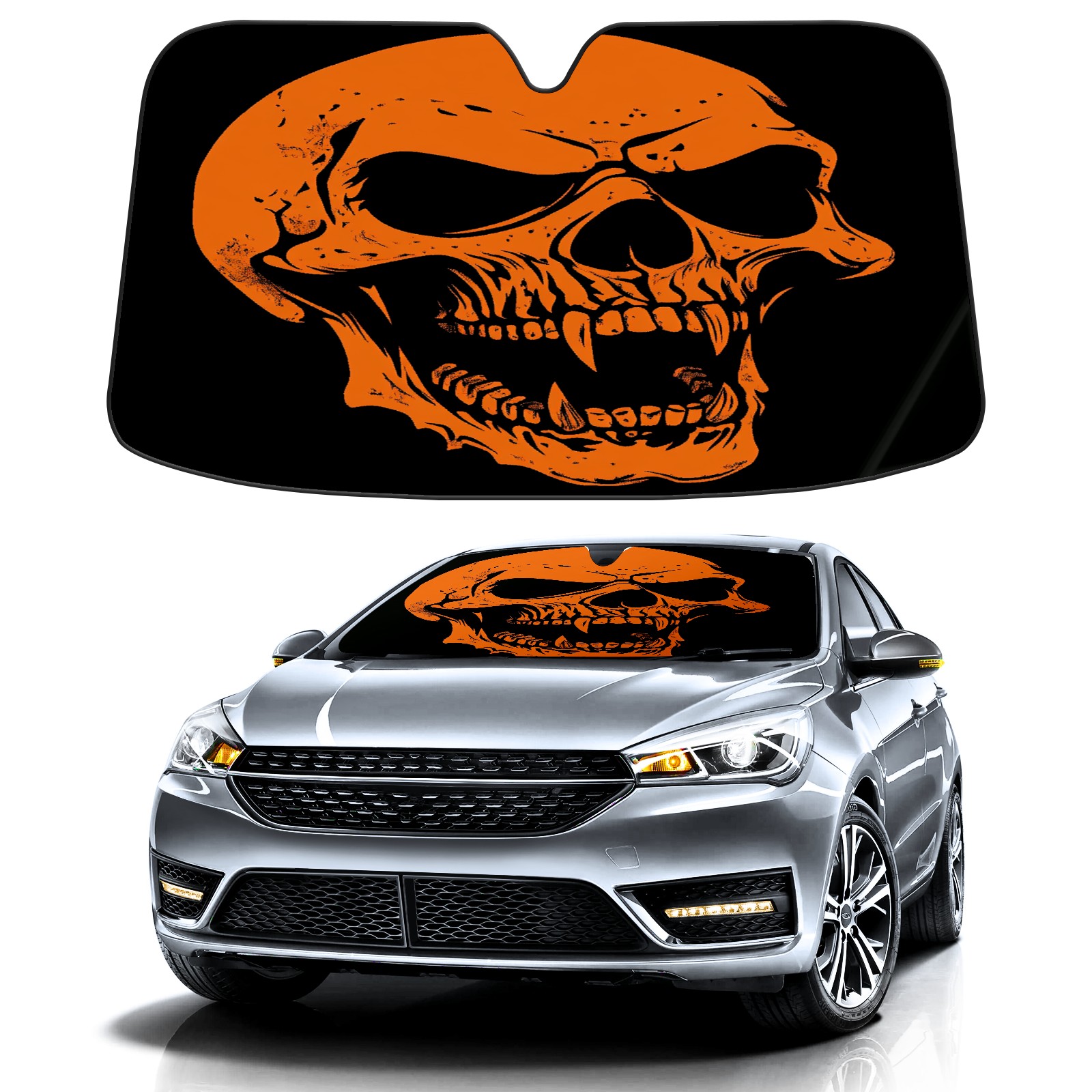SAVHOQIR Car Sun Shade Foldable Scary Skull Orange Windshield Sun Shade 55''x30'' Vehicle Front Window Shade Protector for SUV Truck Car Sun Visor Blocks UV Rays
