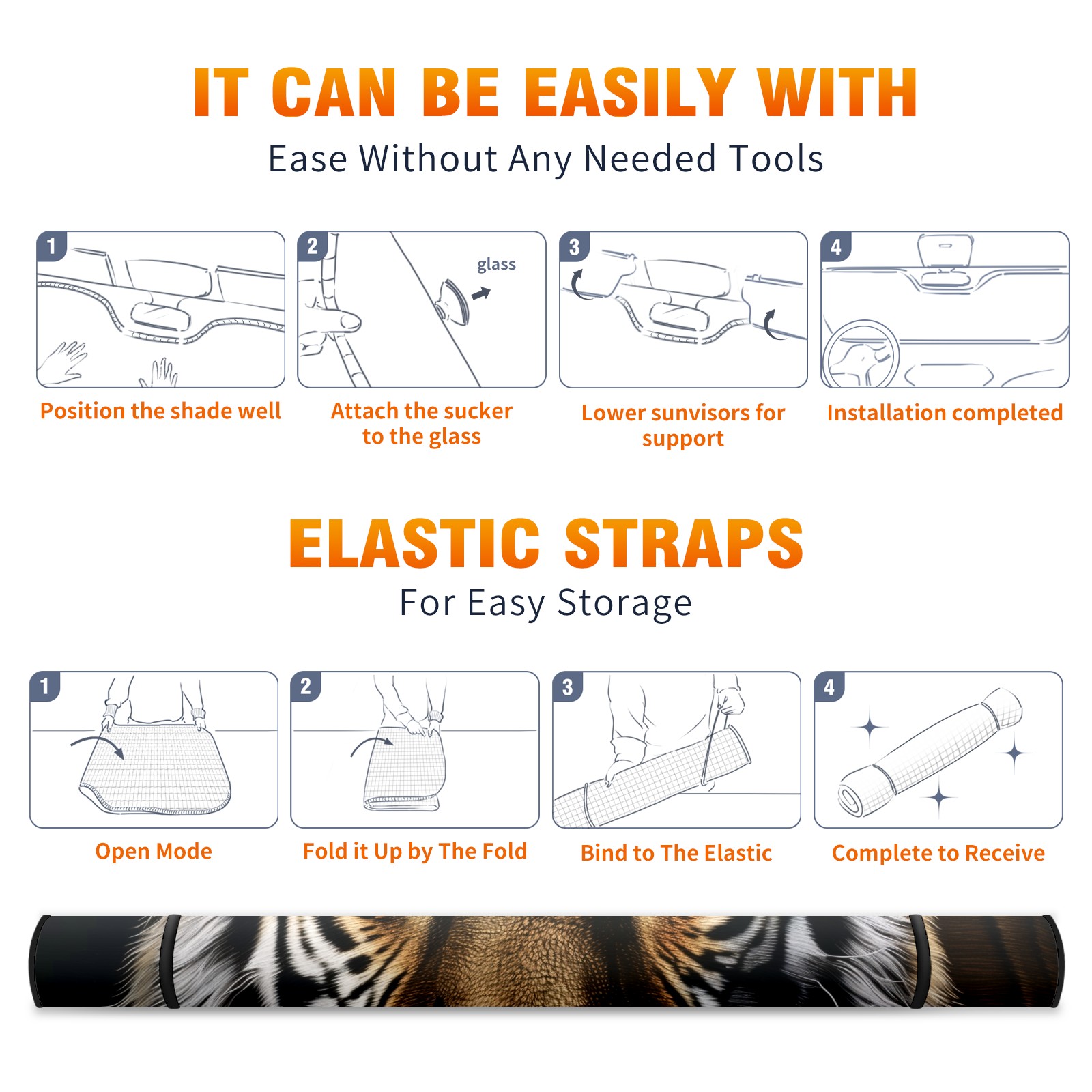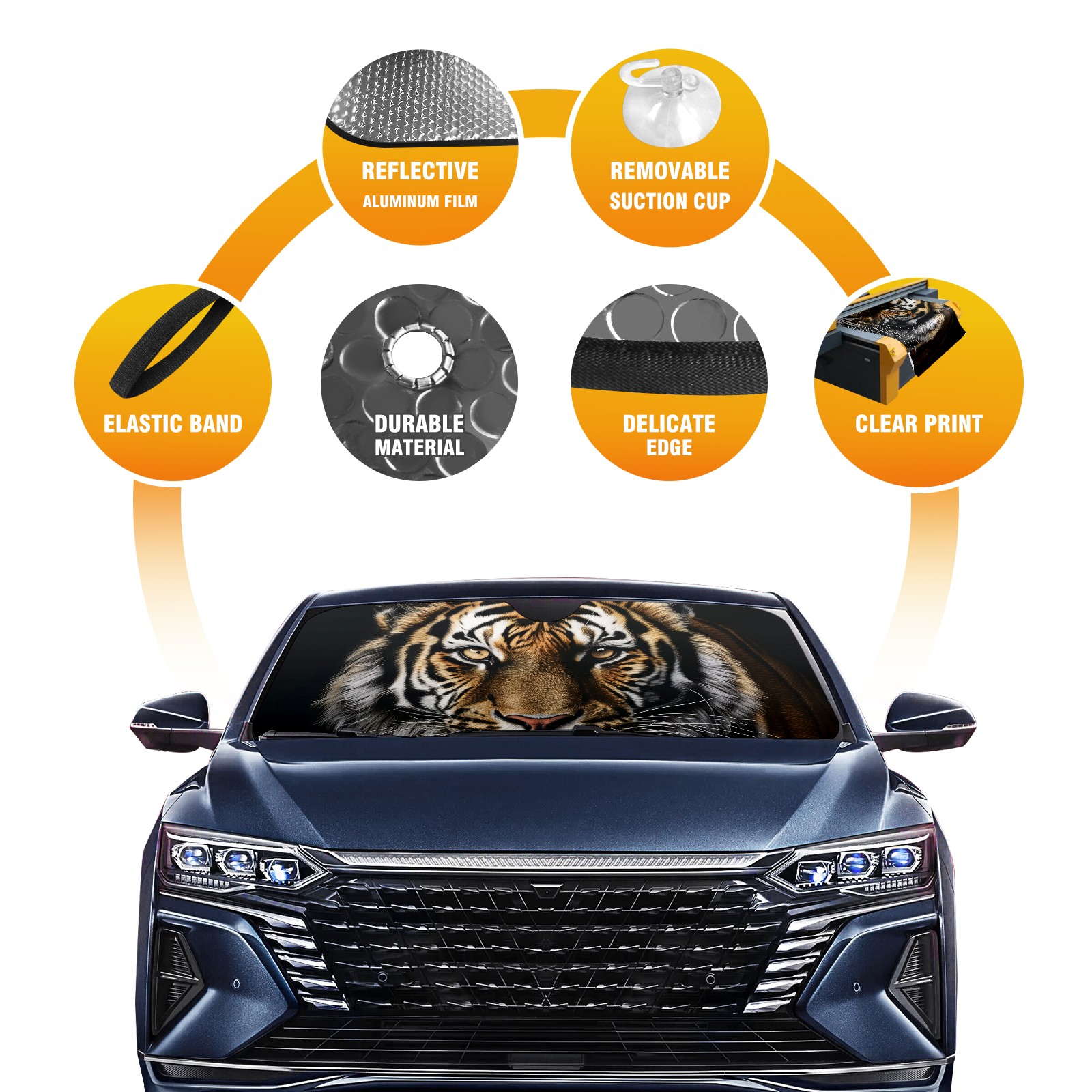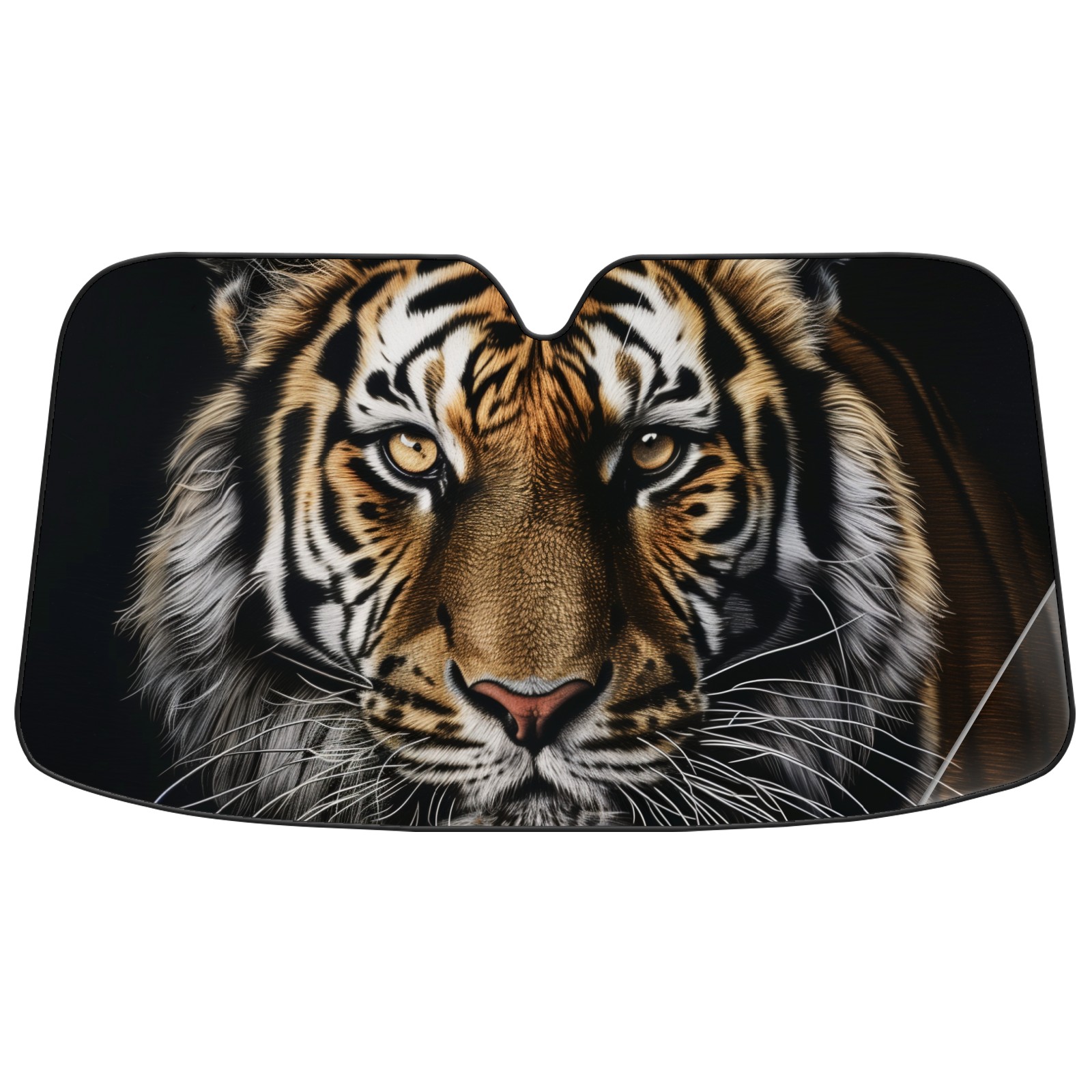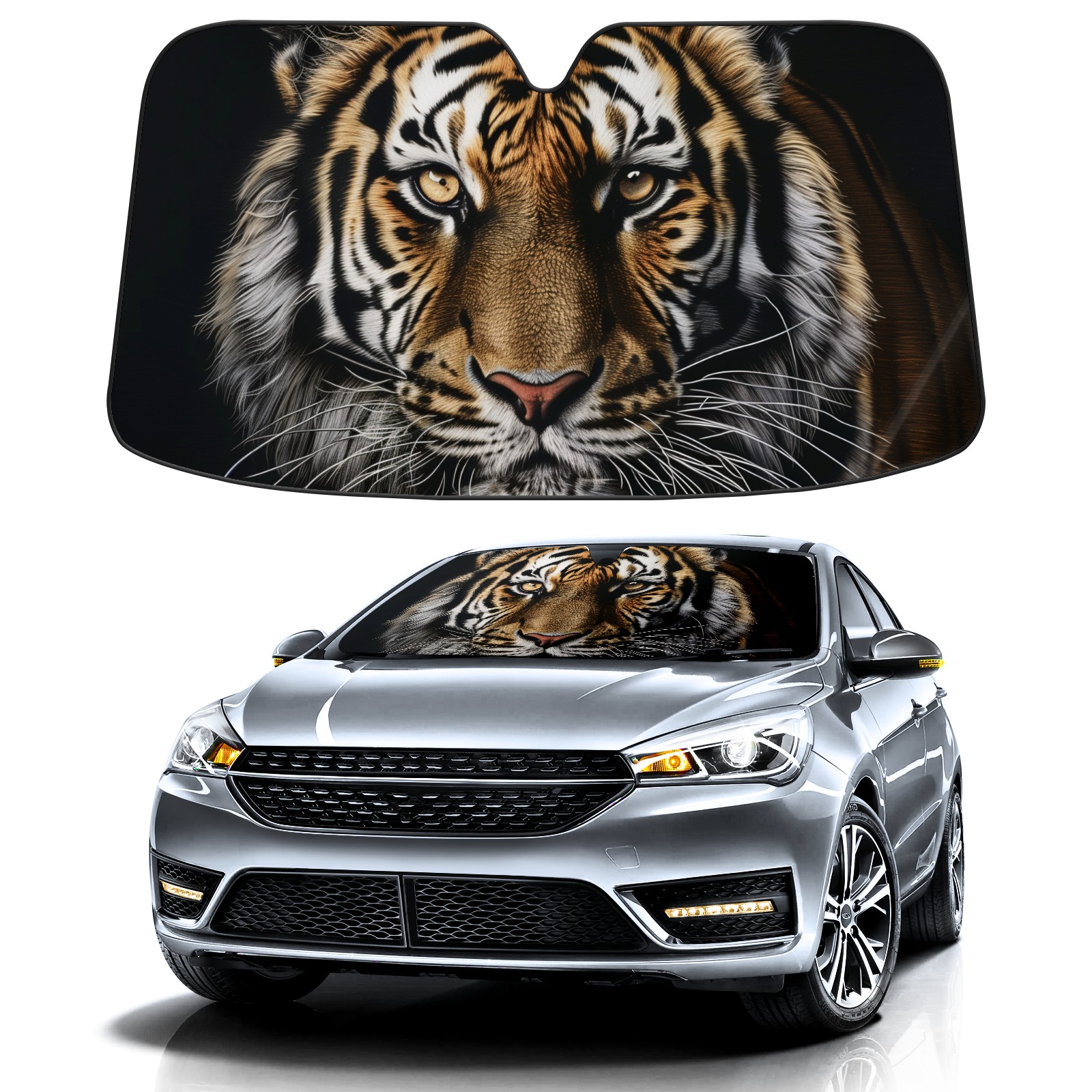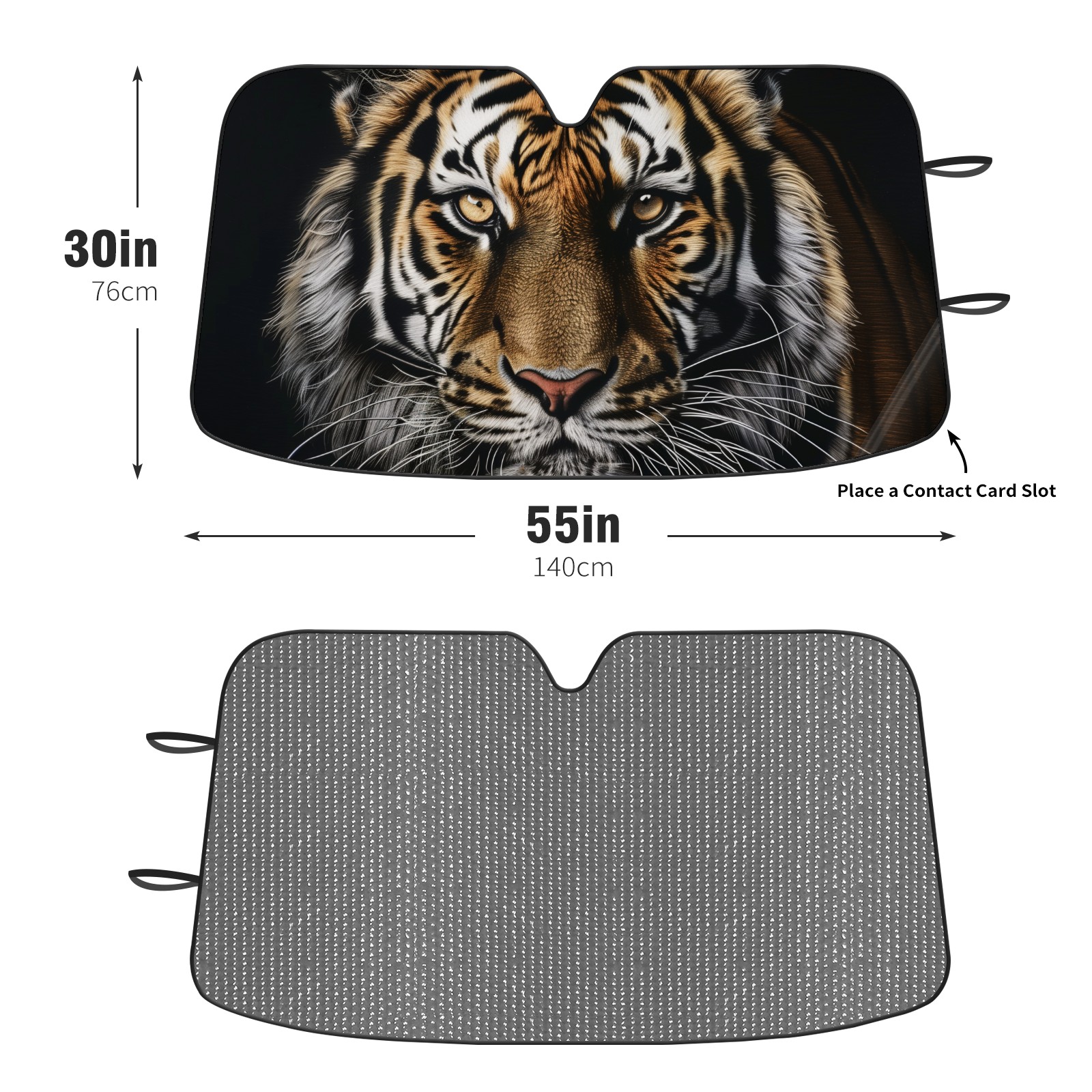 SAVHOQIR Car Sun Shade Foldable Tiger Black Windshield Sun Shade 55''x30'' Vehicle Front Window Shade Protector for SUV Truck Car Sun Visor Blocks UV Rays