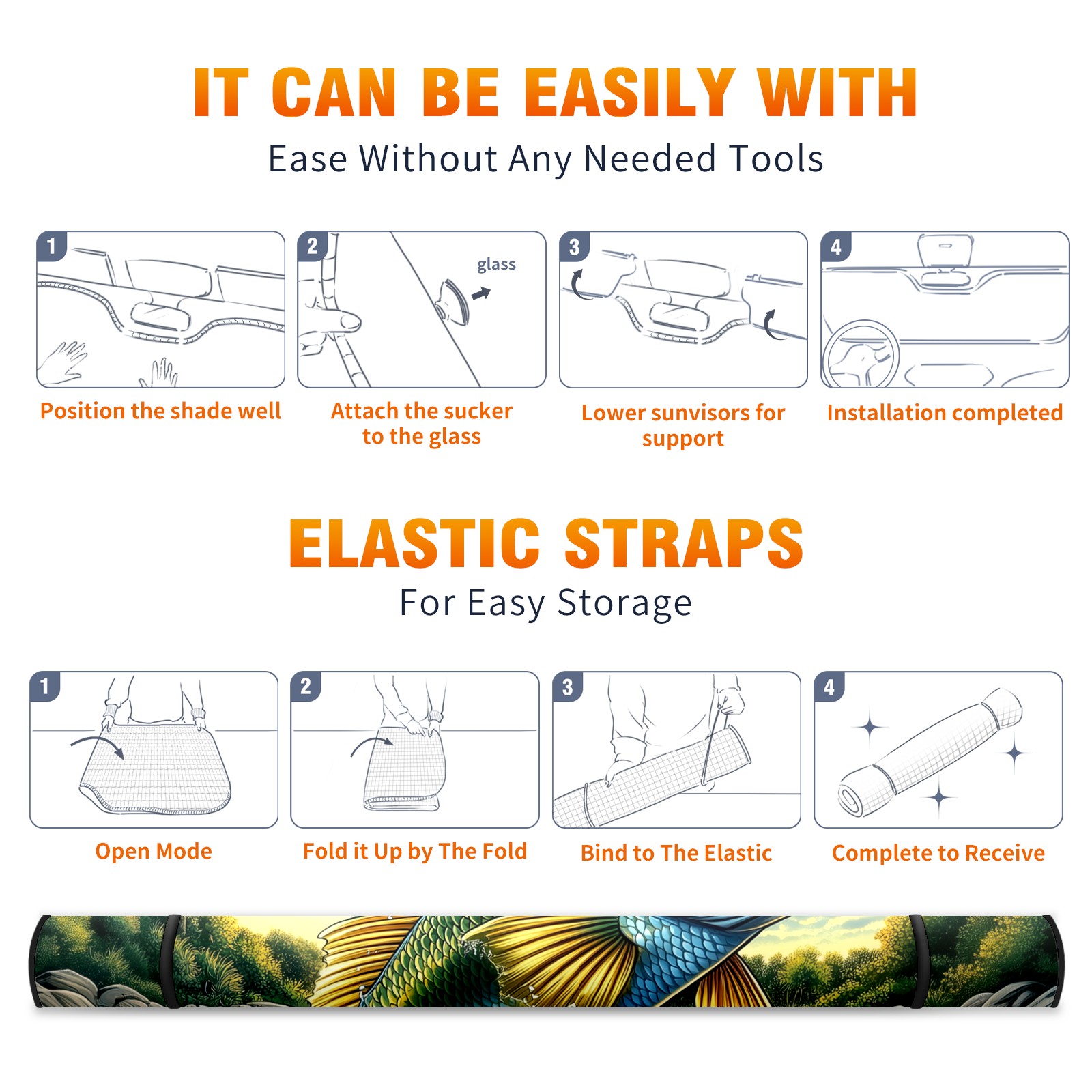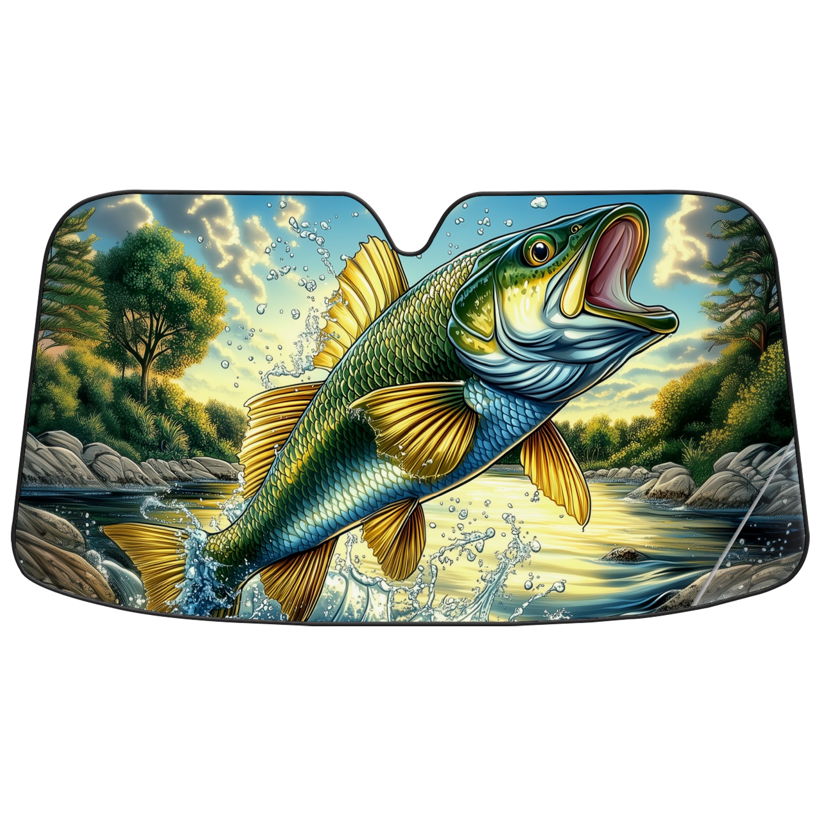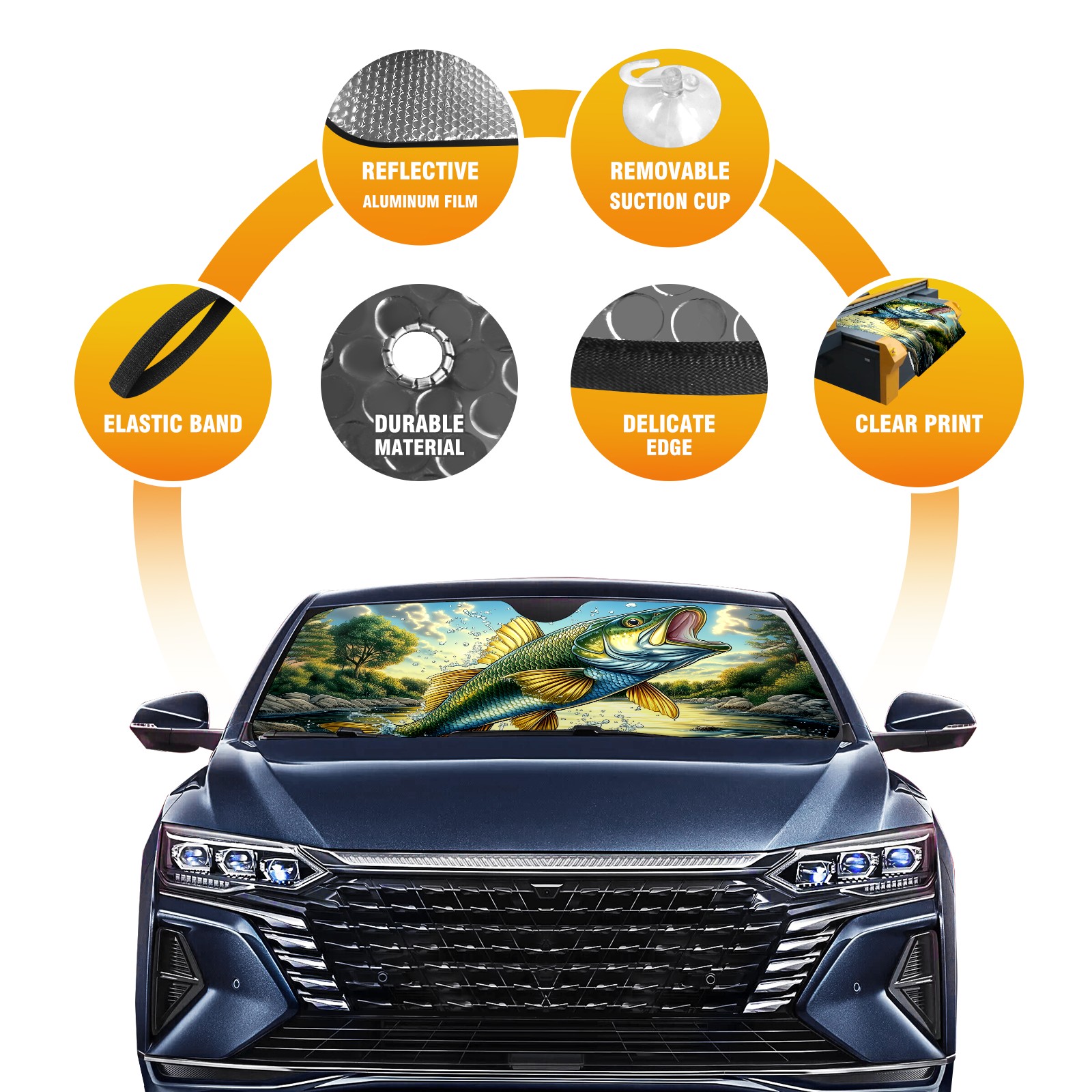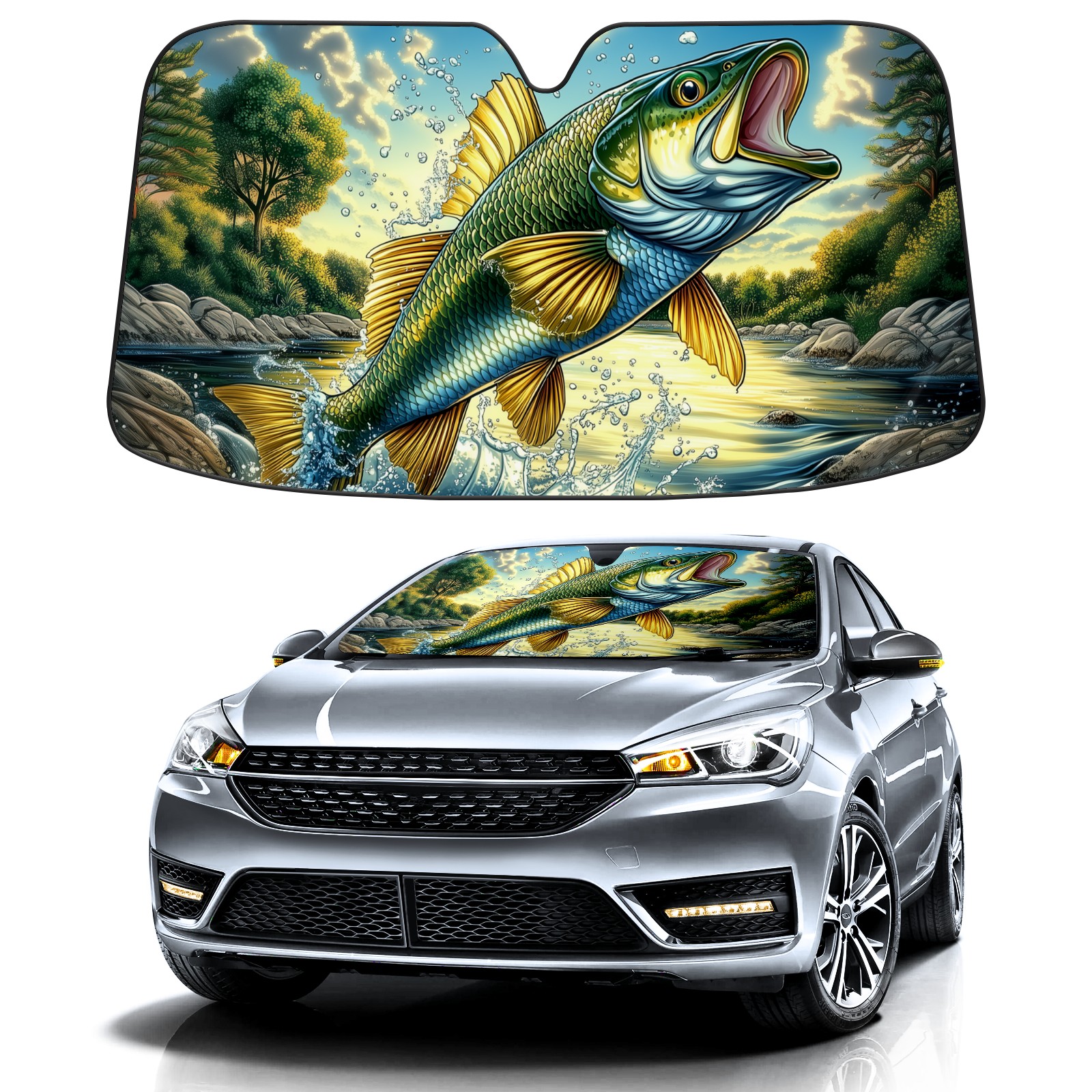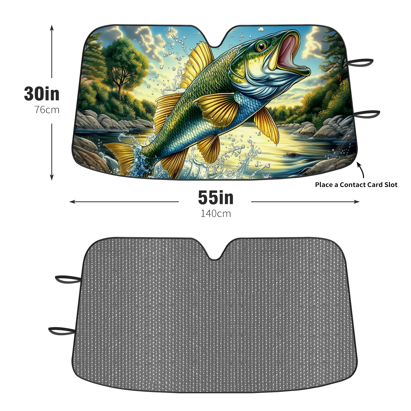 SAVHOQIR Car Sun Shade Foldable Largemouth Bass Fish Windshield Sun Shade 55''x30'' Vehicle Front Window Shade Protector for SUV Truck Car Sun Visor Blocks UV Rays