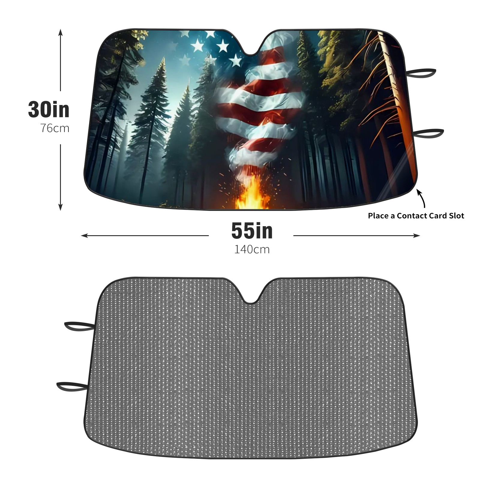 SAVHOQIR Car Sun Shade Foldable Flag Forest Bonfire Windshield Sun Shade 55''x30'' Vehicle Front Window Shade Protector for SUV Truck Car Sun Visor Blocks UV Rays