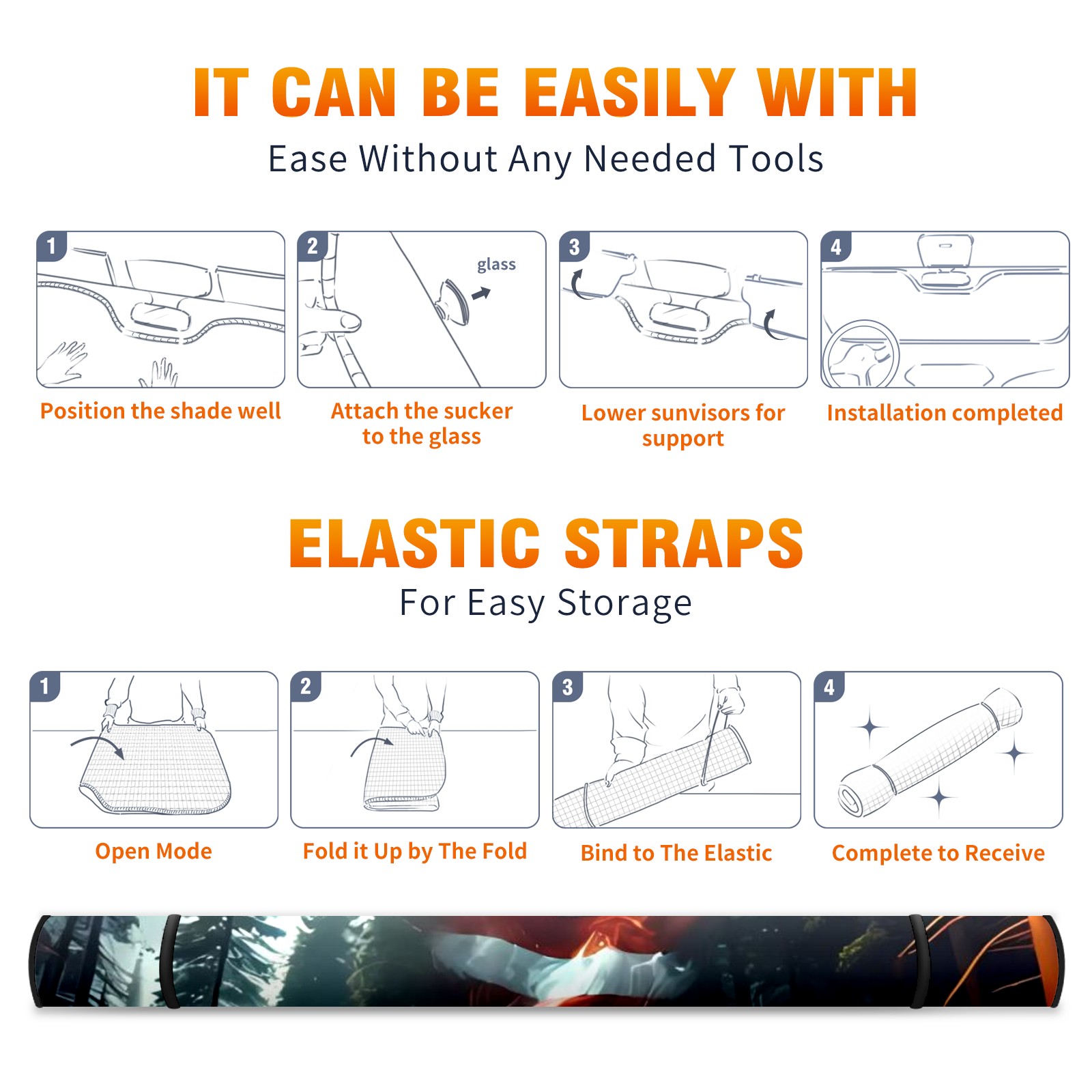 <p><b>Foldable Car Sun Shade for Windshield | UV Protection &amp; Heat Blocking | Universal Windshield Sun Shade Fit for Cars,Trucks,SUVs</b></p> <p><b>Reflective Aluminum Core</b></p> <p>The 3-layer construction (aluminum foil + double-layer bubble + 420D polyester) blocks UV rays and keeps the temperature of the car down compared to exposed vehicles on hot days.</p> <p><b>Electronics &amp; Interior Safeguard</b></p> <p>This car sunshade for windshield offers excellent reflection, preventing LCD screen glare, GPS malfunctions, and leather upholstery cracks caused by prolonged solar exposure.</p> <p><b>Wide Compatibility for Various Vehicle Types</b></p> <p>Crafted at 55"L x 30"W (140x76 cm), this windshield sunshade is designed to fit most cars, SUVs, and trucks, ensuring full coverage without adding bulk. Our UV-resistant and tear-resistant car sunshade is easy to install without tools. Its foldable design makes it convenient to adjust and store, taking up minimal space in your vehicle.</p> <p><b>Ideal For</b></p> <p>Daily commuters needing heat reduction from a car sunshade for windshield.</p> <p>RV and overlanding enthusiasts requiring sturdy&nbsp;front windshield sunshades.</p> <p>Luxury car owners need to prevent the fading of the car's interior.</p>