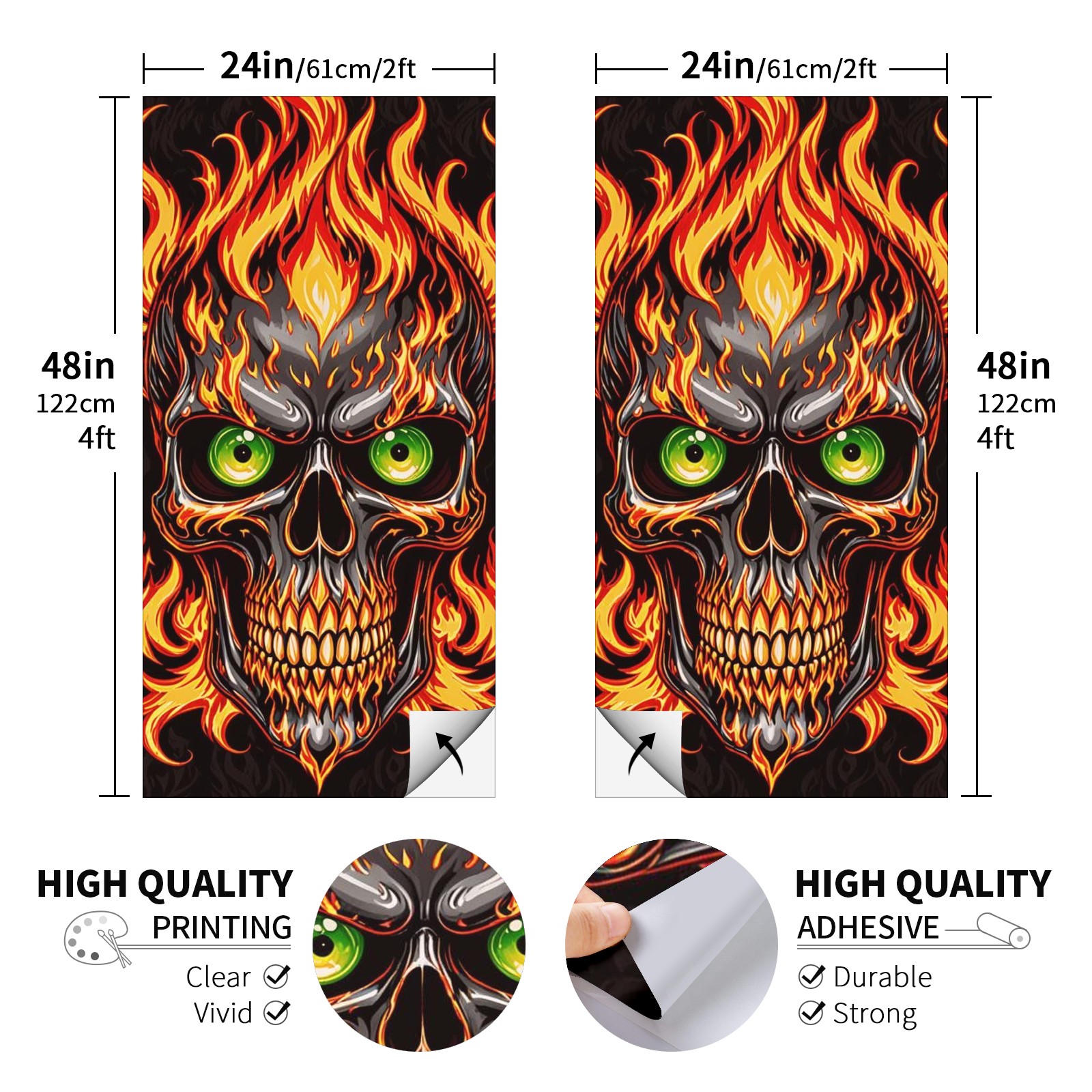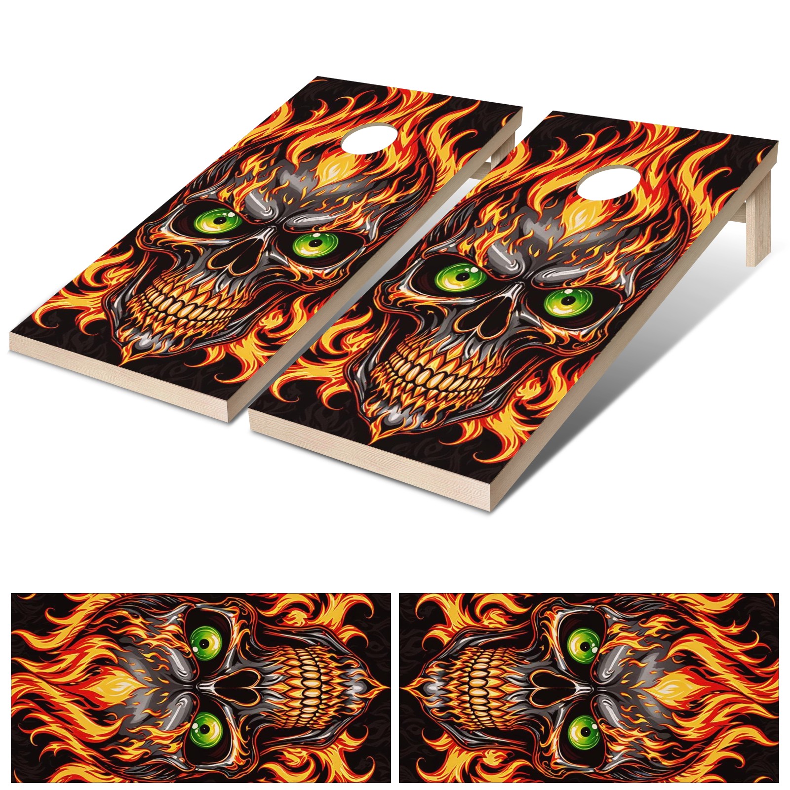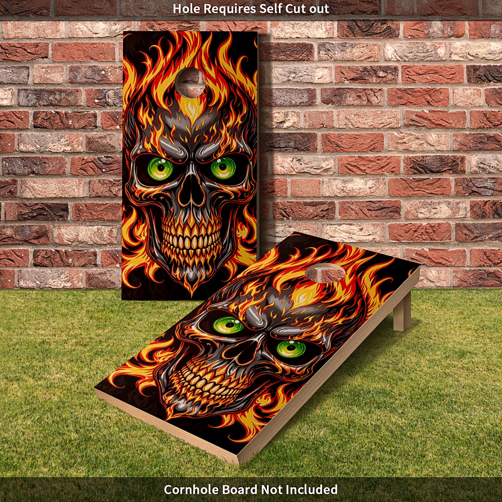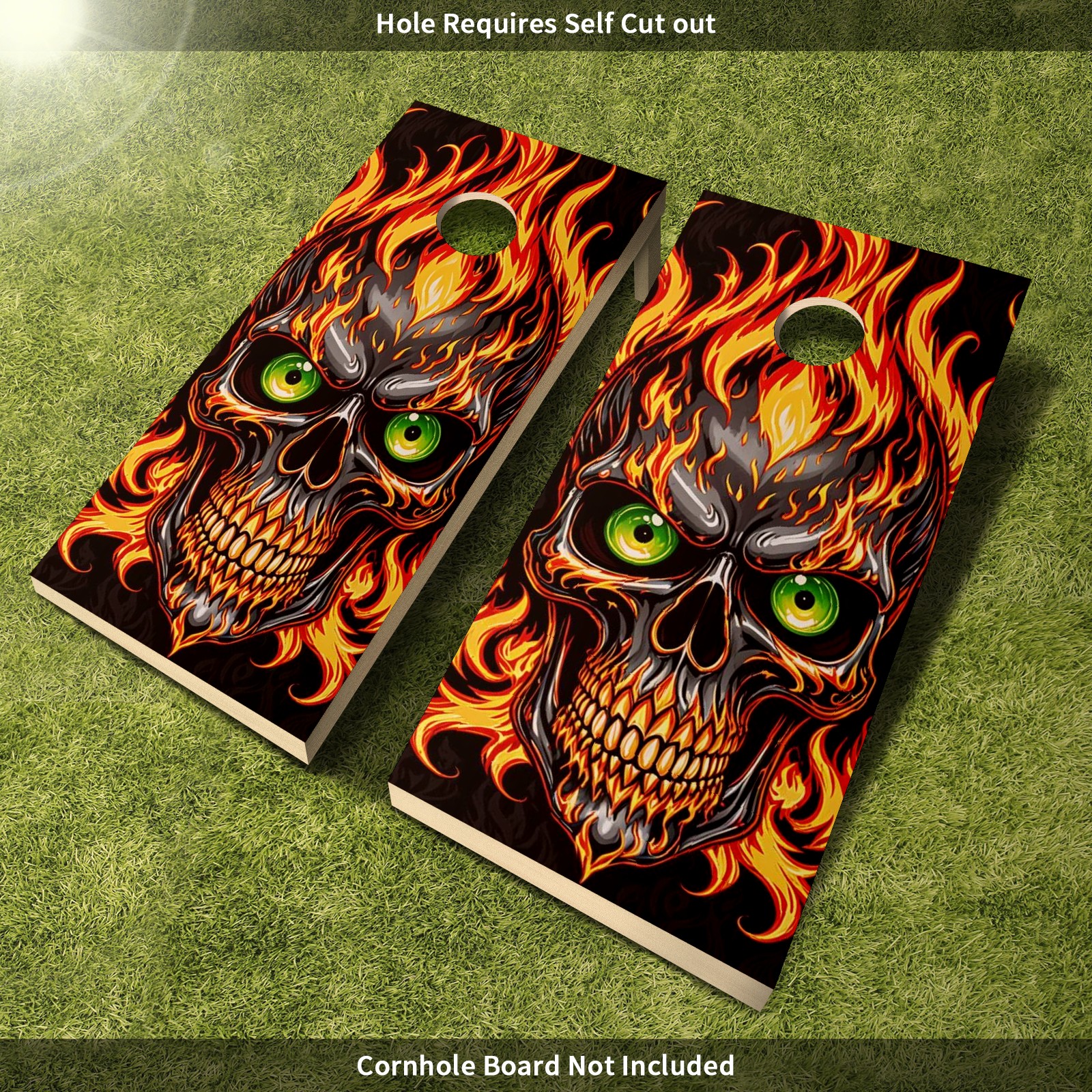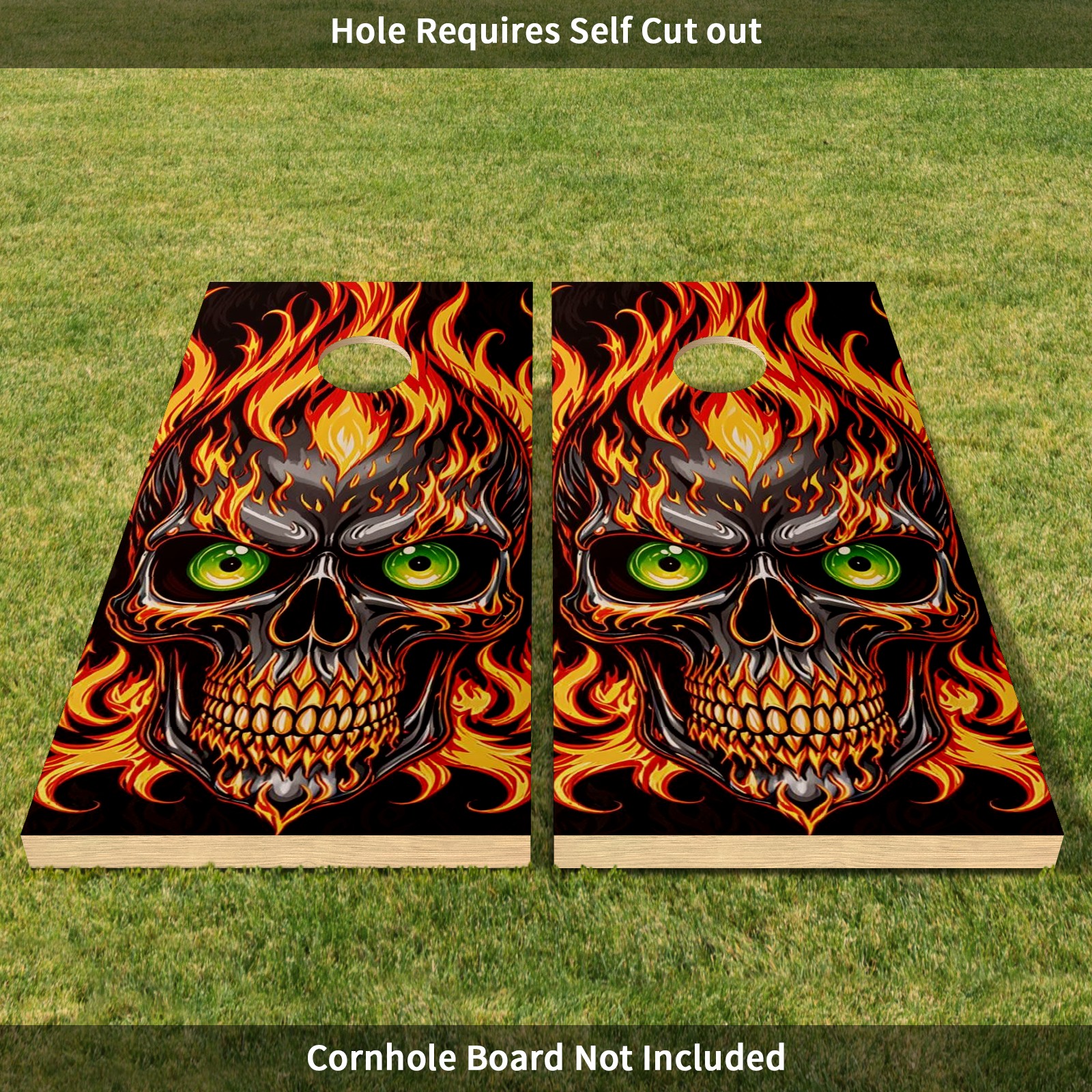 Cornhole Board Wraps Decals 2'x4' Gothic Flame Skull Outdoor Bean Bag Toss Game Graphic Wraps Vinyl Skin Stickers For Cornhole Boards
