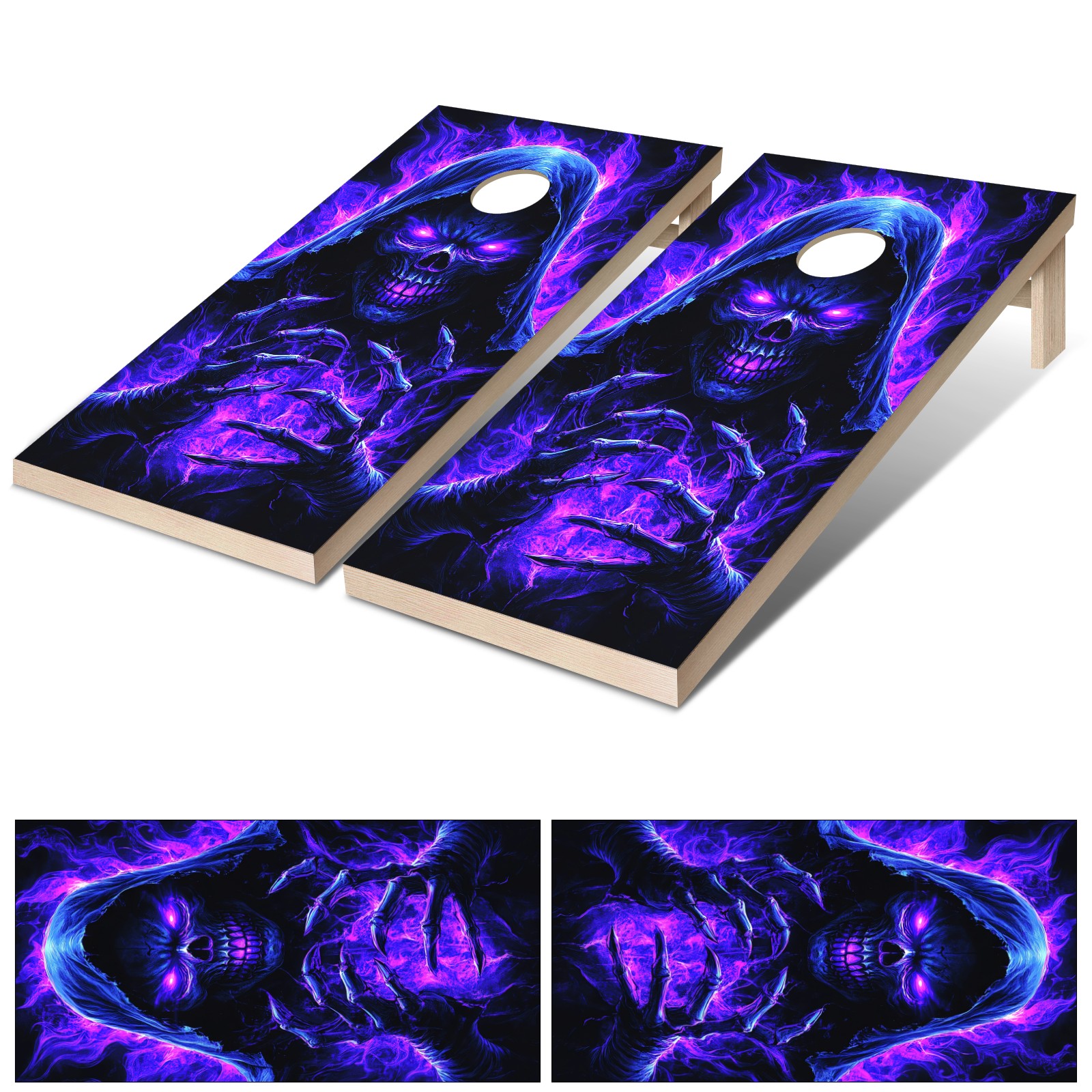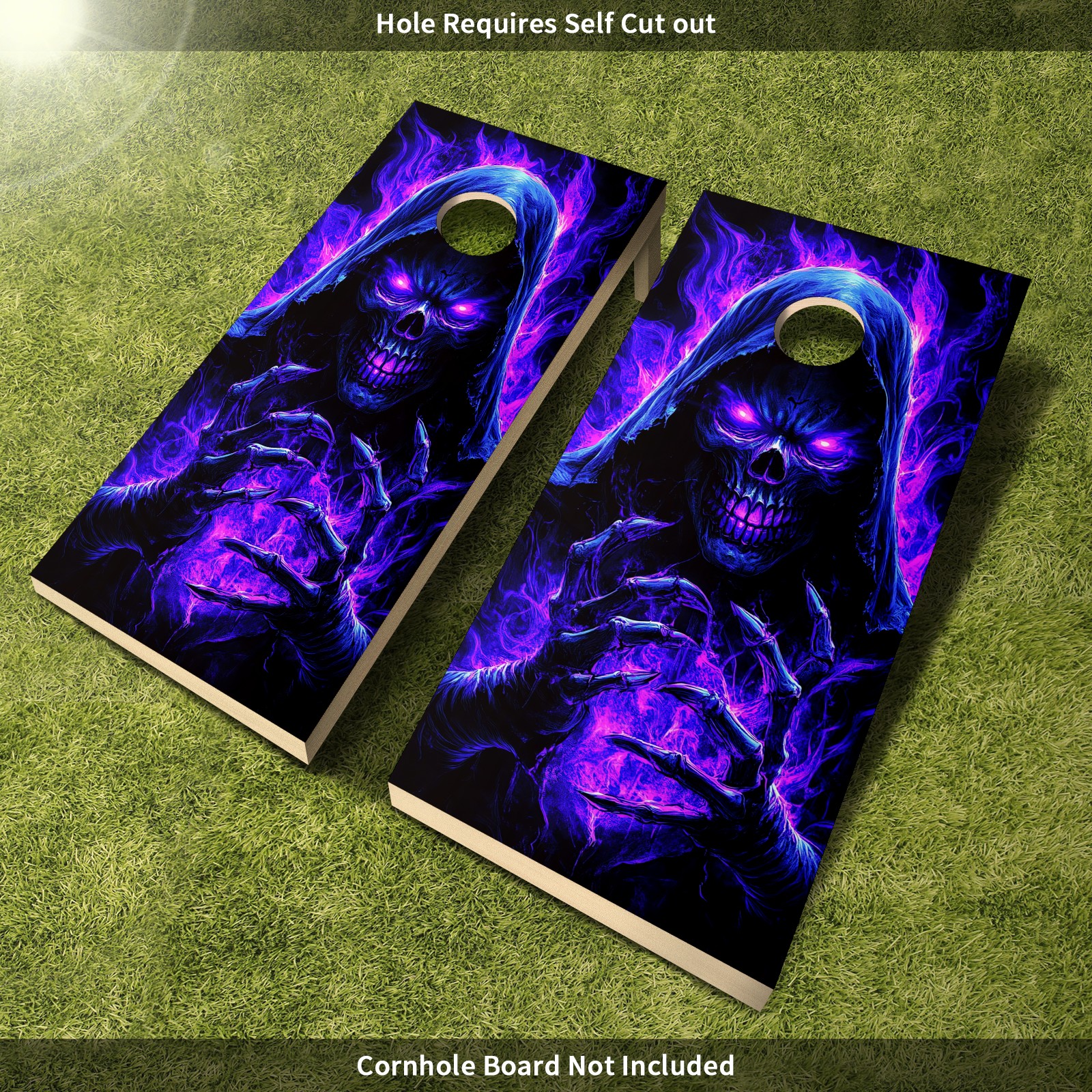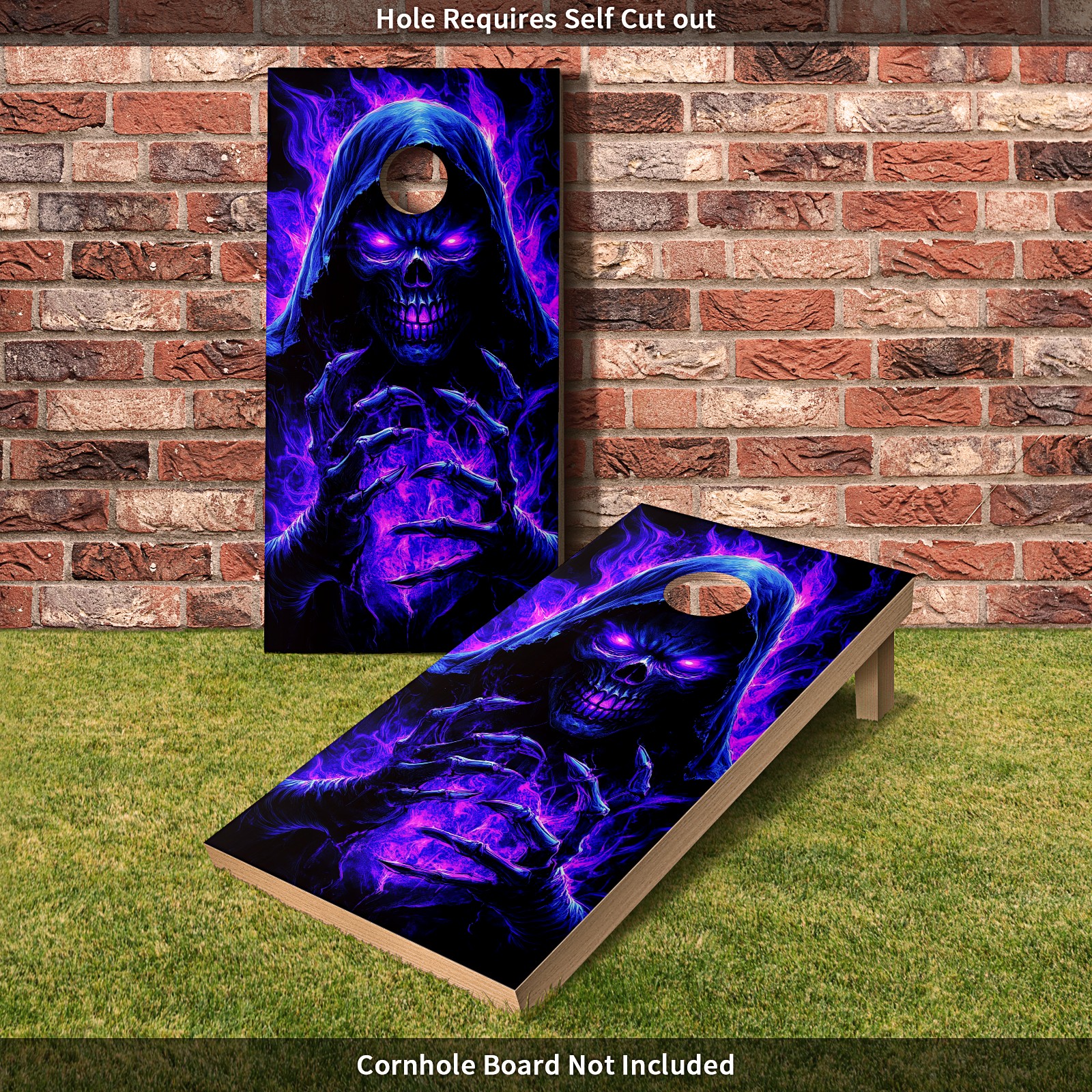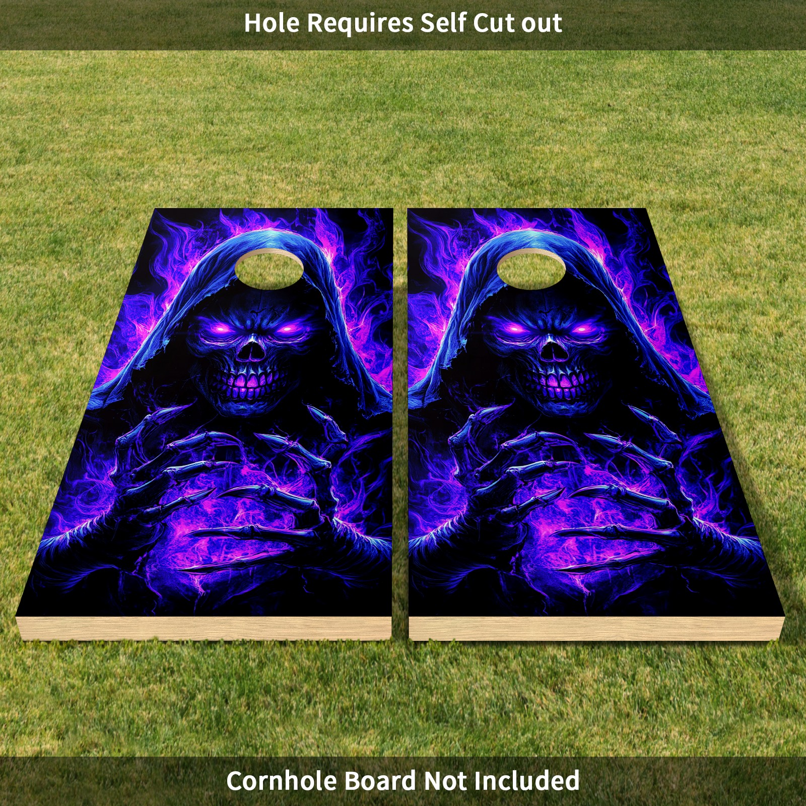Cornhole Board Wraps Decals 2'x4' Skull Purple Flame Outdoor Bean Bag Toss Game Graphic Wraps Vinyl Skin Stickers For Cornhole Boards