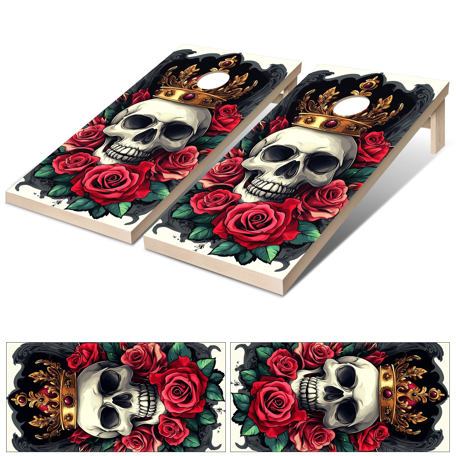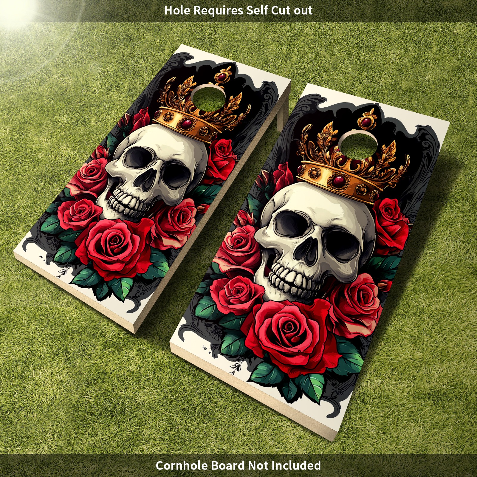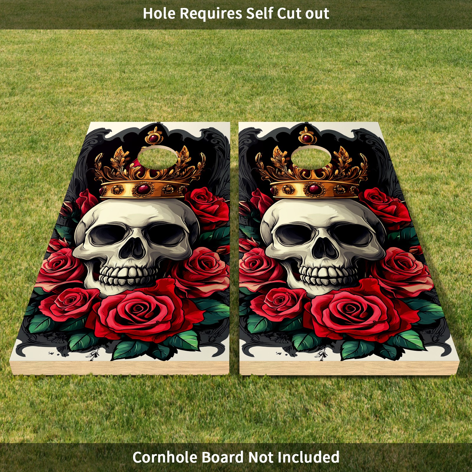 Cornhole Board Wraps Decals 2'x4' Skull Rose Flowers Outdoor Bean Bag Toss Game Graphic Wraps Vinyl Skin Stickers For Cornhole Boards