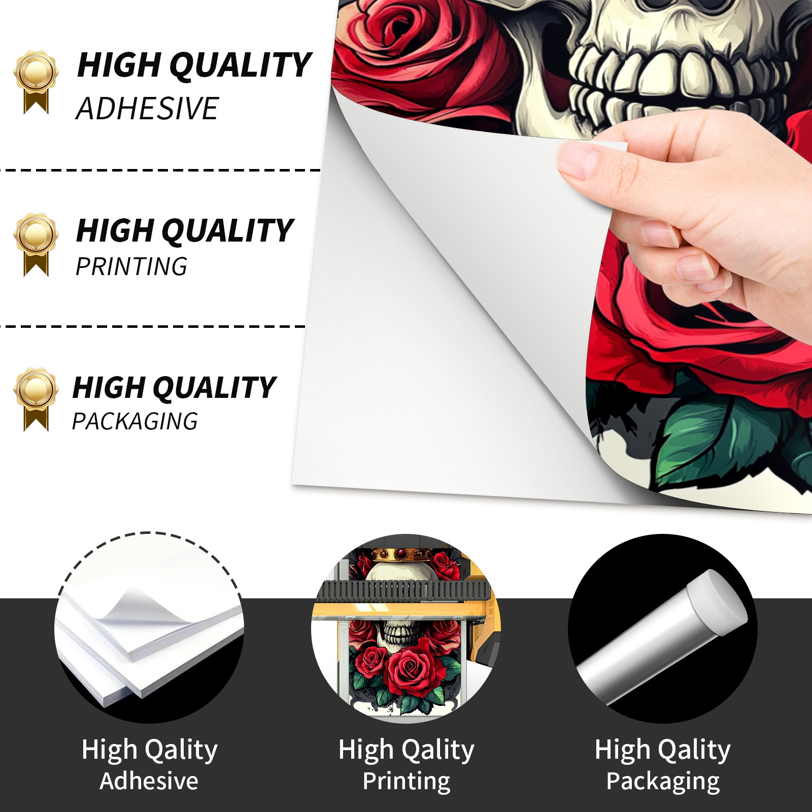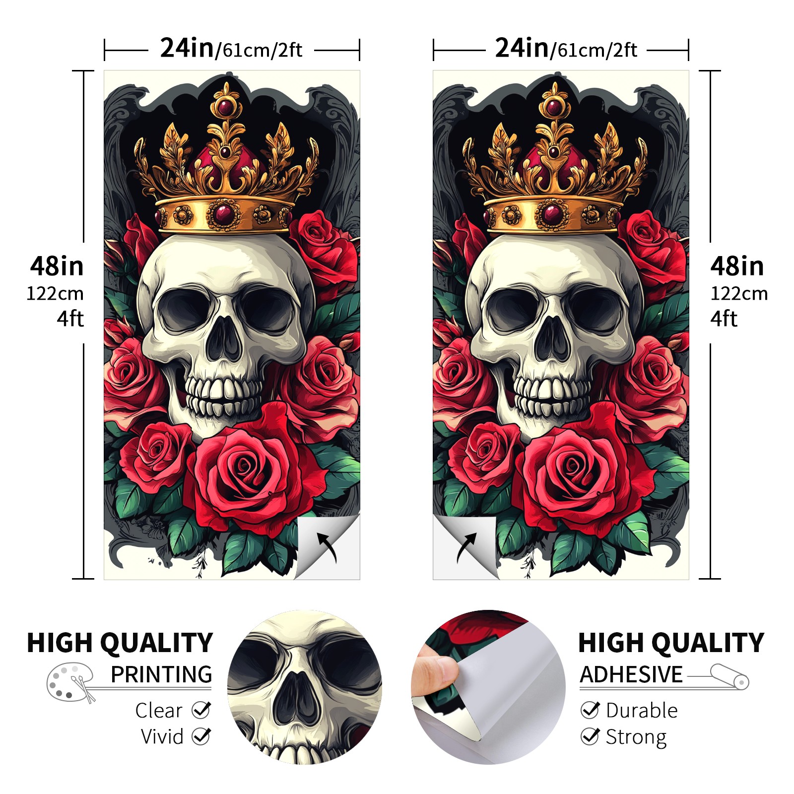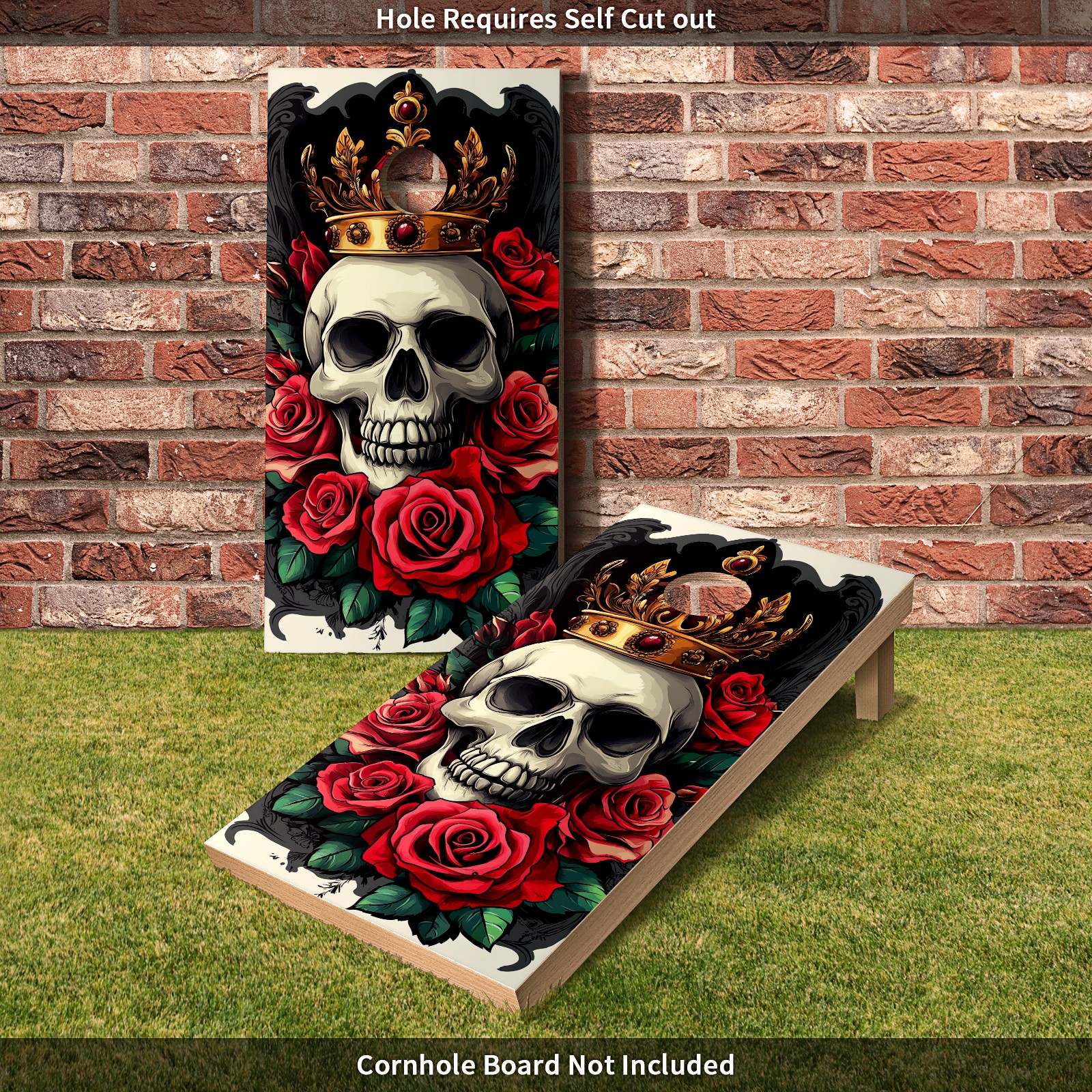 Cornhole Board Wraps Decals 2'x4' Skull Rose Flowers Outdoor Bean Bag Toss Game Graphic Wraps Vinyl Skin Stickers For Cornhole Boards