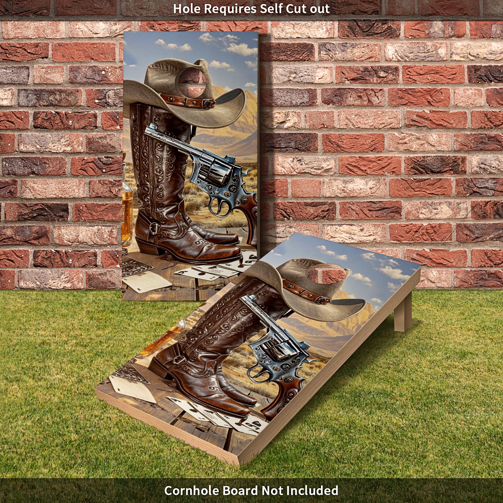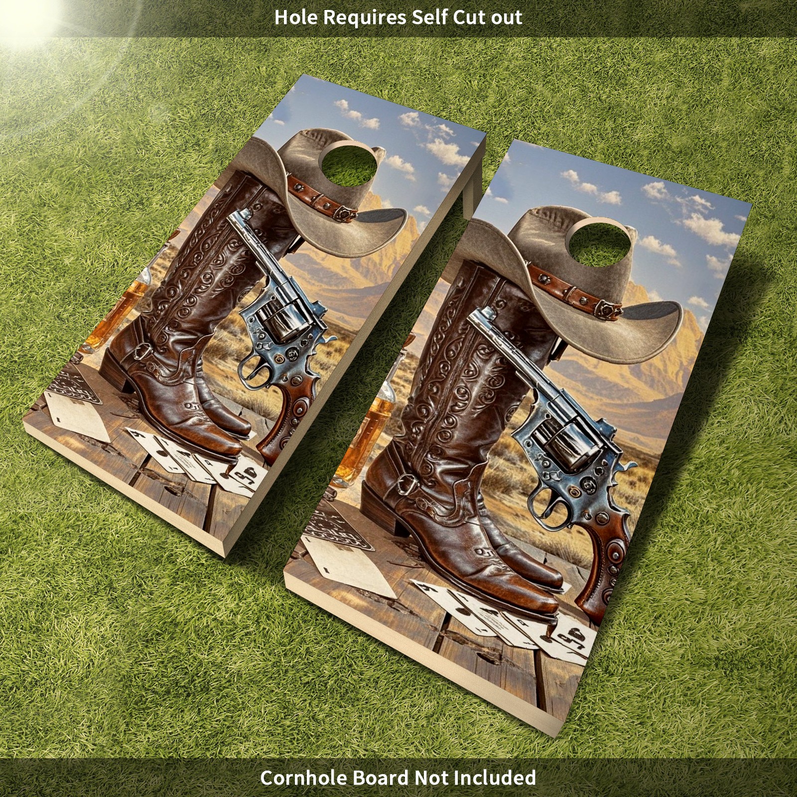 Cornhole Board Wraps Decals 2'x4' Western Cowboy Outdoor Bean Bag Toss Game Graphic Wraps Vinyl Skin Stickers For Cornhole Boards