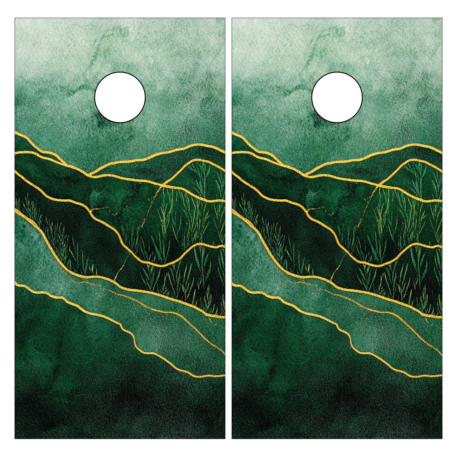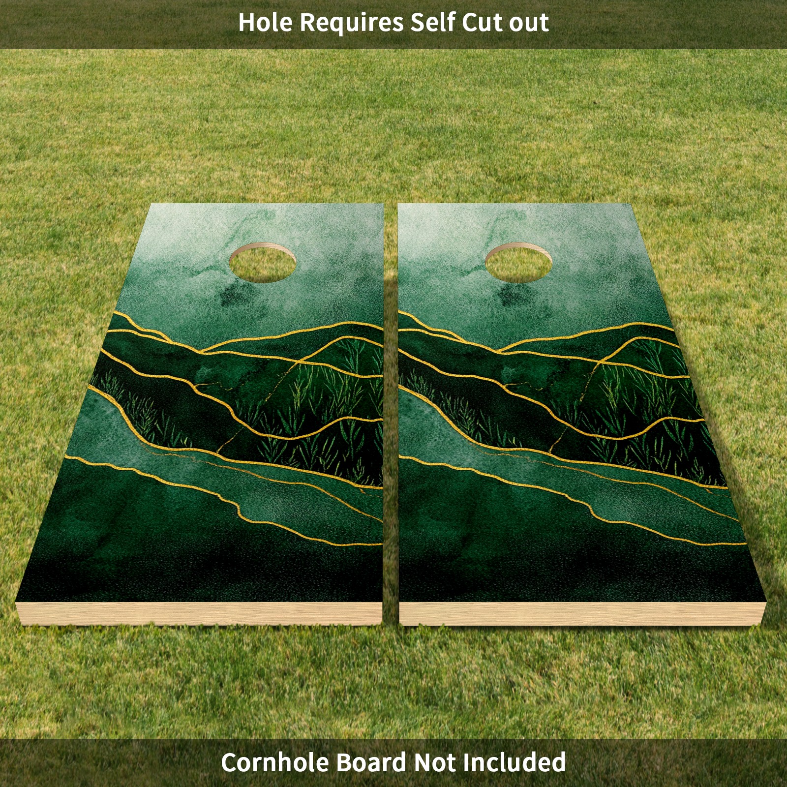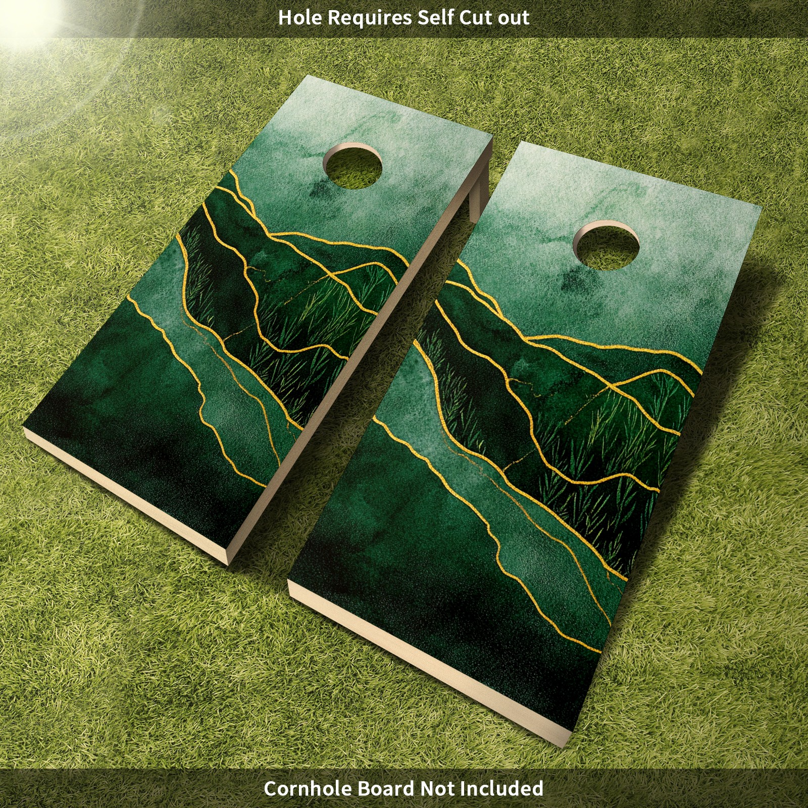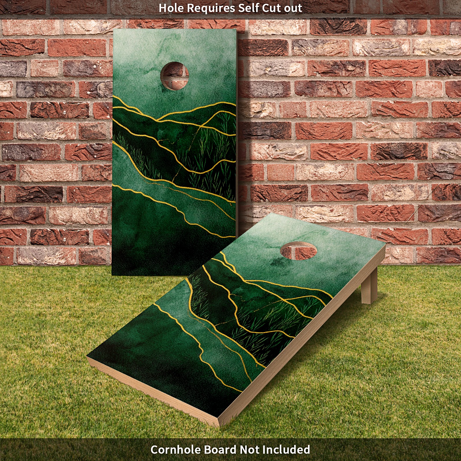 Cornhole Board Wraps Decals 2'x4' Emerald Green Mountains Marble Outdoor Bean Bag Toss Game Graphic Wraps Vinyl Skin Stickers For Cornhole Boards