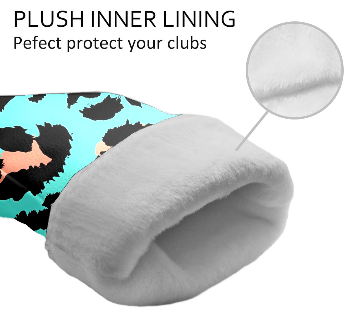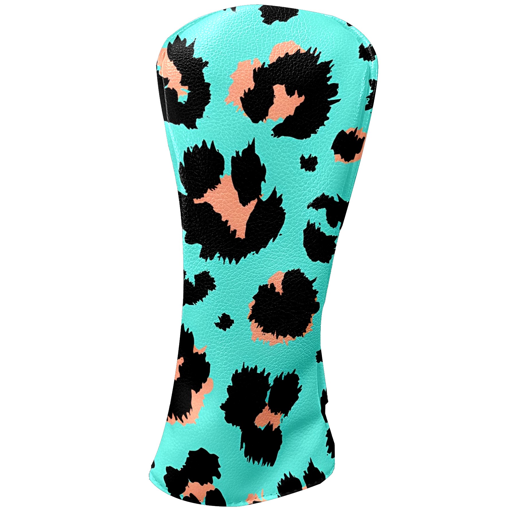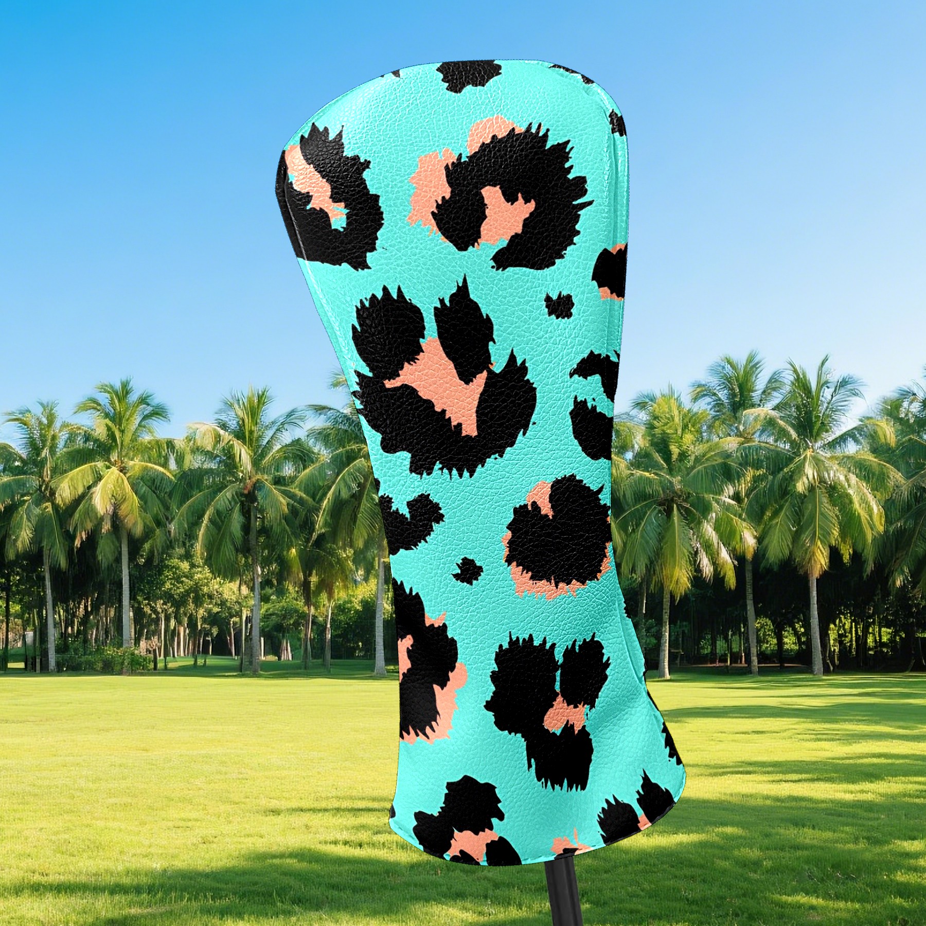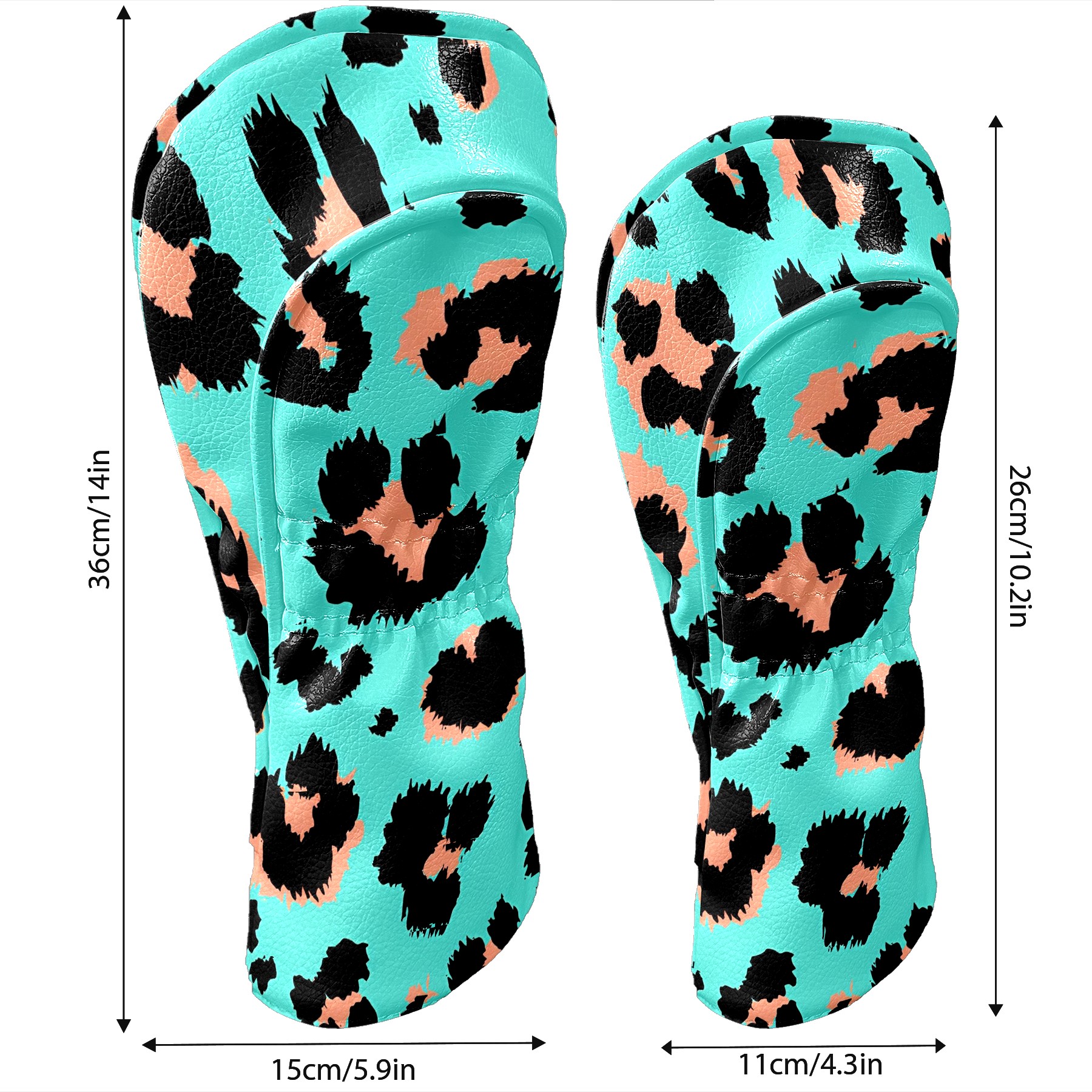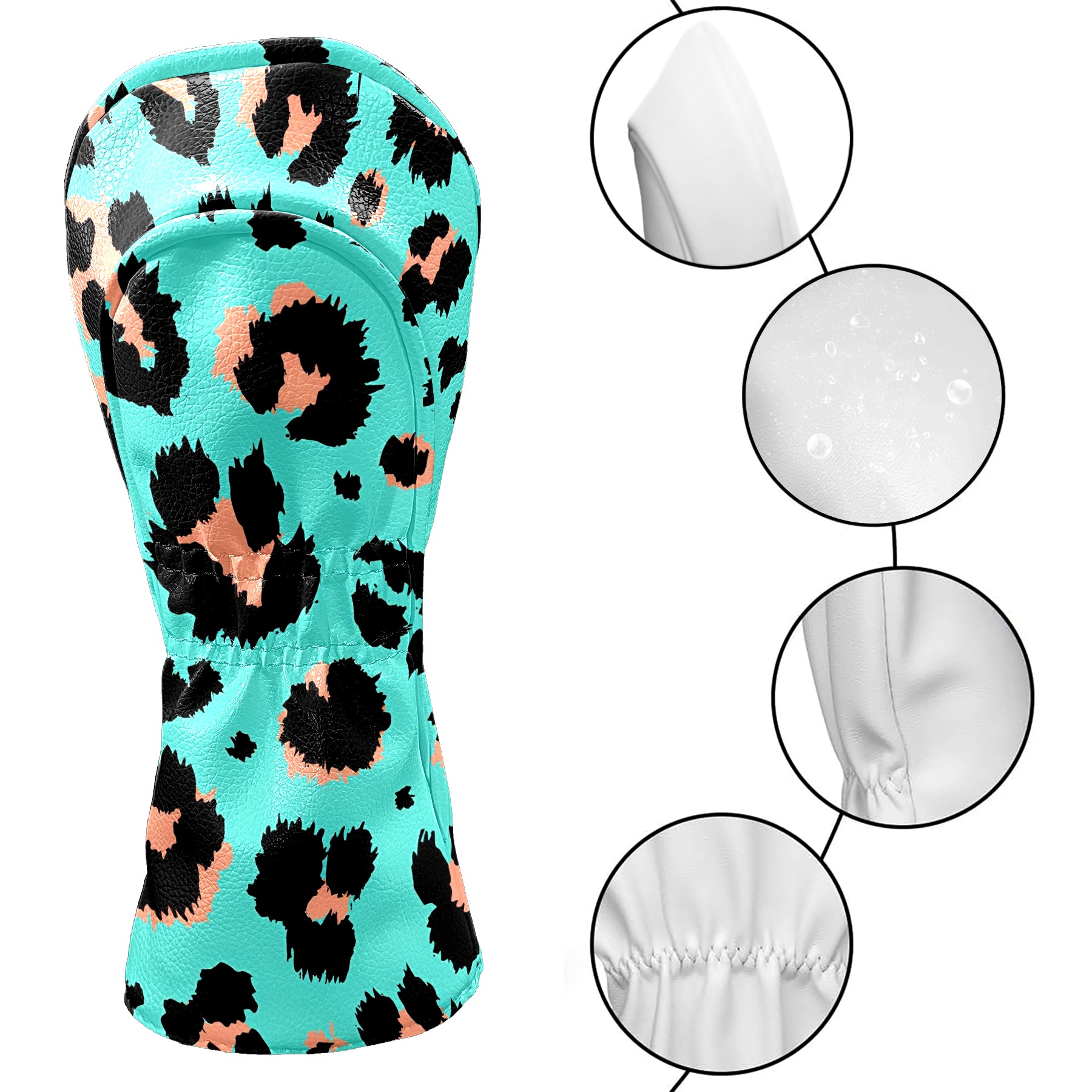 Golf Club Covers Leopard Print Green Driver Headcover, Leather Golf Club Head Covers for Driver Fairway Woods Waterproof Golf Headcovers with Anti-Scratch Lining for Men Women