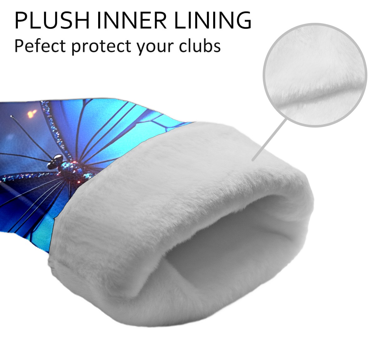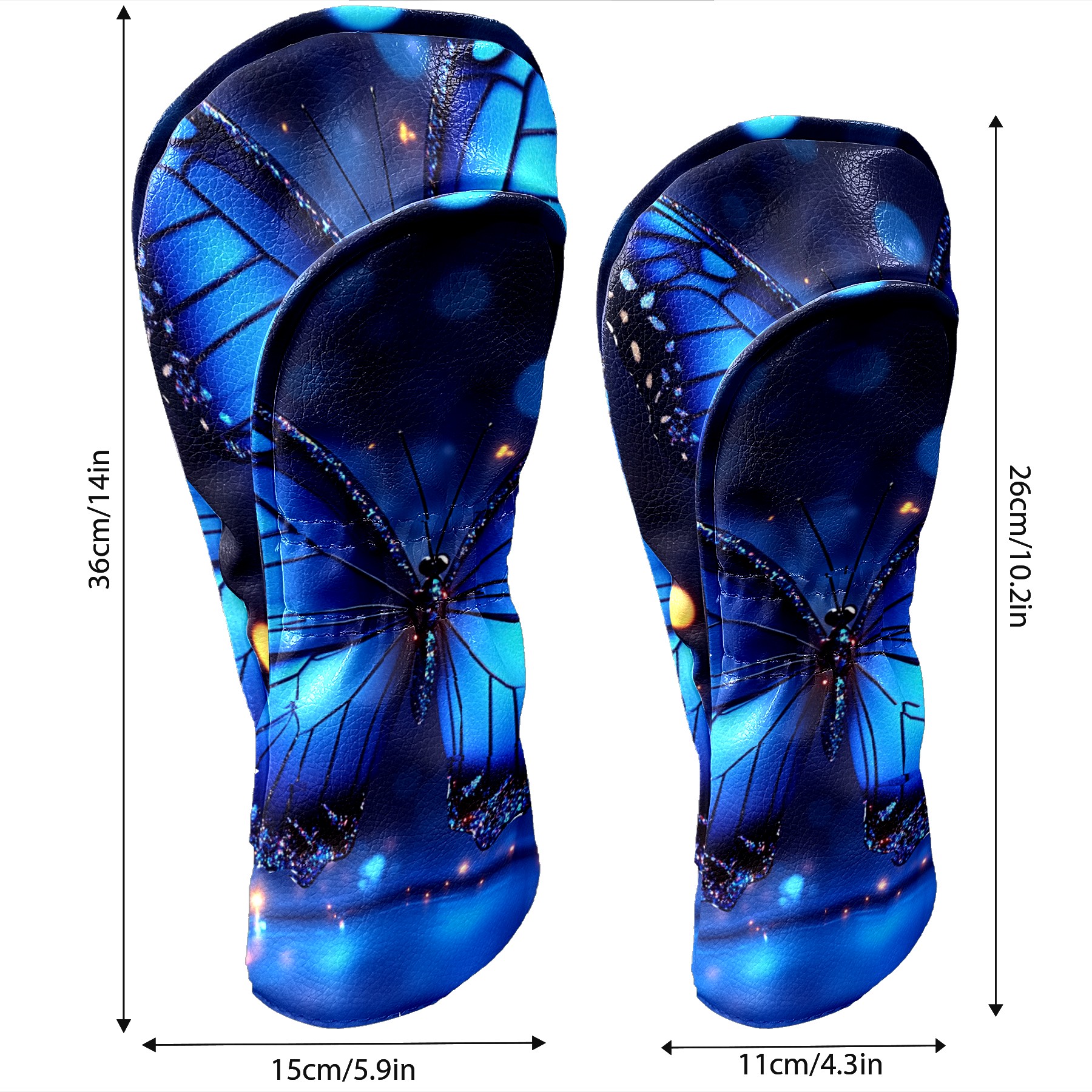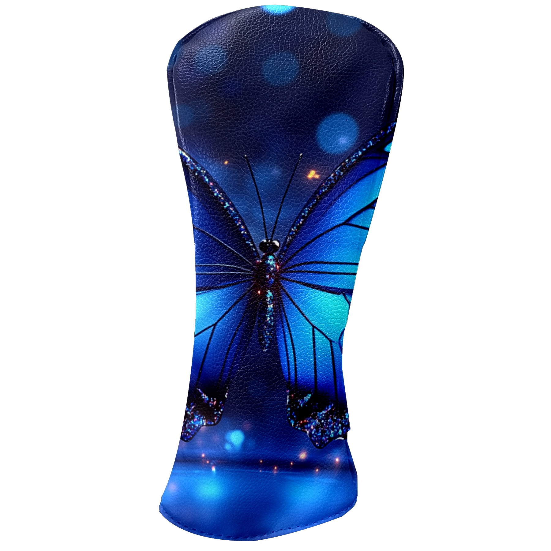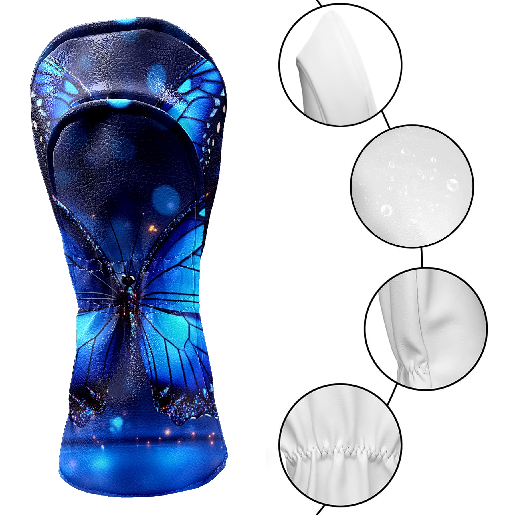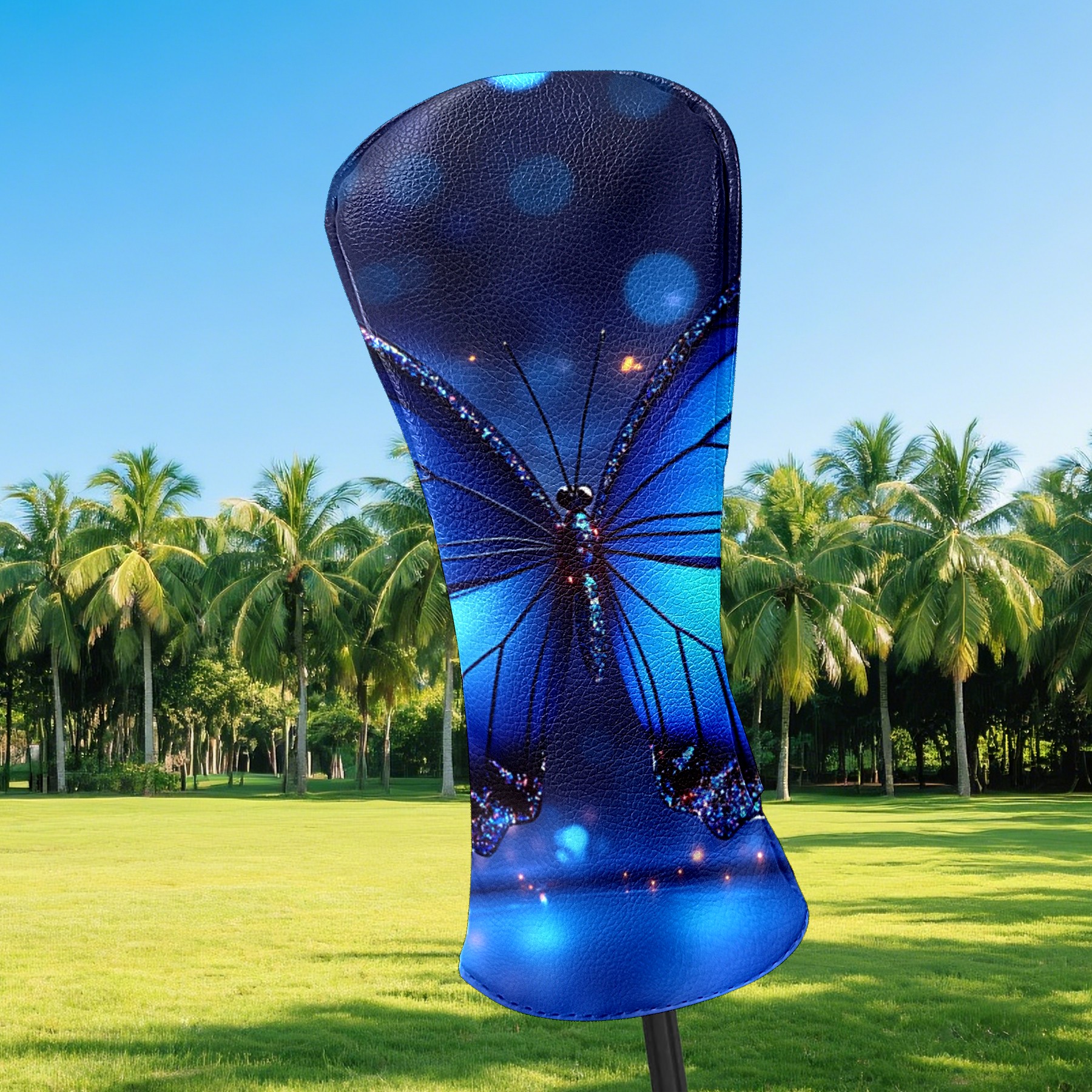 Golf Club Covers Blue Butterfly With Glitter Driver Headcover, Leather Golf Club Head Covers for Driver Fairway Woods Waterproof Golf Headcovers with Anti-Scratch Lining for Men Women
