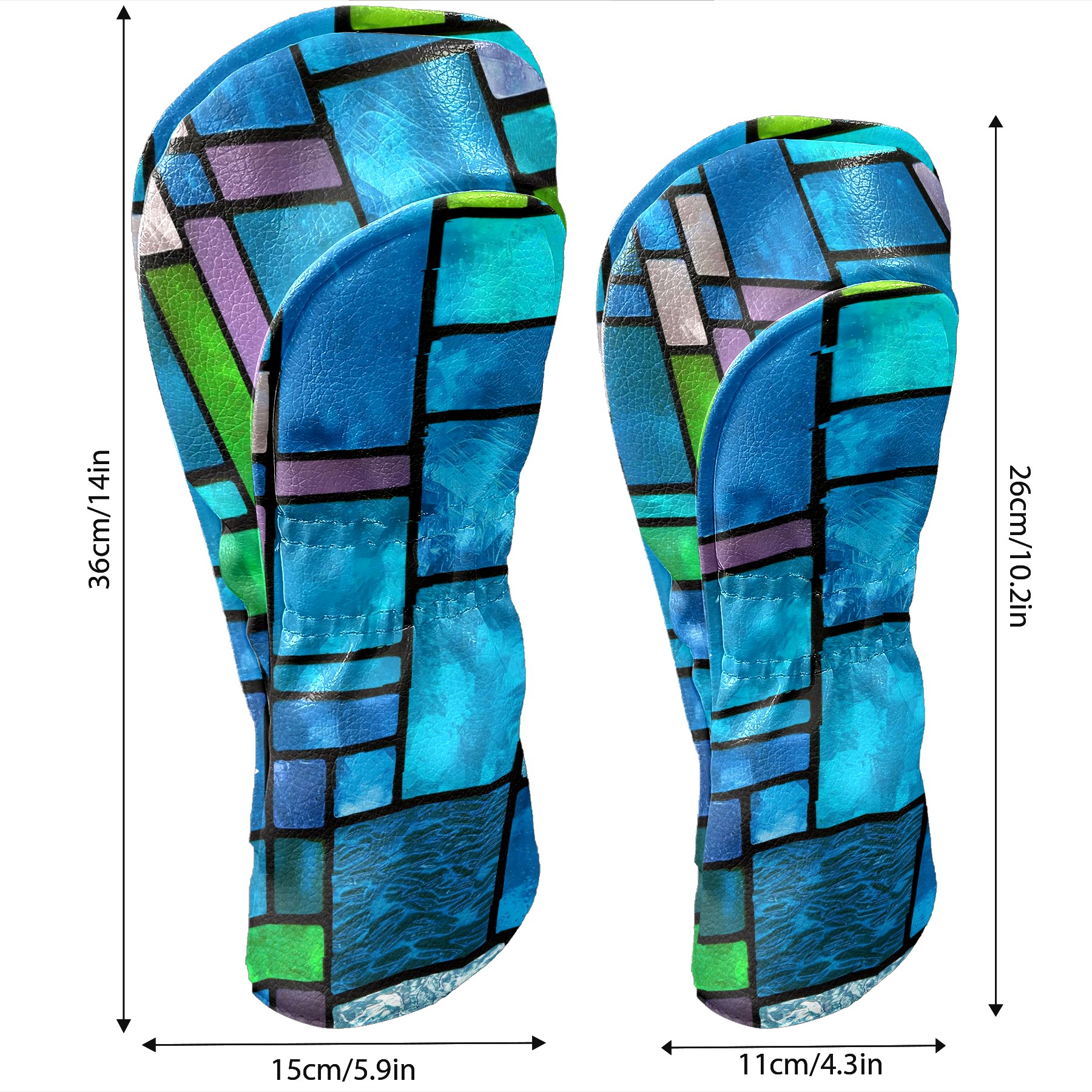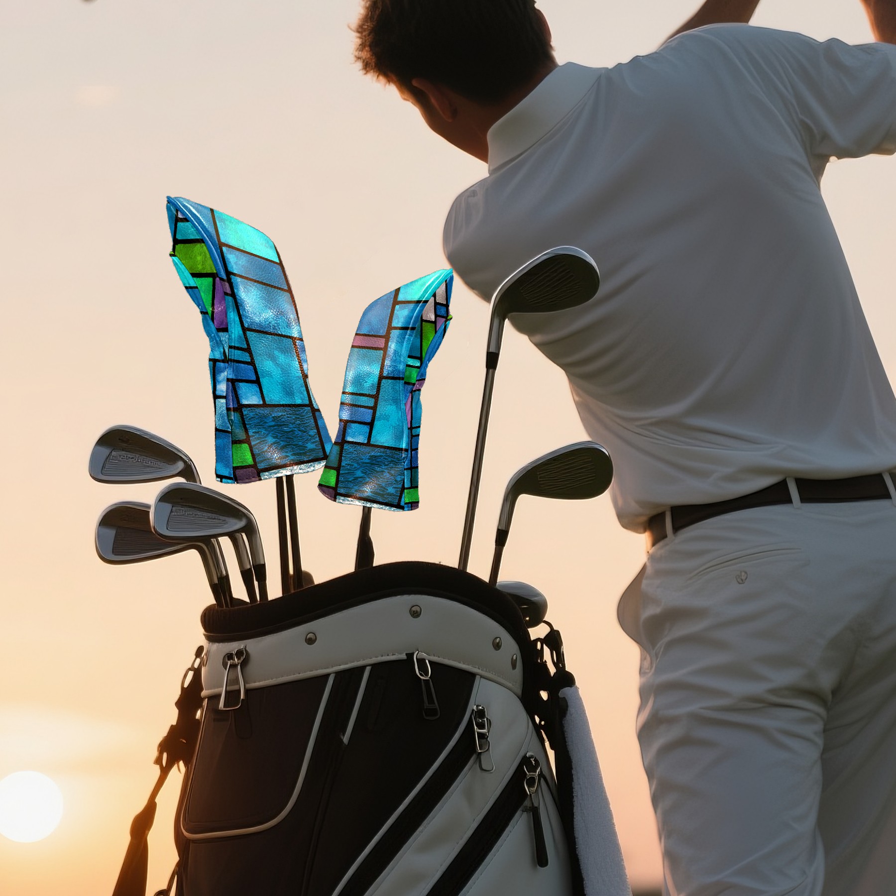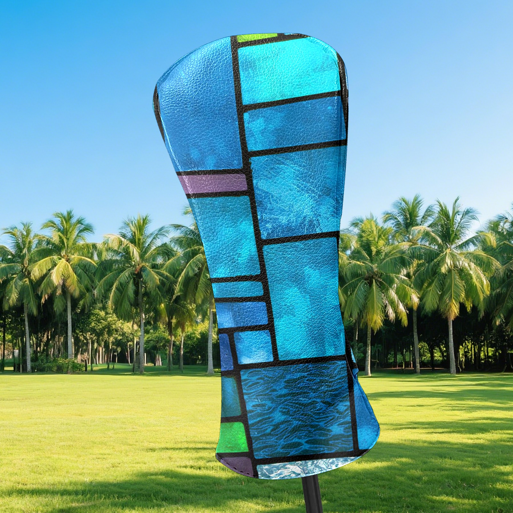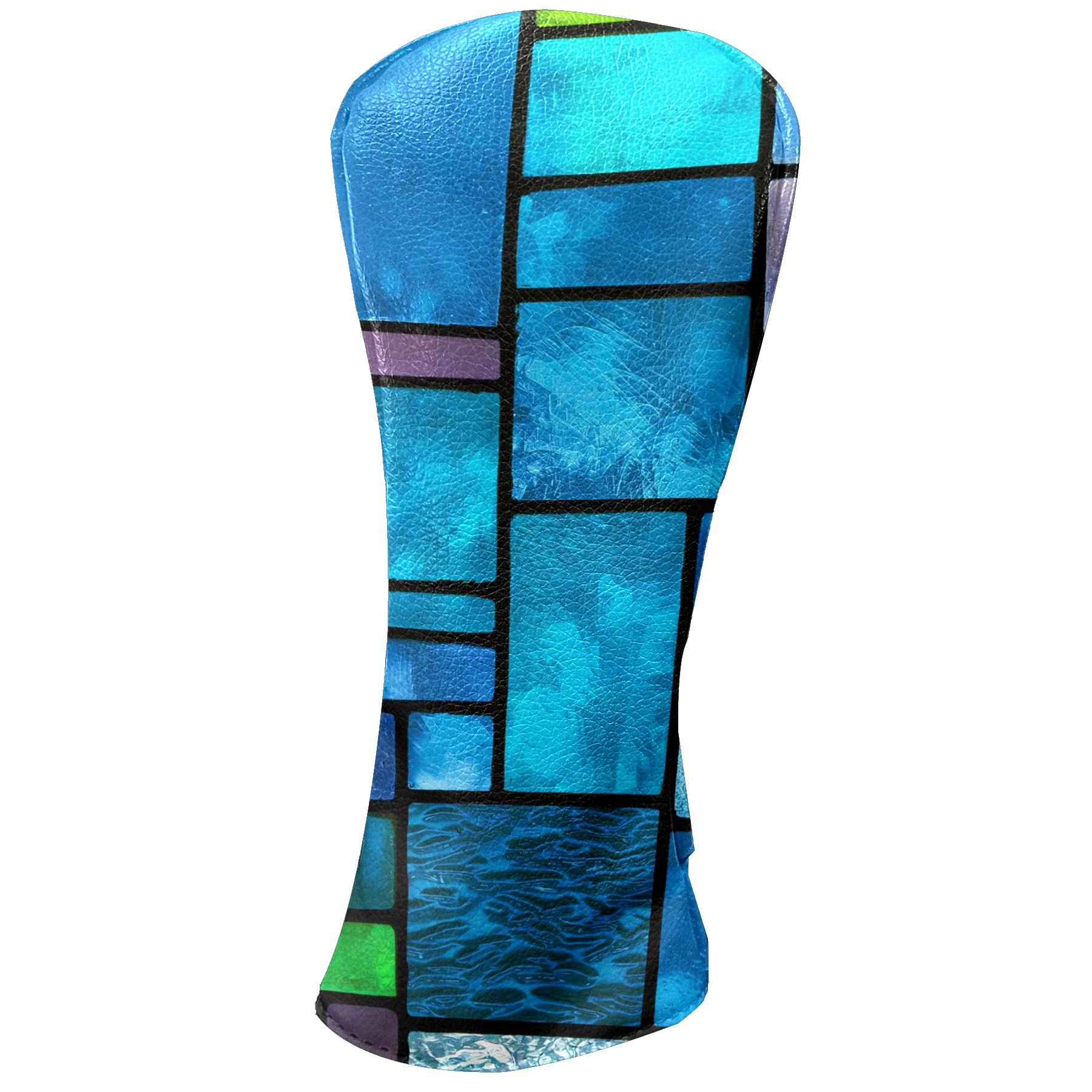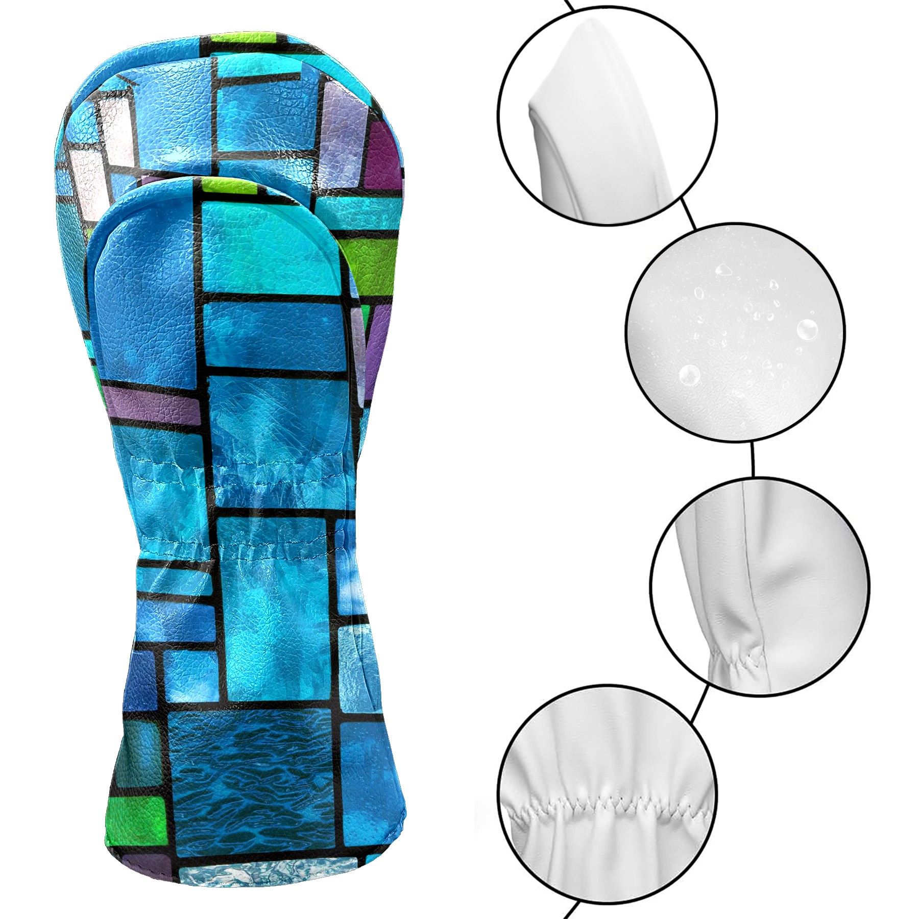 Golf Club Covers Blue Green Stained Glass (1) Driver Headcover, Leather Golf Club Head Covers for Driver Fairway Woods Waterproof Golf Headcovers with Anti-Scratch Lining for Men Women