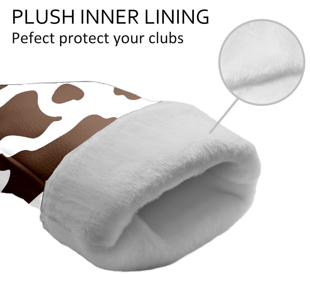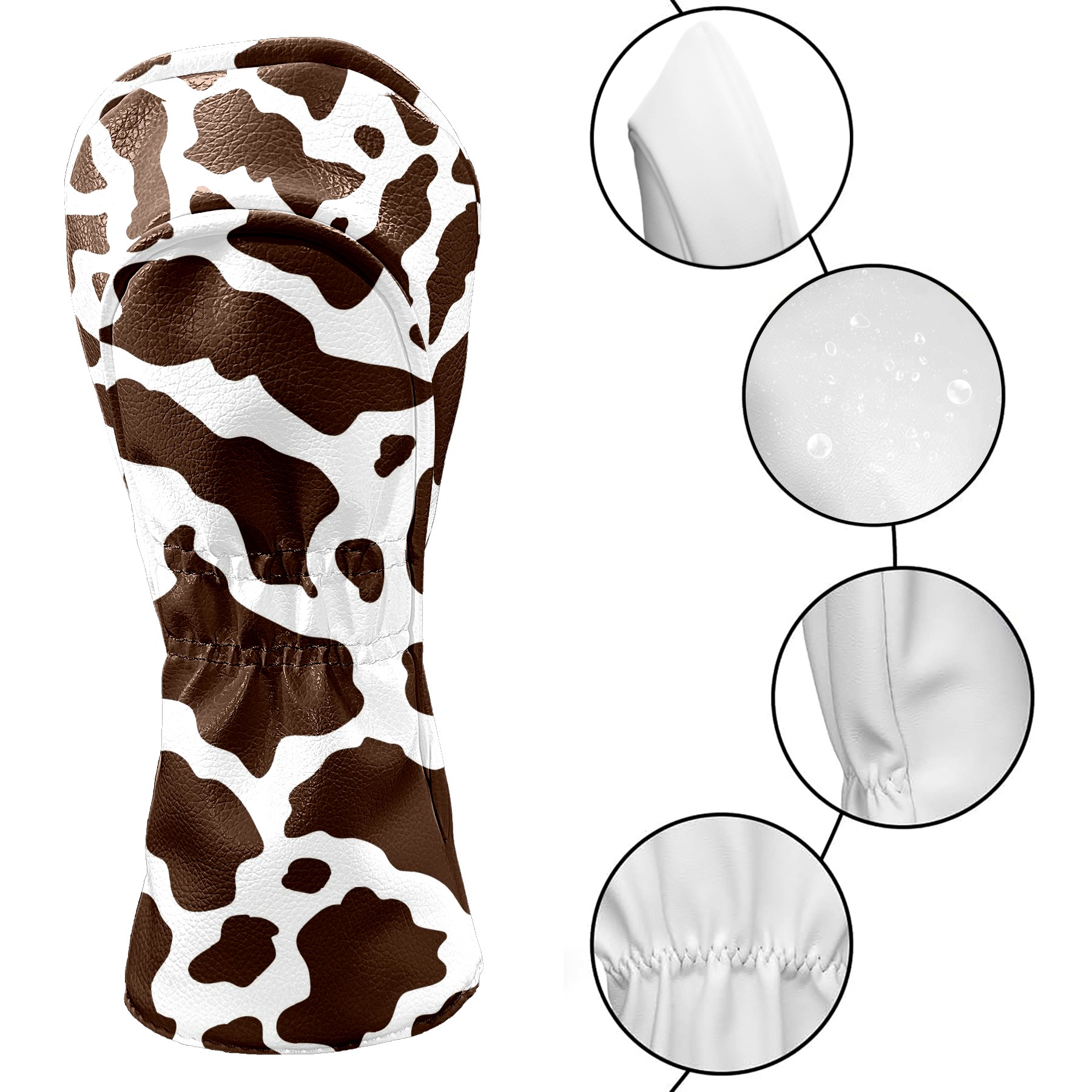 Golf Club Covers Red Cow Print Pattern Driver Headcover, Leather Golf Club Head Covers for Driver Fairway Woods Waterproof Golf Headcovers with Anti-Scratch Lining for Men Women