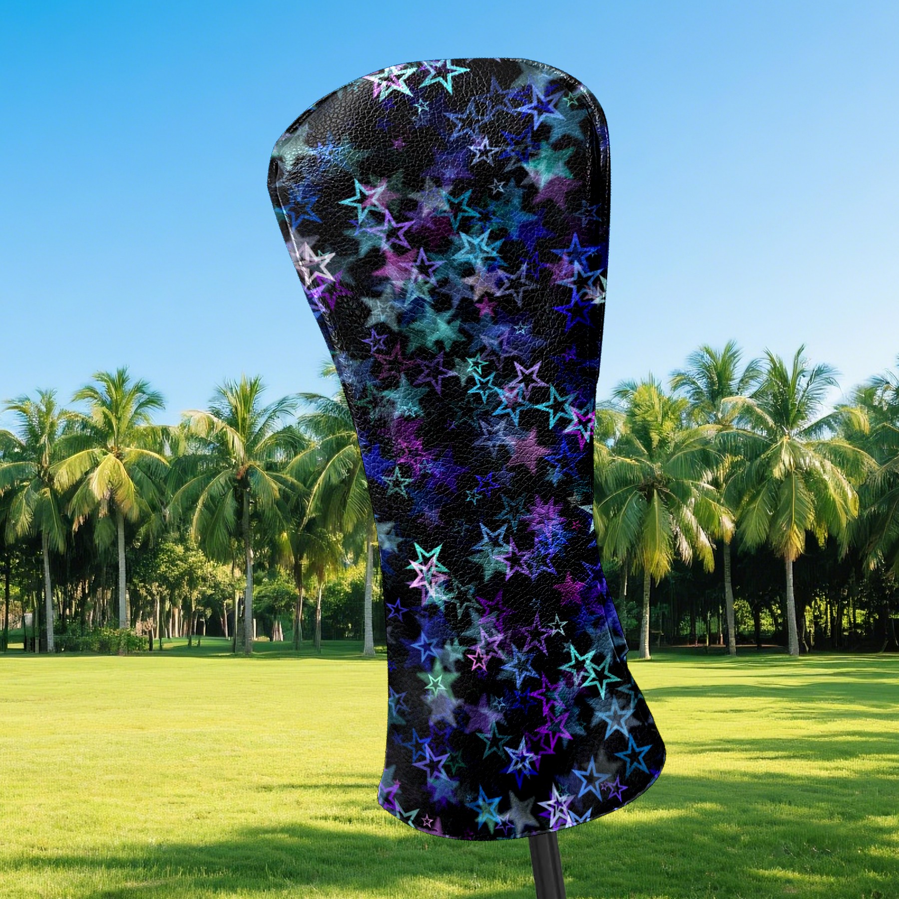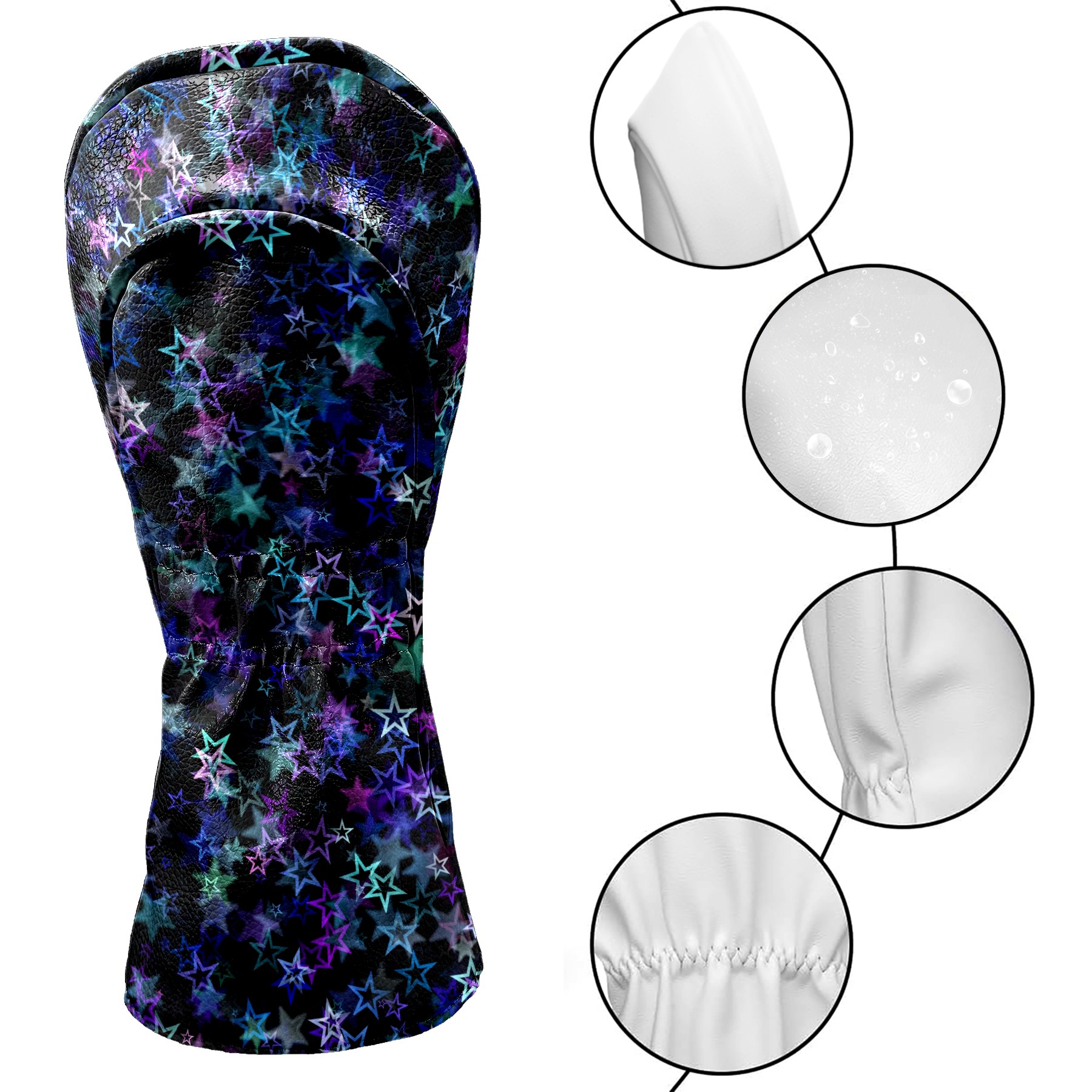 Golf Club Covers Blue Pink Stars Pattern Driver Headcover, Leather Golf Club Head Covers for Driver Fairway Woods Waterproof Golf Headcovers with Anti-Scratch Lining for Men Women