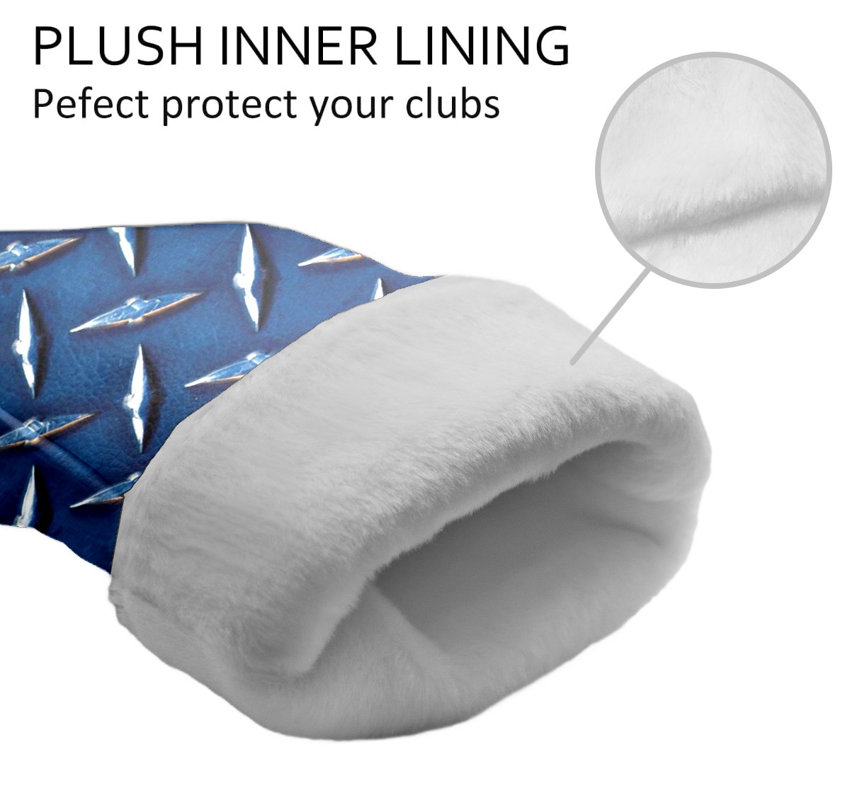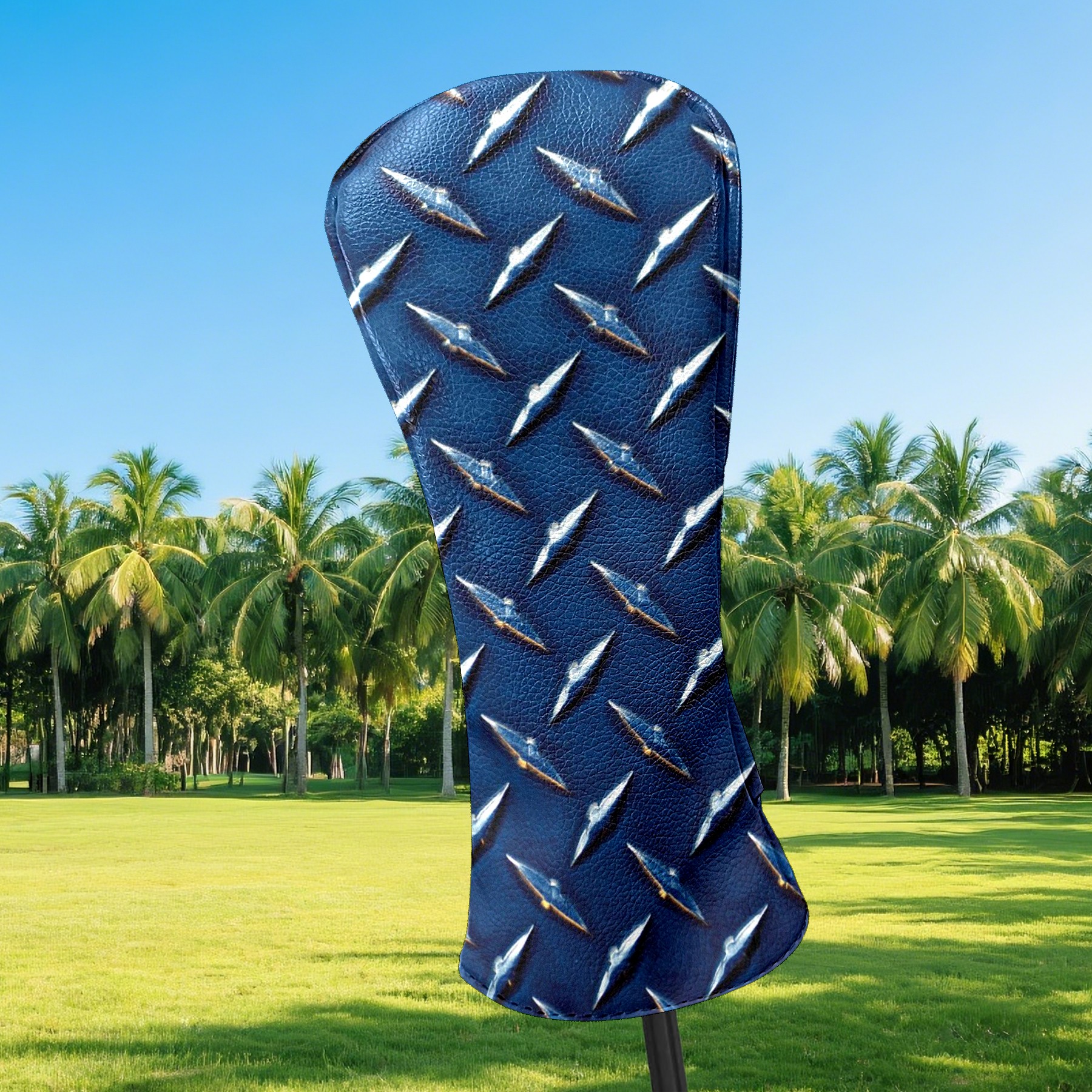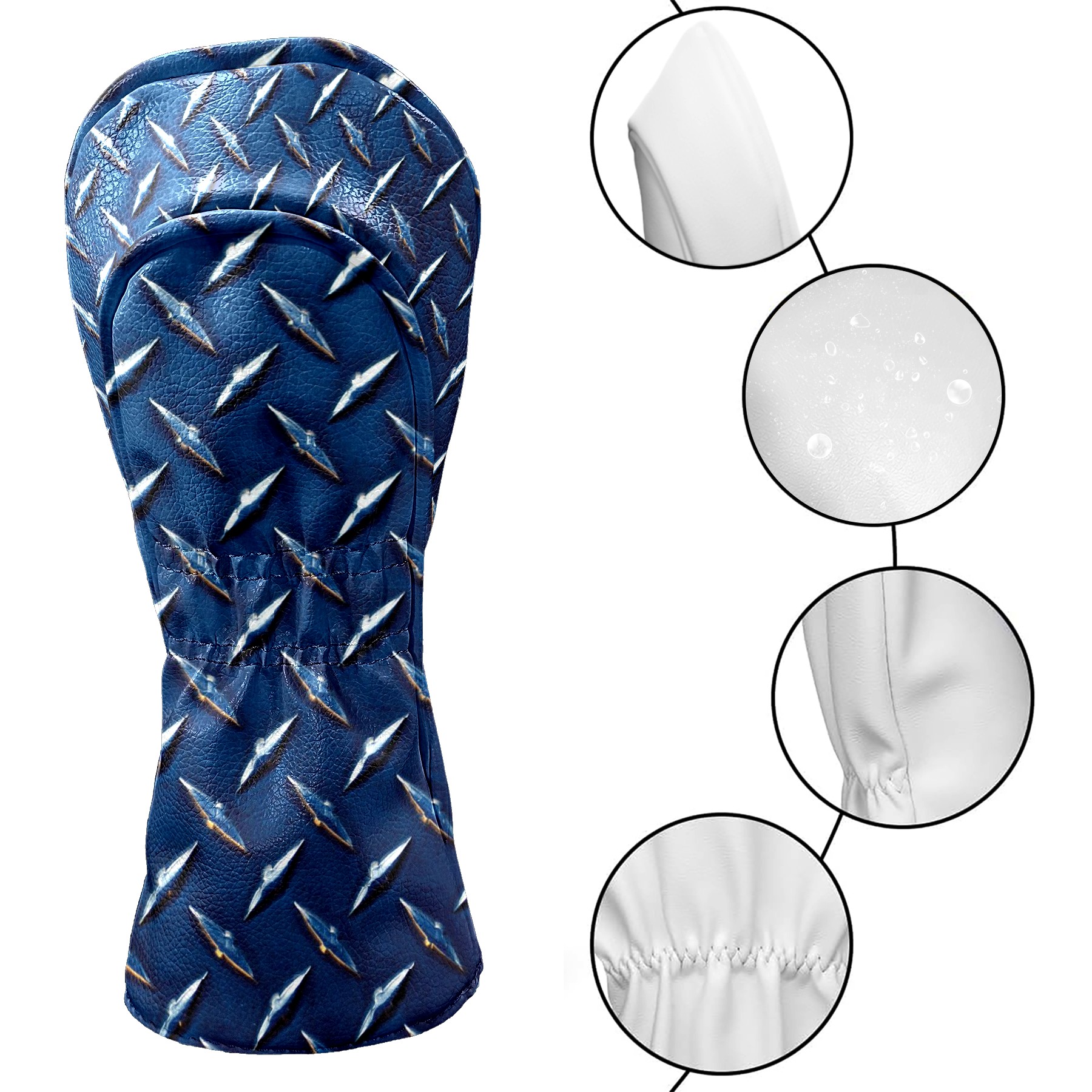 Golf Club Covers Blue Metal Print Driver Headcover, Leather Golf Club Head Covers for Driver Fairway Woods Waterproof Golf Headcovers with Anti-Scratch Lining for Men Women