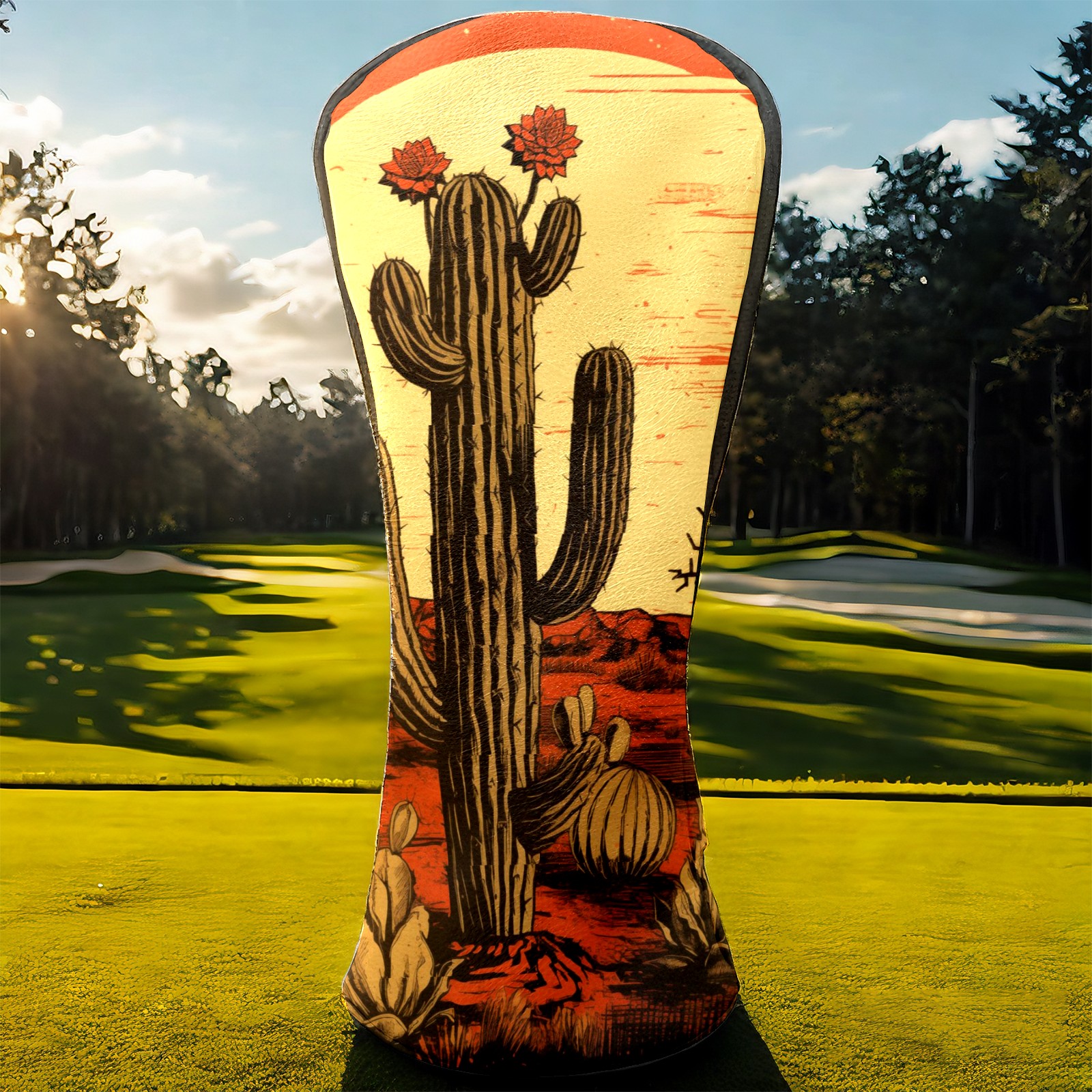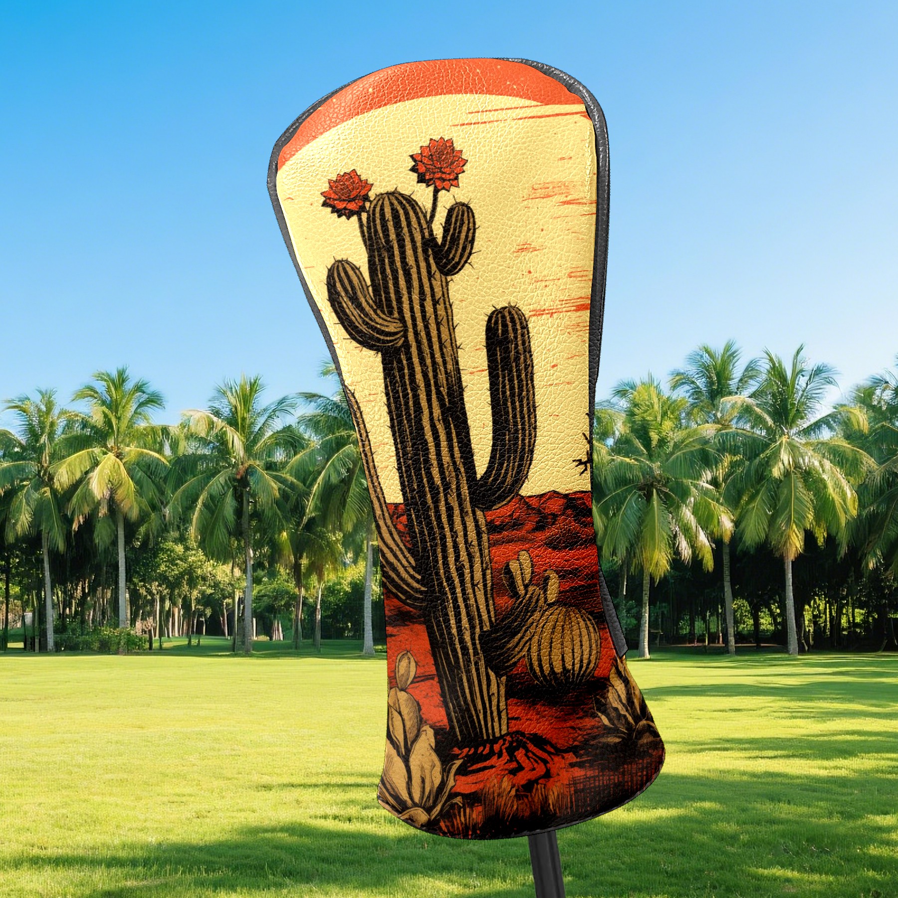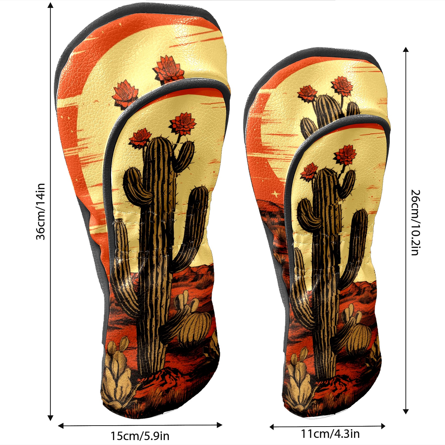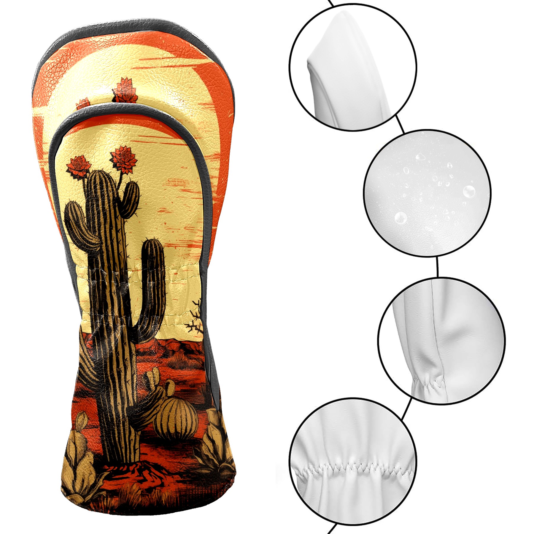 Golf Club Covers Cactus With Sun Driver Headcover, Leather Golf Club Head Covers for Driver Fairway Woods Waterproof Golf Headcovers with Anti-Scratch Lining for Men Women