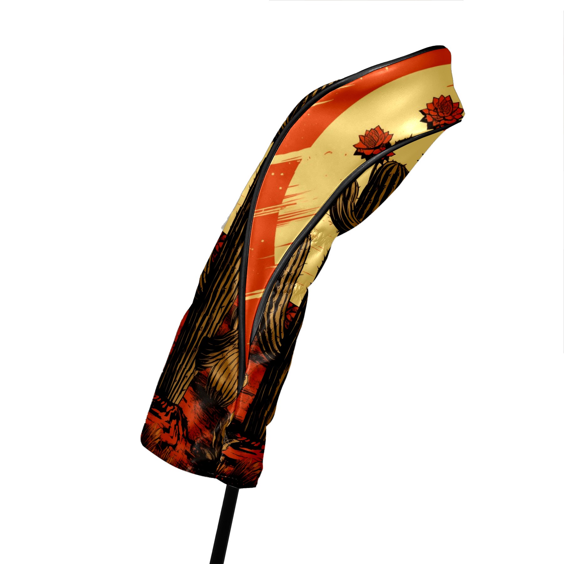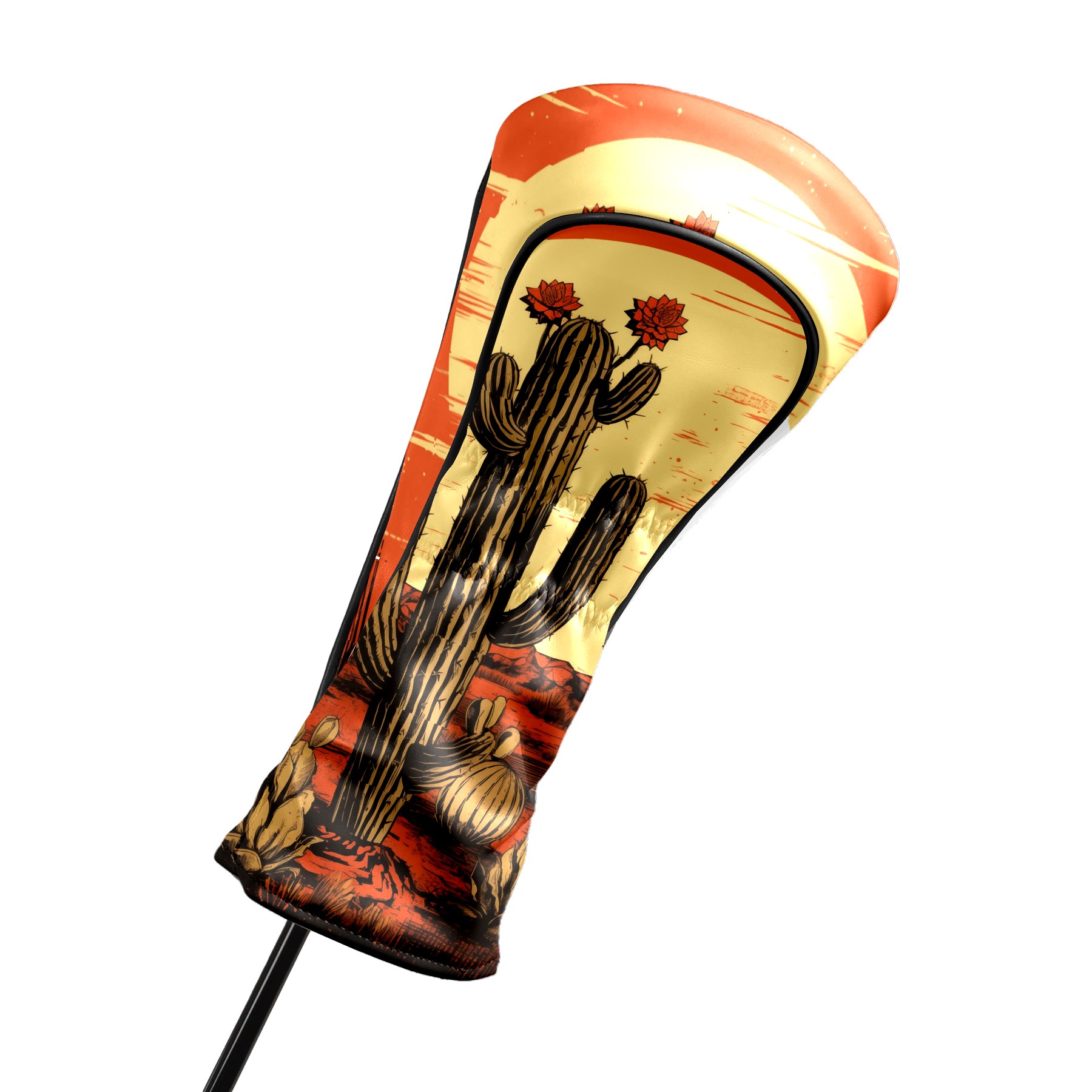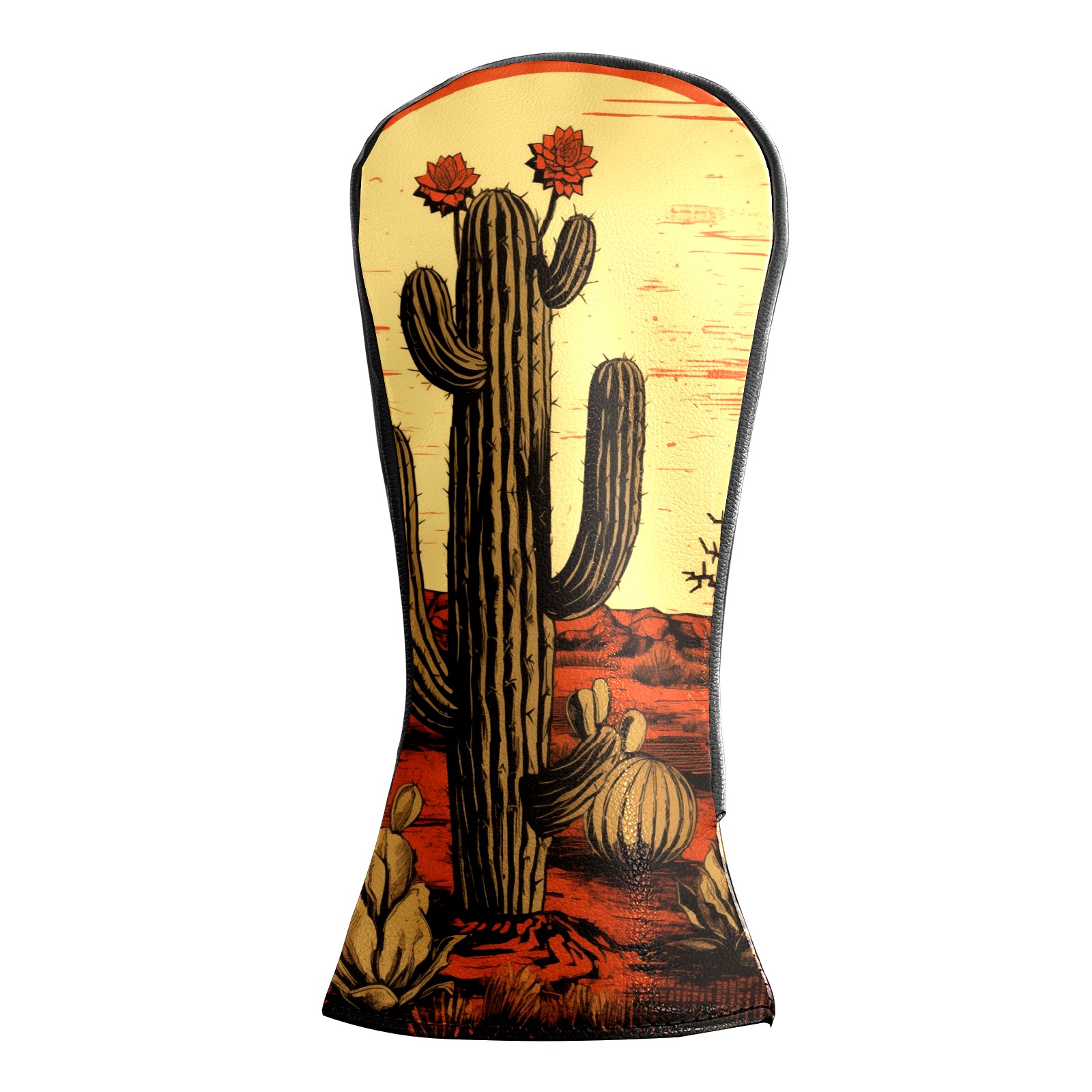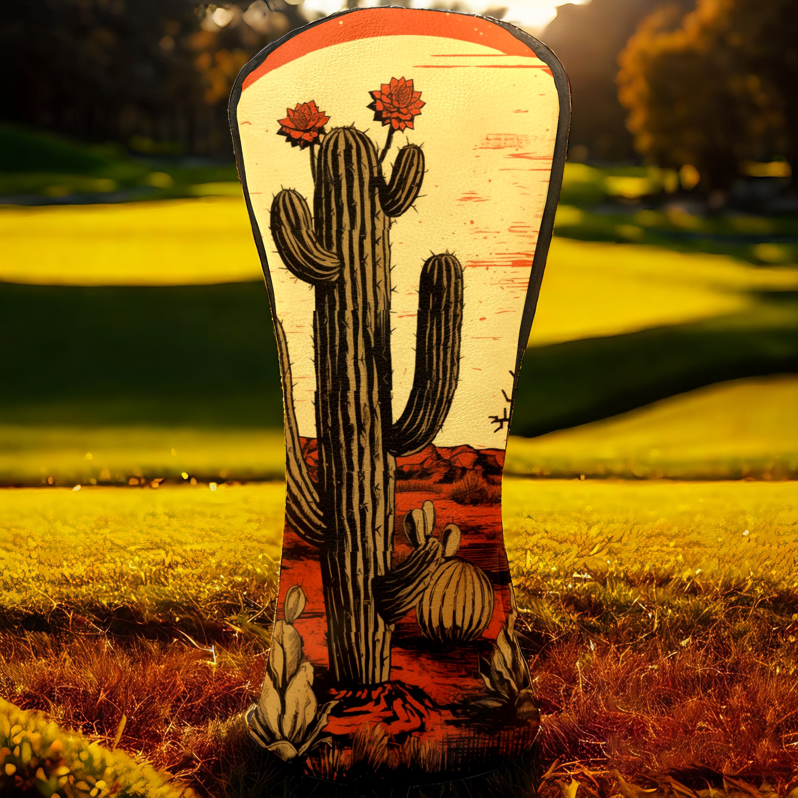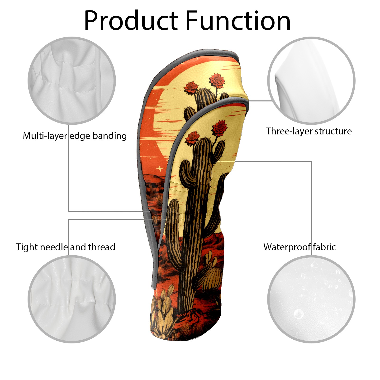Golf Club Covers Cactus With Sun Driver Headcover, Leather Golf Club Head Covers for Driver Fairway Woods Waterproof Golf Headcovers with Anti-Scratch Lining for Men Women