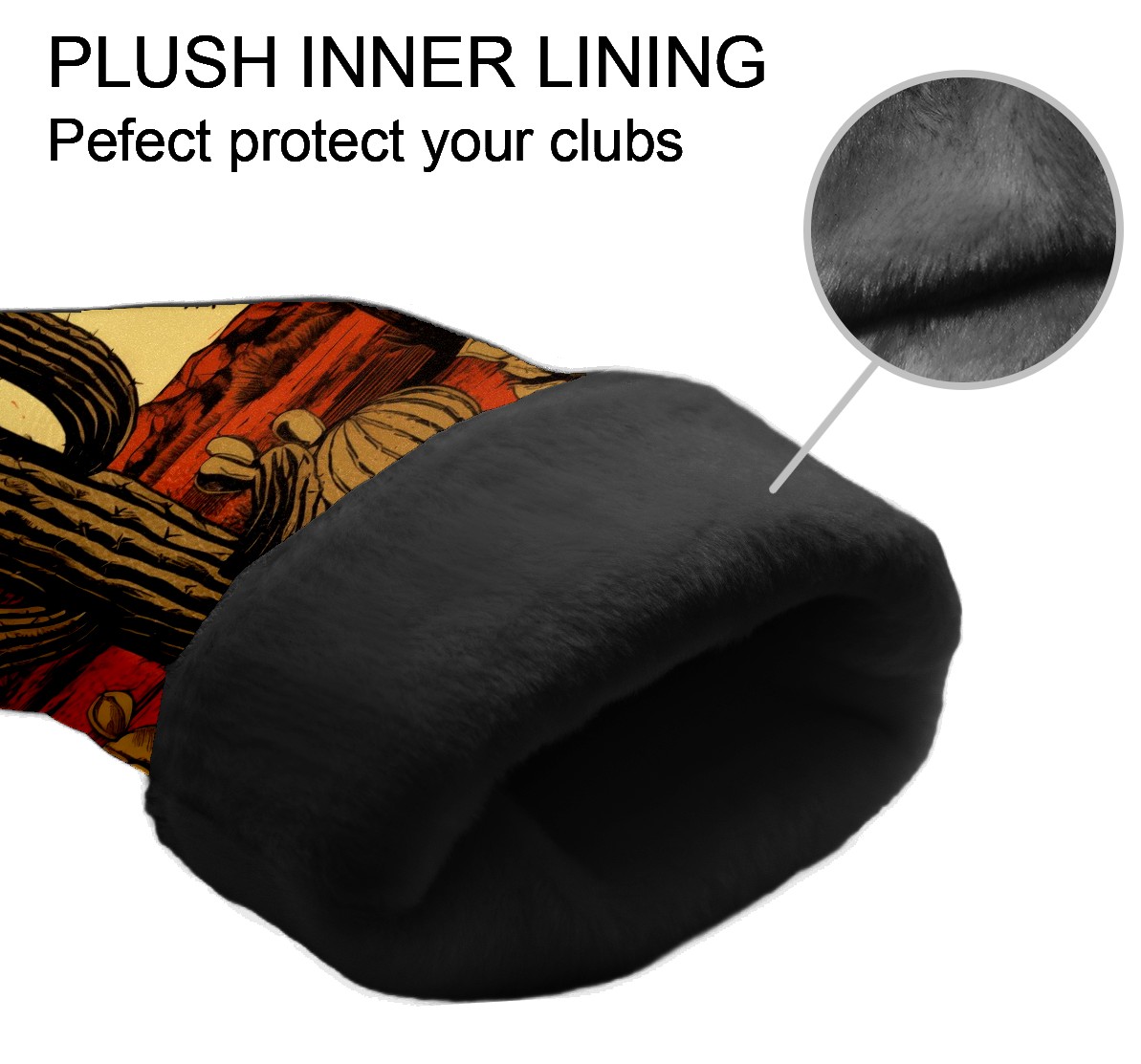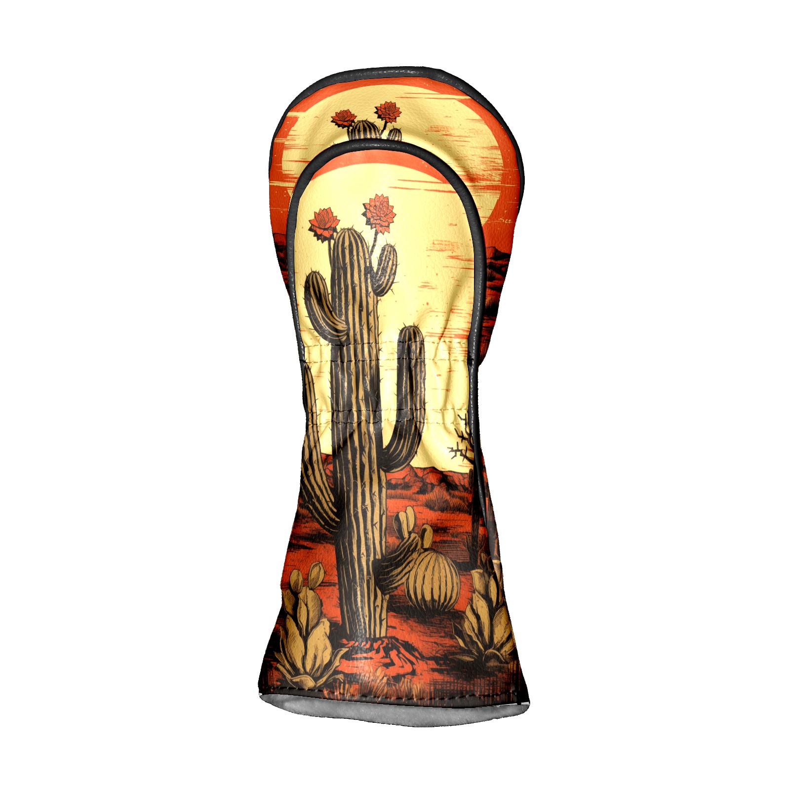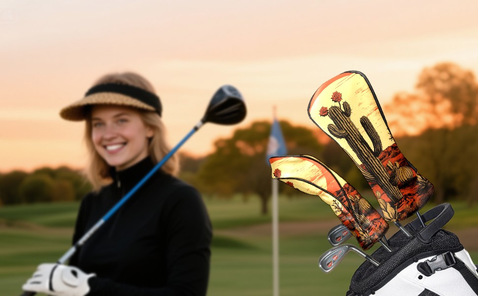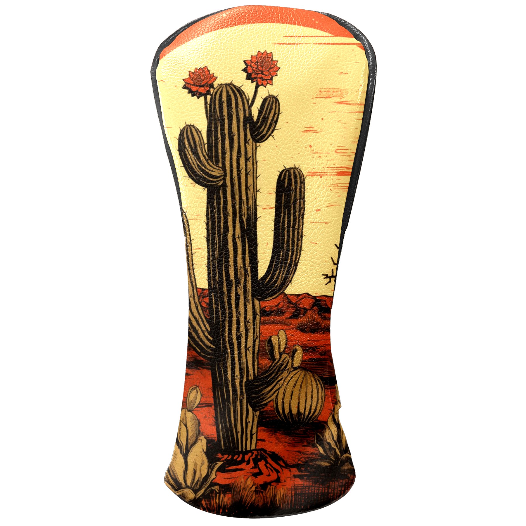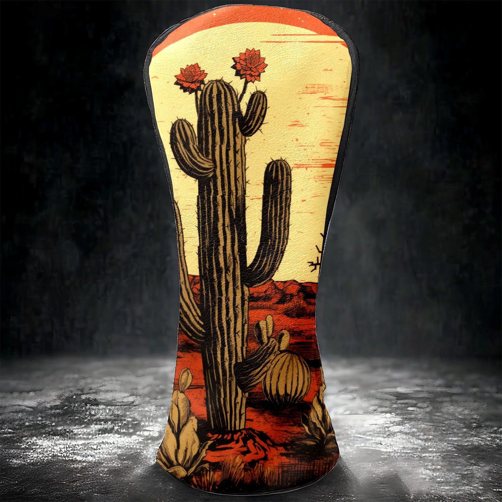 Golf Club Covers Cactus With Sun Driver Headcover, Leather Golf Club Head Covers for Driver Fairway Woods Waterproof Golf Headcovers with Anti-Scratch Lining for Men Women