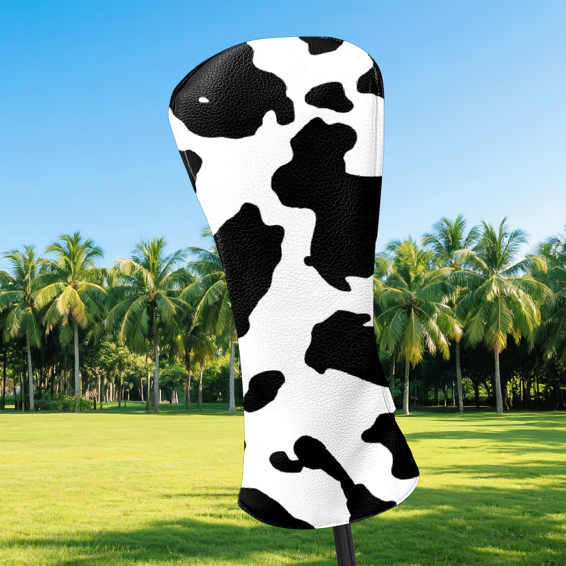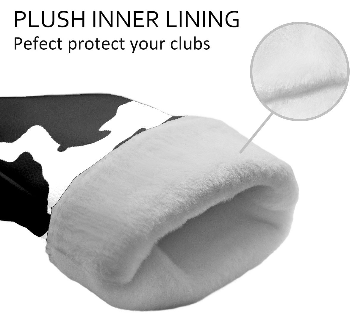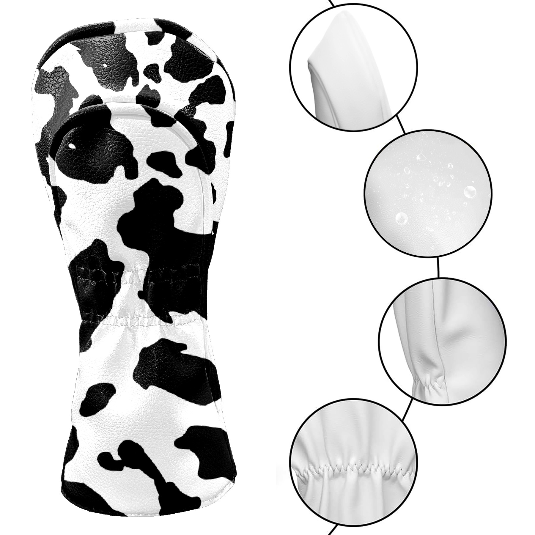 Golf Club Covers Abstract Cow Pattern Print Driver Headcover, Leather Golf Club Head Covers for Driver Fairway Woods Waterproof Golf Headcovers with Anti-Scratch Lining for Men Women