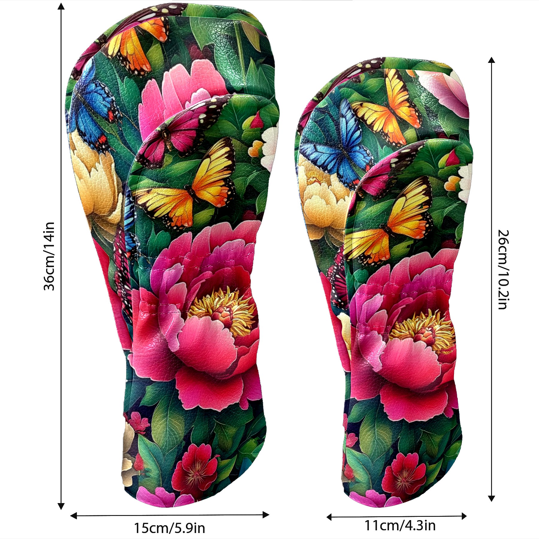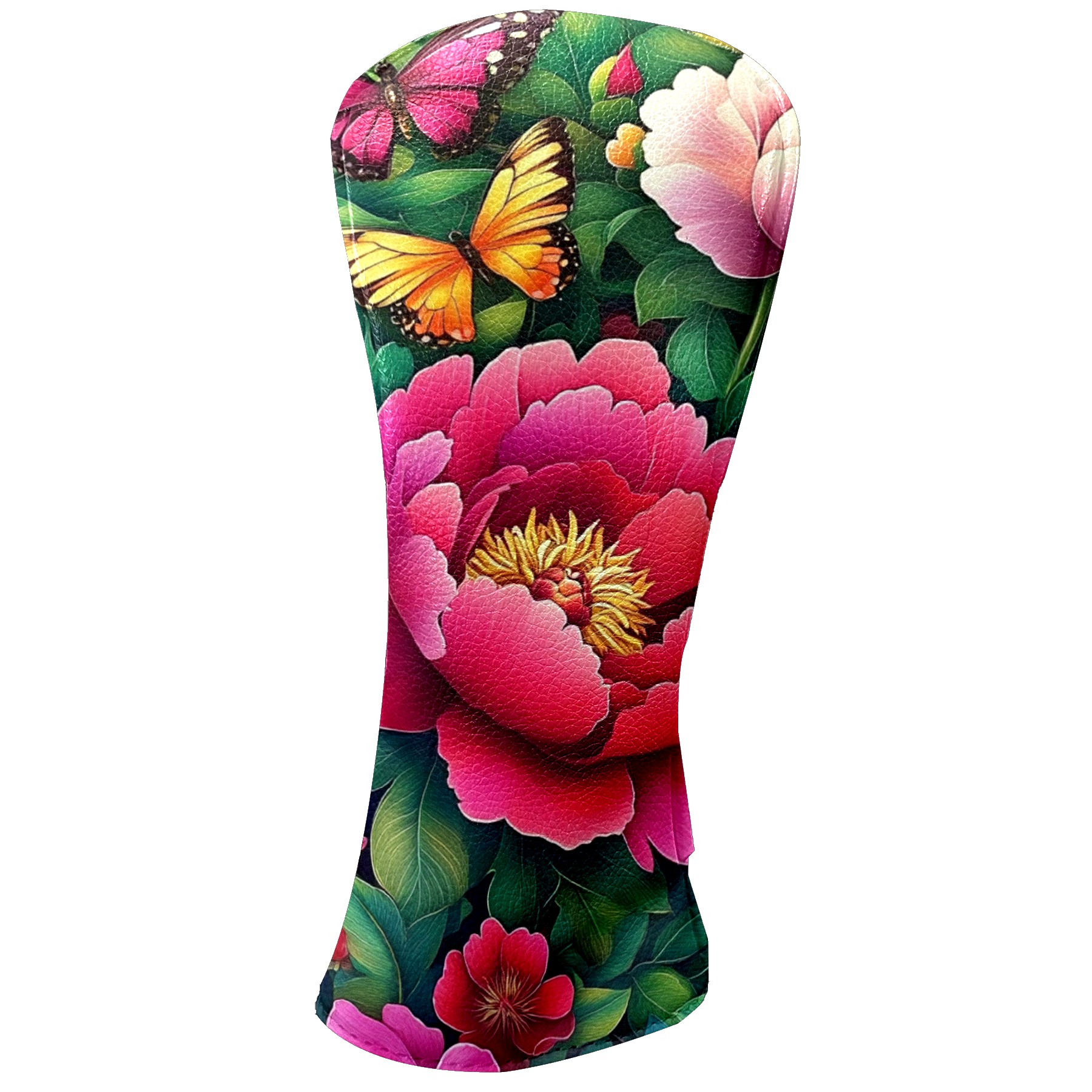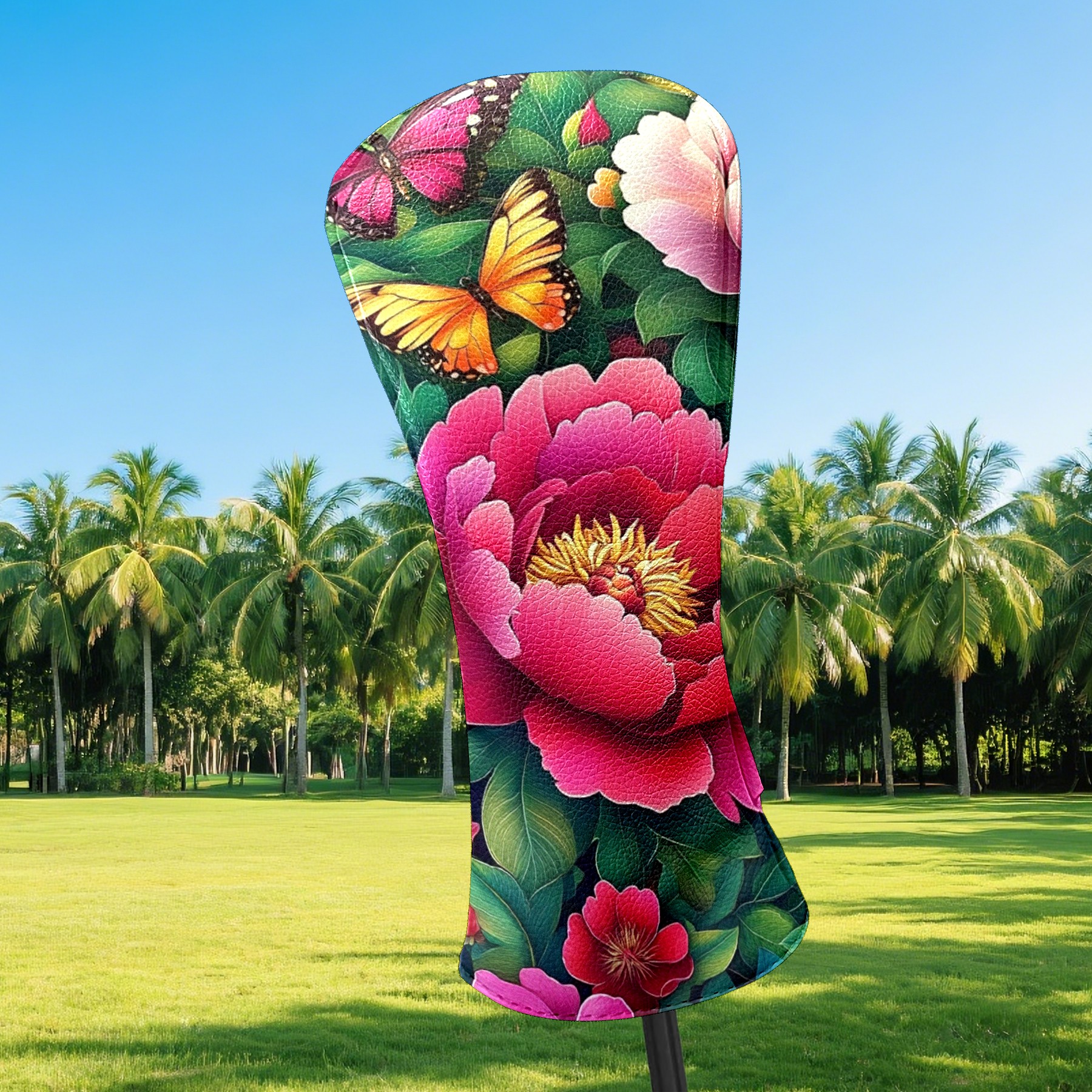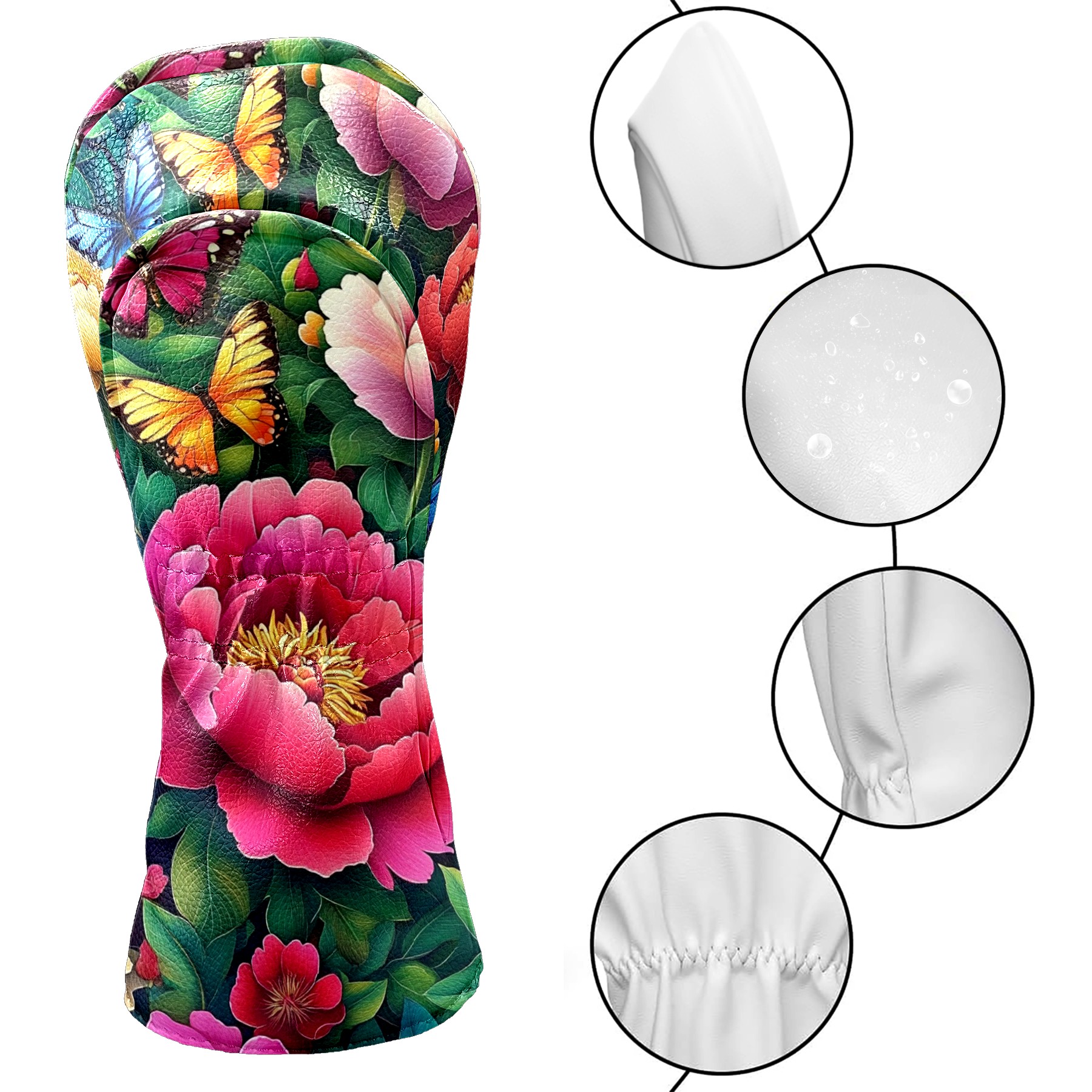 Golf Club Covers Colorful Peonies Butterflies Driver Headcover, Leather Golf Club Head Covers for Driver Fairway Woods Waterproof Golf Headcovers with Anti-Scratch Lining for Men Women