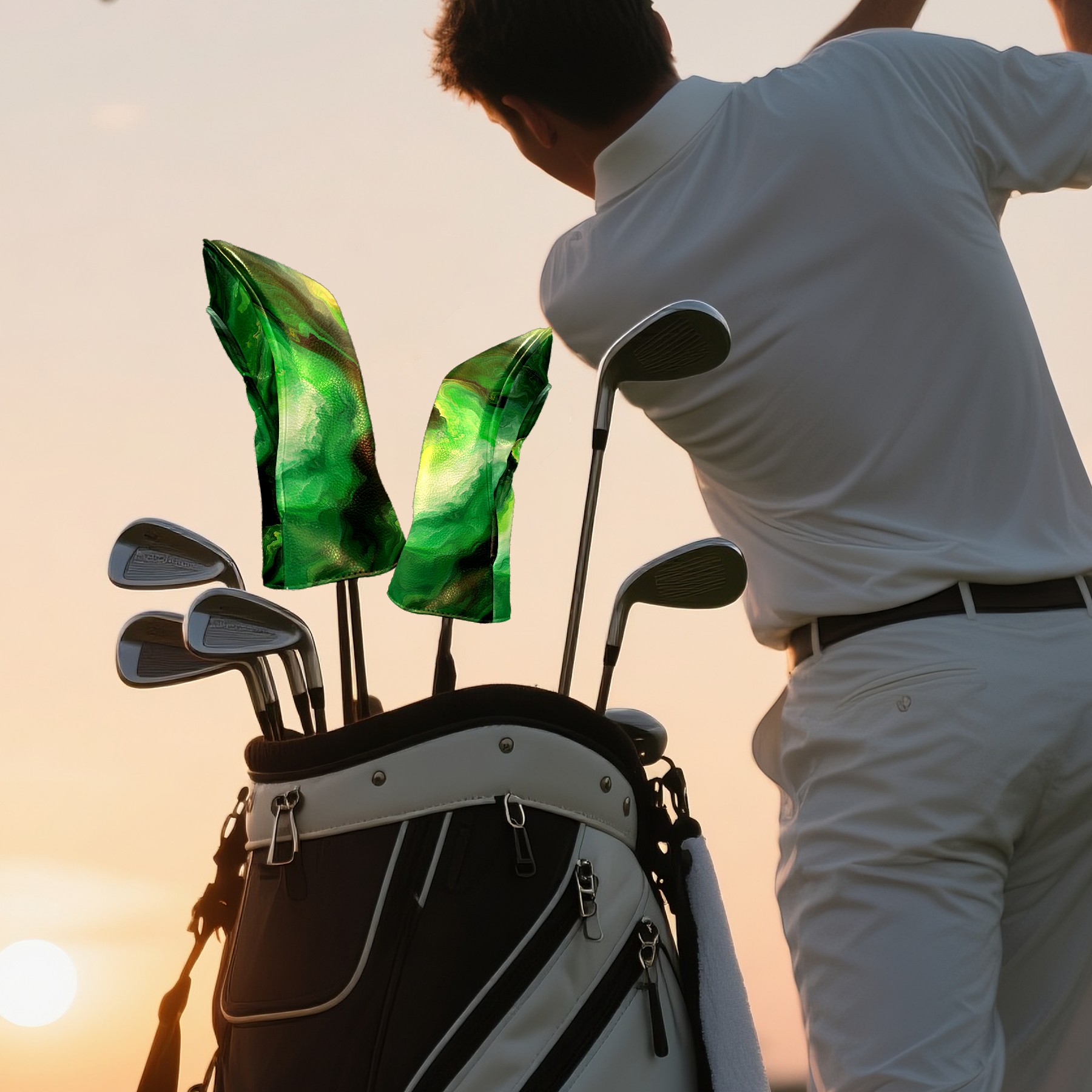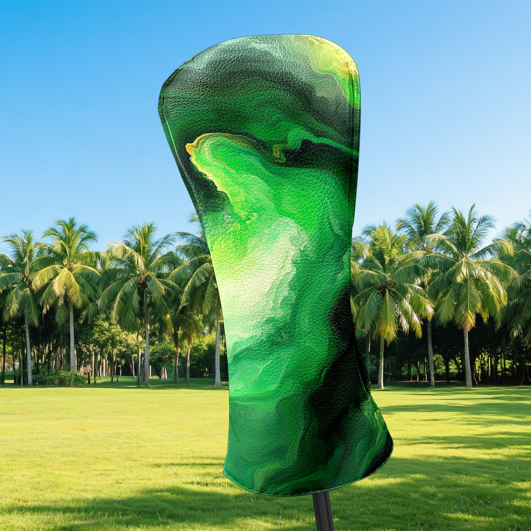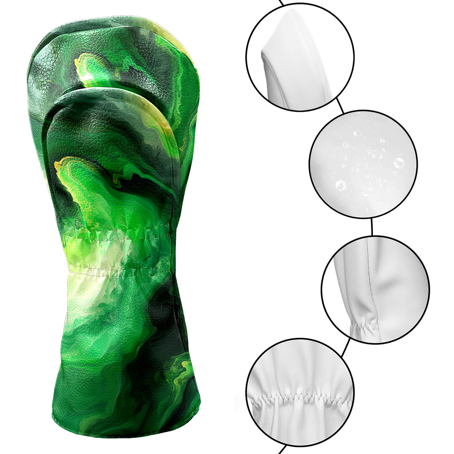 Golf Club Covers Green Marble (1) Driver Headcover, Leather Golf Club Head Covers for Driver Fairway Woods Waterproof Golf Headcovers with Anti-Scratch Lining for Men Women