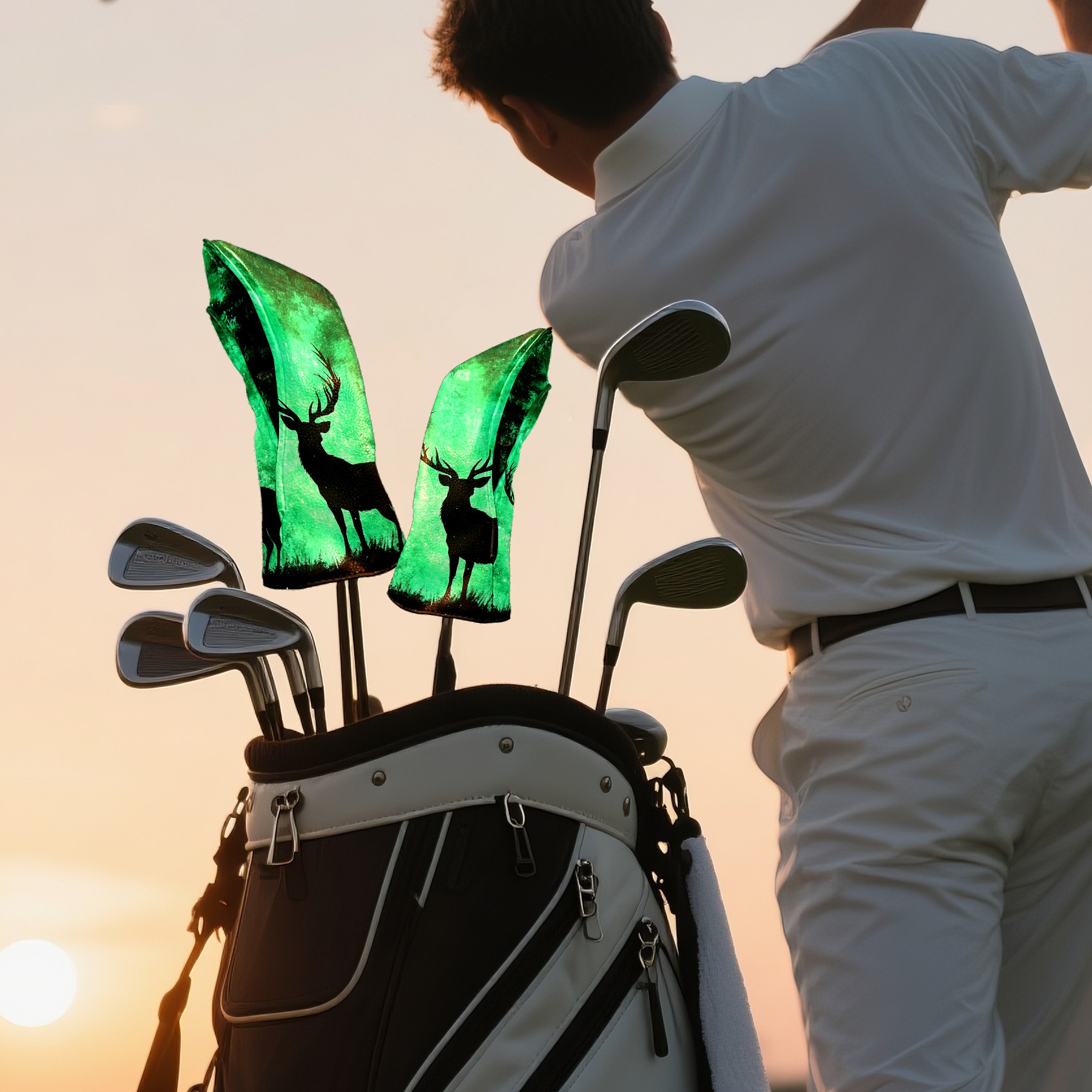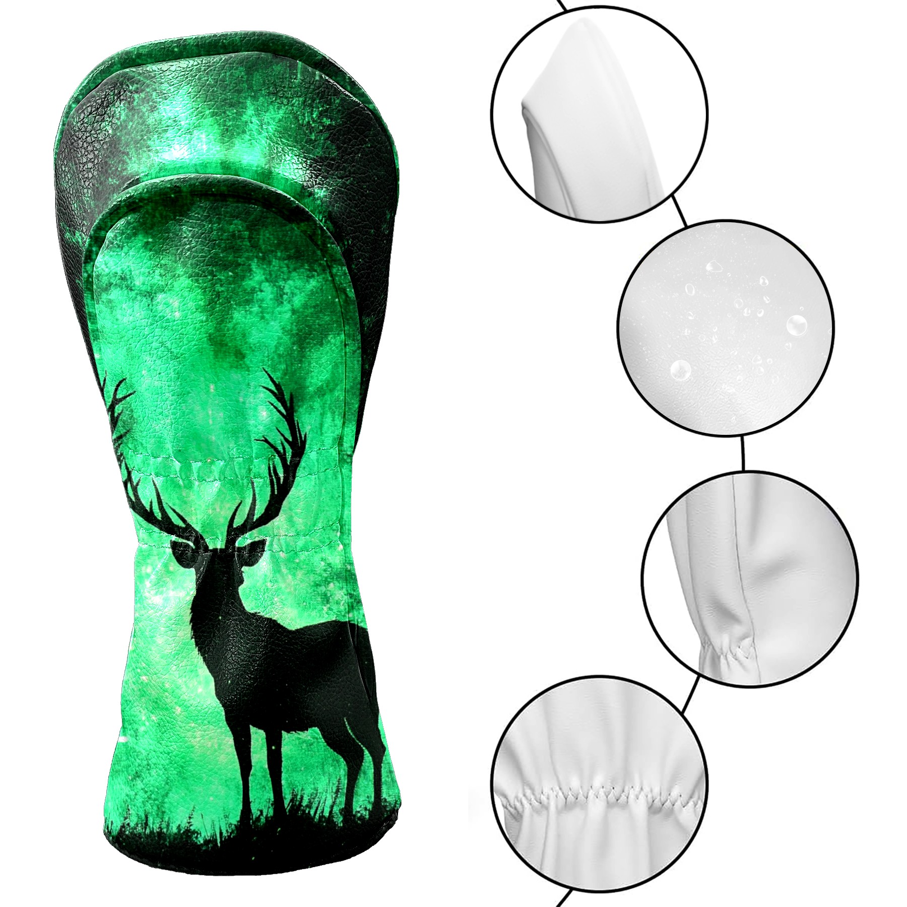 Golf Club Covers Deer Forest Green (1) Driver Headcover, Leather Golf Club Head Covers for Driver Fairway Woods Waterproof Golf Headcovers with Anti-Scratch Lining for Men Women