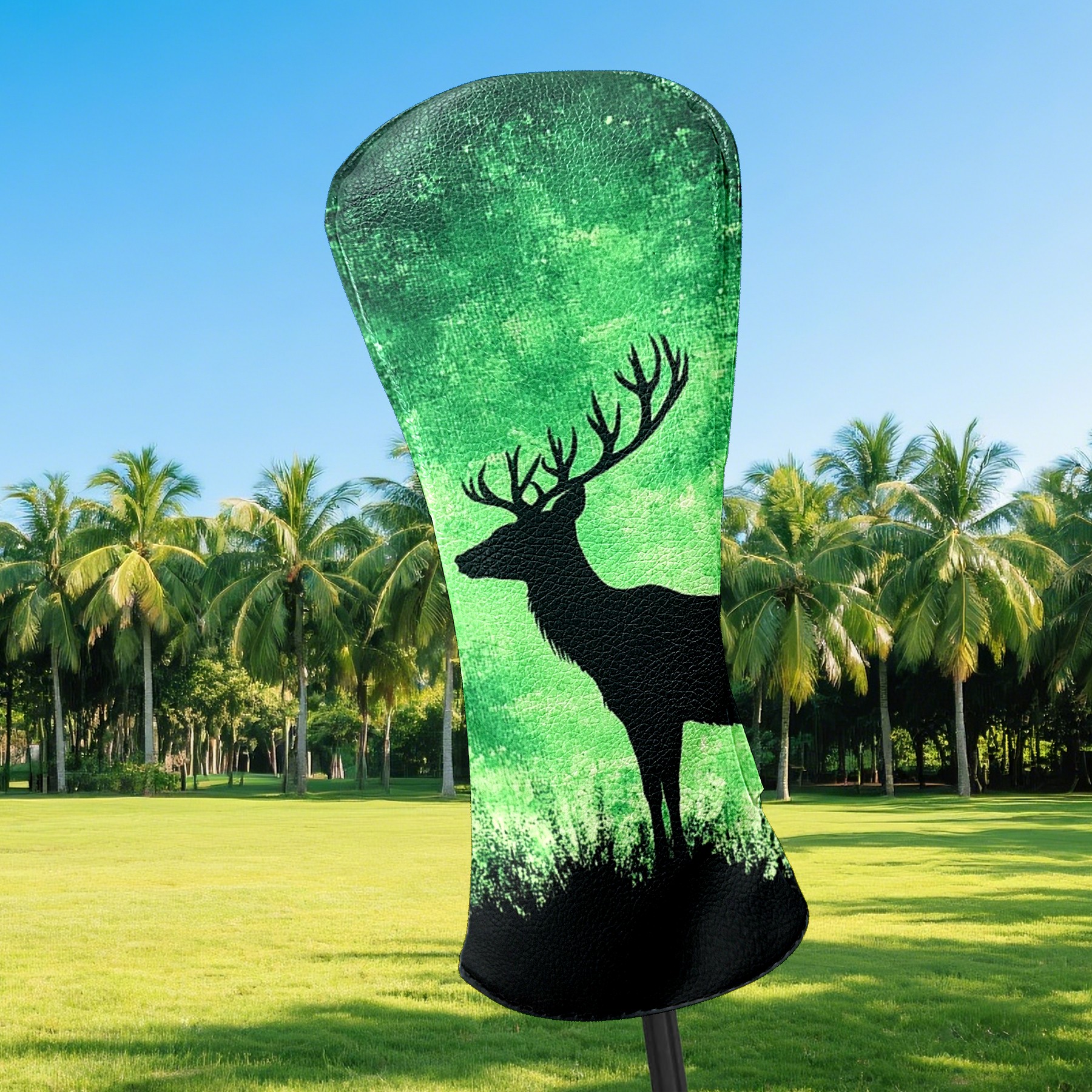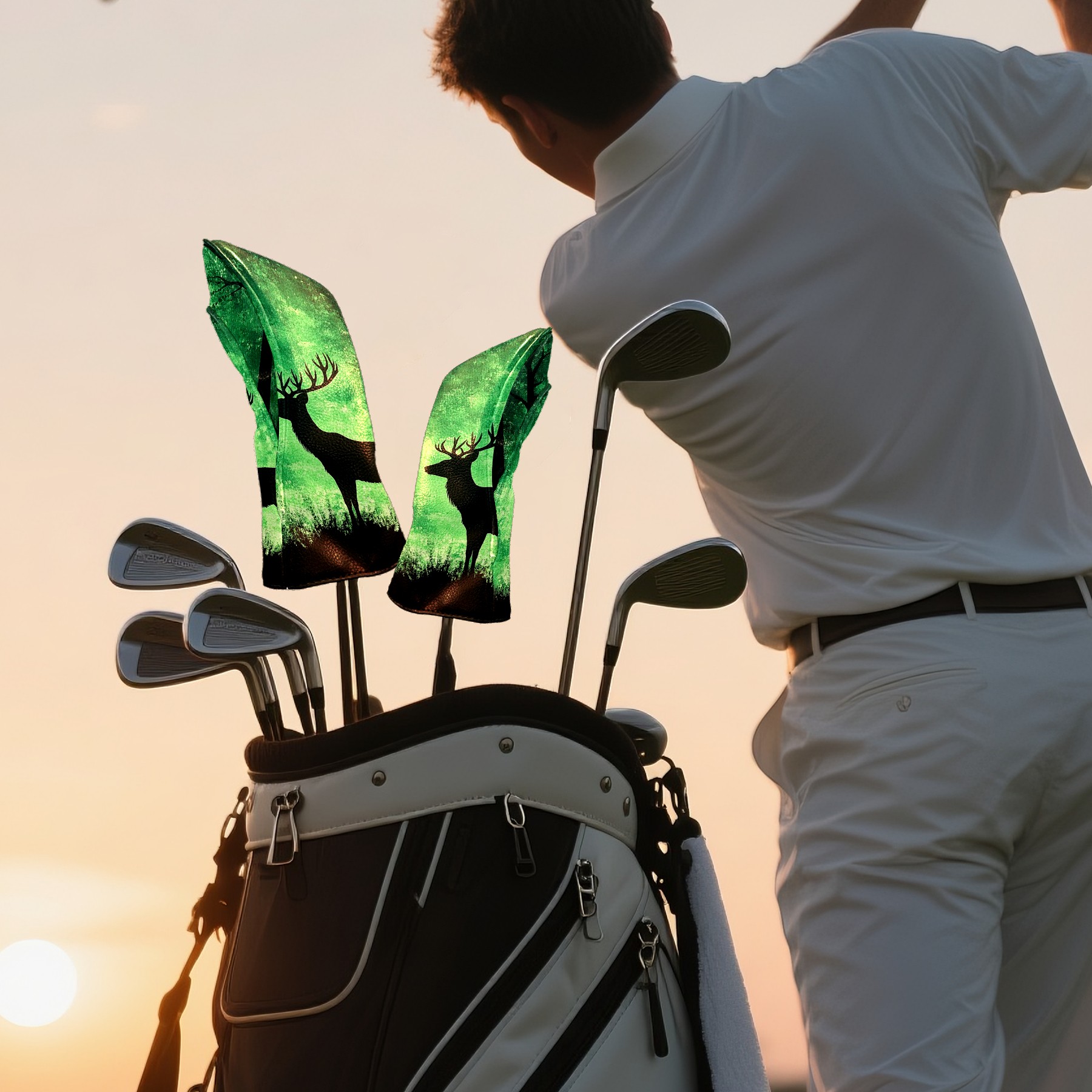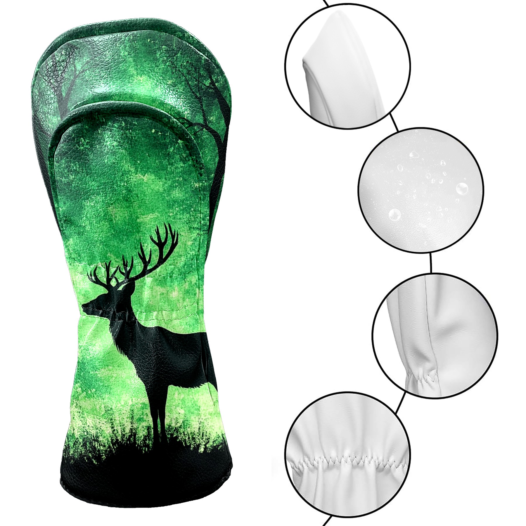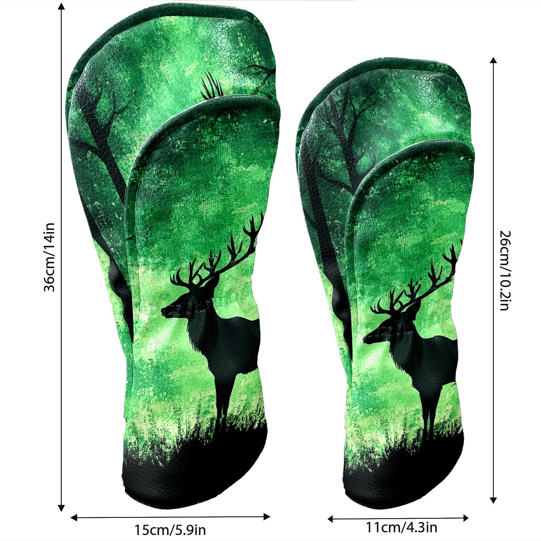 Golf Club Covers Deer Forest Green (2) Driver Headcover, Leather Golf Club Head Covers for Driver Fairway Woods Waterproof Golf Headcovers with Anti-Scratch Lining for Men Women
